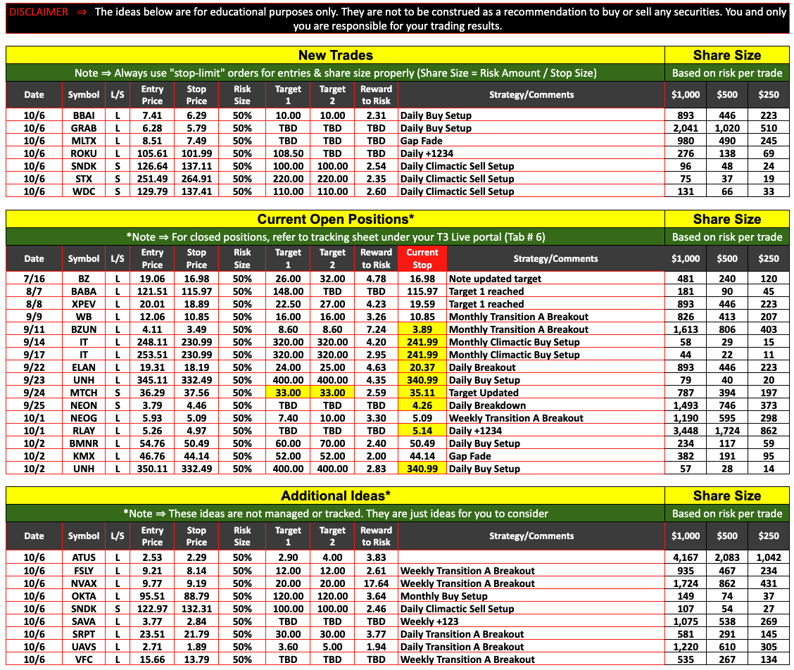 The programs that T3 Live distributes (including the “Virtual Trading Floor®,” articles, commentary, videos, blogs and social media postings) are for informational and educational purposes only. No one should consider the information disseminated by T3 Live to be personalized investment advice, a recommendation to buy, sell or hold any investment, an offer (or a solicitation of an offer) to buy or sell any investment, or the provision of any other kind of advice that would require T3 Live to register as a broker-dealer, investment adviser or similar entity. No one associated with T3 Live is authorized to make any representation to the contrary.