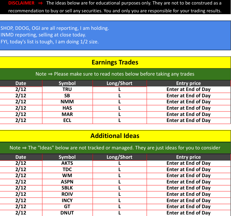 Strategic Swing Trader Earnings Update – February 12, 2024