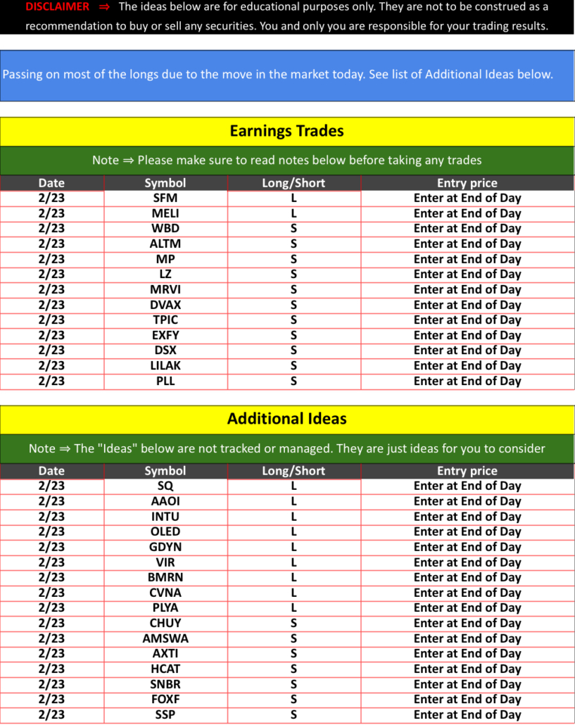 Strategic Swing Trader Earnings Update – February 22, 2024