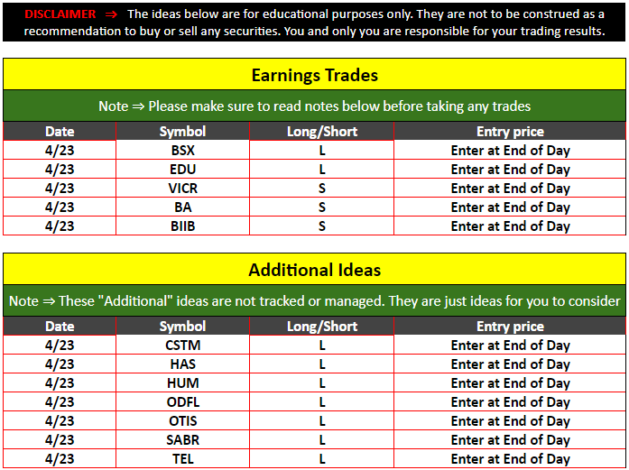 Strategic Swing Trader Earnings Update – April 23, 2024