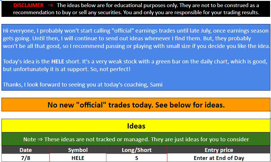 Strategic Swing Trader Earnings Update – July 8, 2024