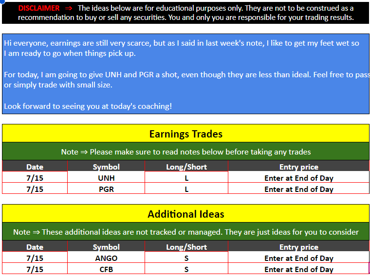 Strategic Swing Trader Earnings Update – July 15, 2024