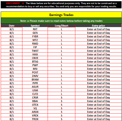 Strategic Swing Trader Earnings Update – August 1, 2024