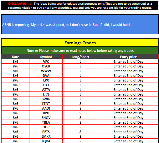 Strategic Swing Trader Earnings Update – August 6, 2024