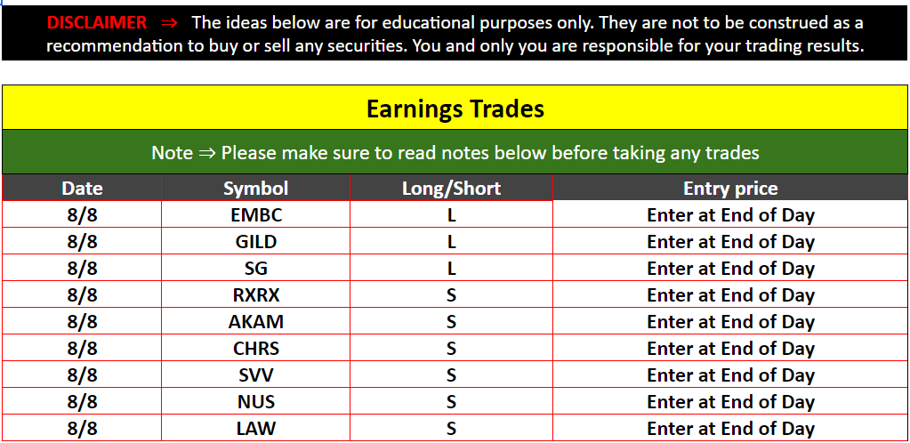 Strategic Swing Trader Earnings Update – August 8, 2024