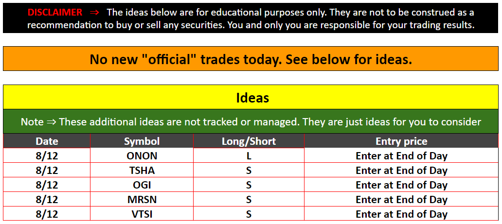 Strategic Swing Trader Earnings Update – August 12, 2024