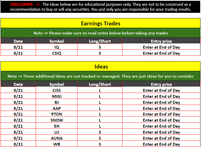 Strategic Swing Trader Earnings Update – August 21, 2024
