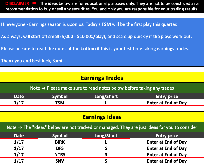 Strategic Swing Trader Earnings Update – January 17, 2024