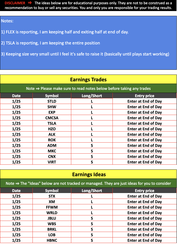 Strategic Swing Trader Earnings Update – 1/25/2023