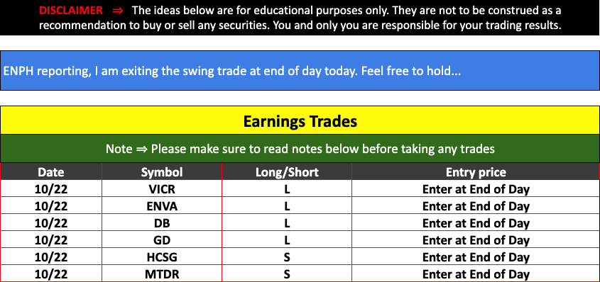 Strategic Swing Trader Earnings Update – October 22, 2024