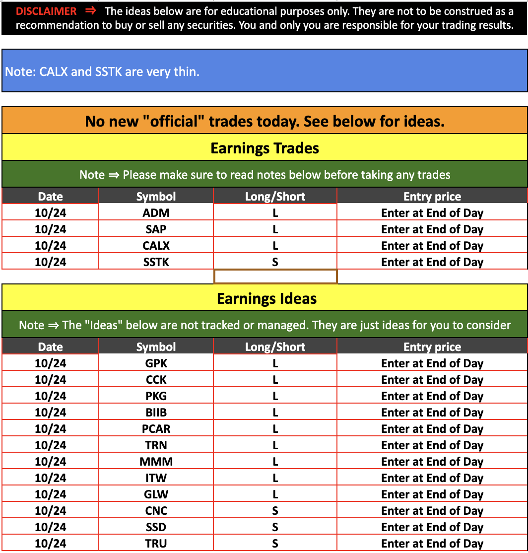 Strategic Swing Trader Earnings Update – 10/24/2022