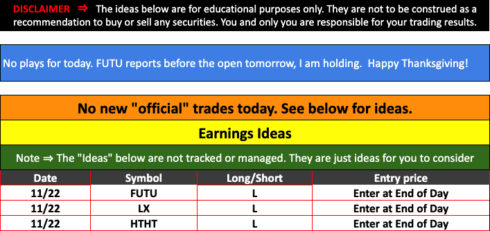 Strategic Swing Trader Earnings Update – November 22, 2023