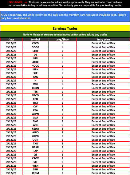Strategic Swing Trader Earnings Update – February 12, 2025