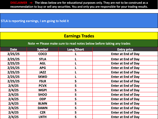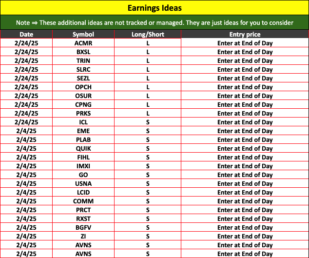 Strategic Swing Trader Earnings Update – February 25, 2025