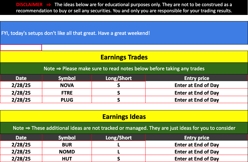 Strategic Swing Trader Earnings Update – February 28, 2025