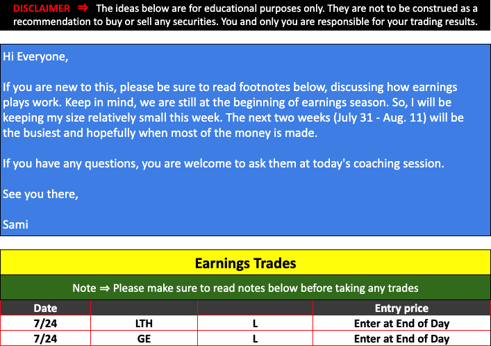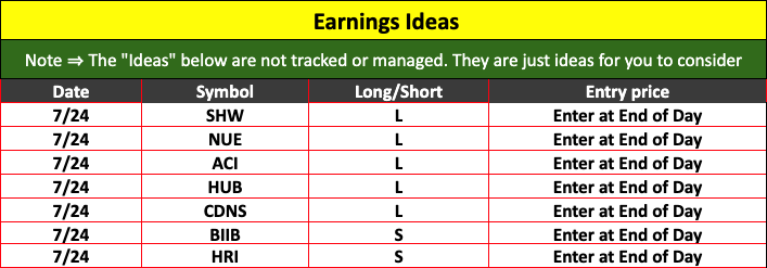 Strategic Swing Trader Earnings Update – July 24, 2023