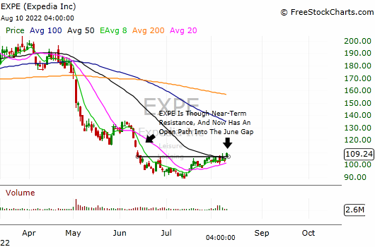 Comments: We are going to circle back around to EXPE for another bullish trade idea. We’ve been active with EXPE over the past month, with two bullish trades revolving around trying to capture a rally on the stock before the company reported. The second of the two ended up being a wash as the stock struggled to sustain momentum above the 100 level, but the consolidation that formed under the 50day sma pre-earnings has lasted after the print, and the tight setup is nearing a resolution point. A solid beat-and-raise failed to put EXPE firmly above the 50day sma, but the stock began to make progress above that key moving average today, and the strong close put it right at the top of its recent range. On a clean break of 110, EXPE should begin building momentum for a run into the mid-teens, with an unfilled gap from 6/10 at 115.16 a clear upside target. The Sep16 call spread will be targeting an initial move to 114.50+ to begin locking in money, and the swing trade will use a 40-50% net debit loss as a stop.