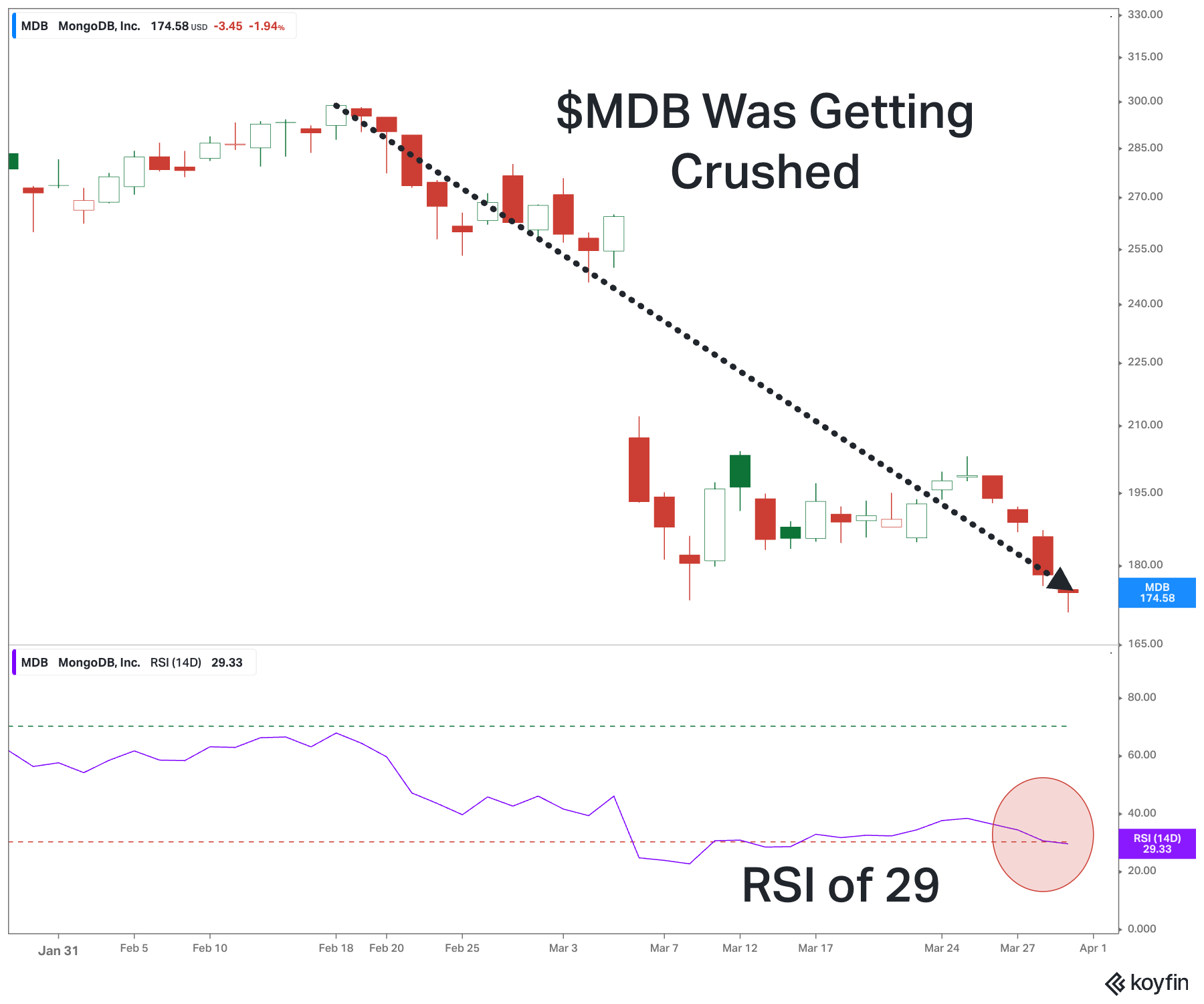 Take Monster Beverage (MNST). It had a nice uptrend, so it’s easy to see why the RSI was over 70: