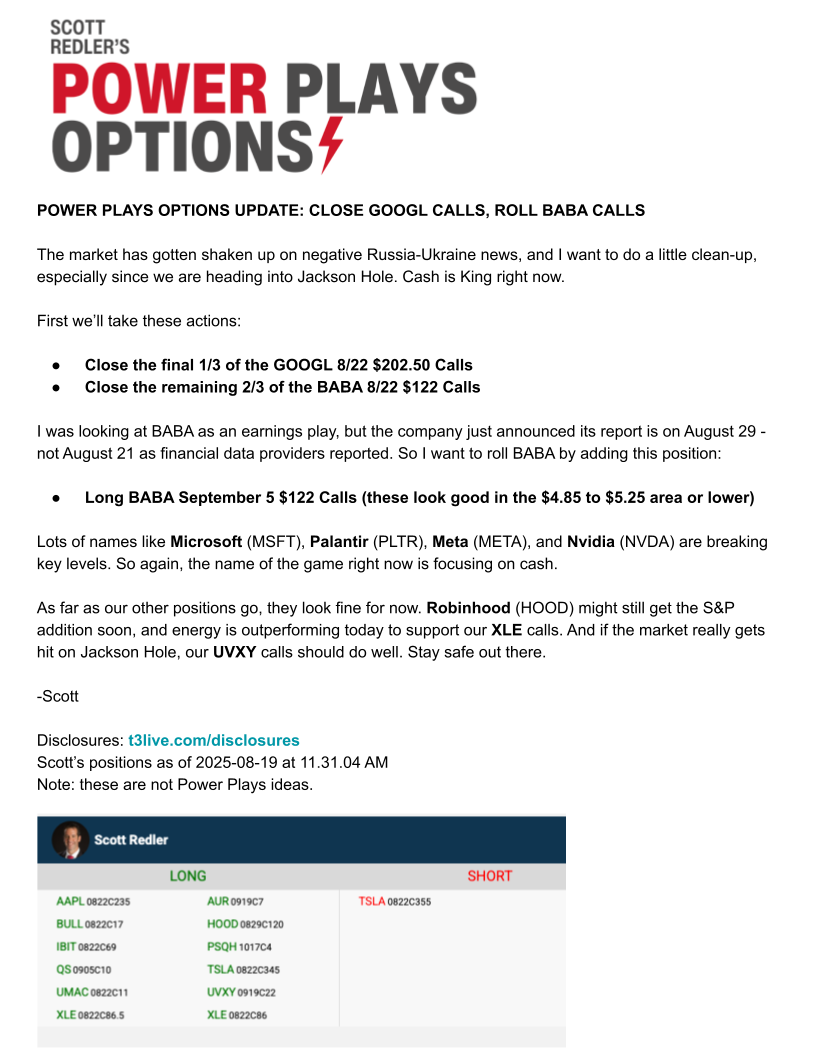 August 19 – Close GOOGL Calls, Roll BABA Calls