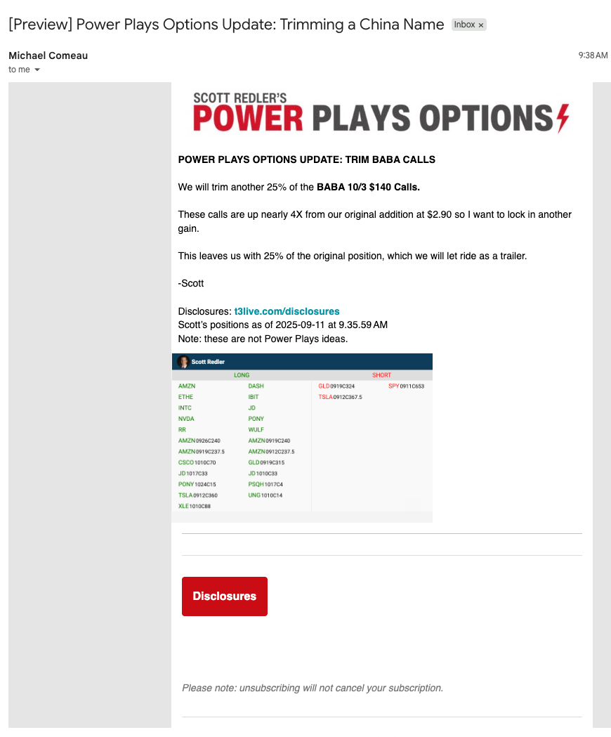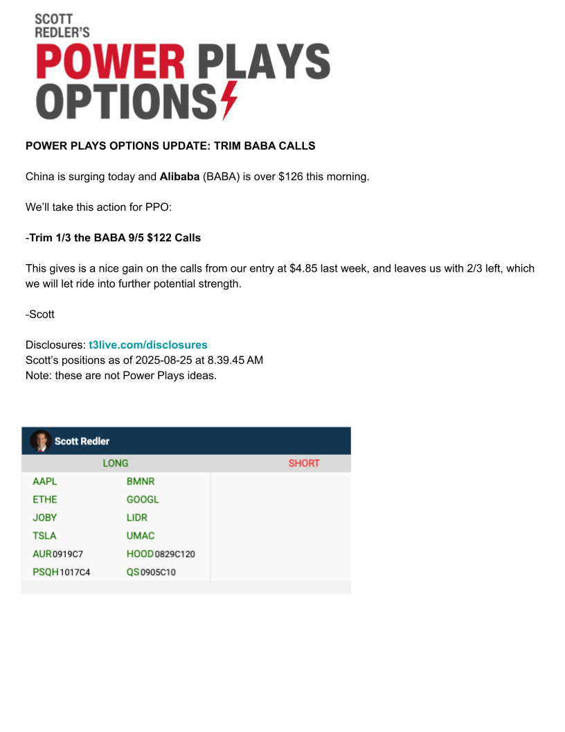 August 28 – Trim BABA Calls & Update on NVDA Calls