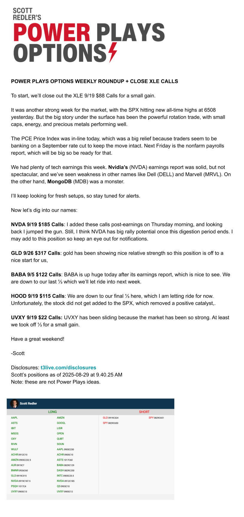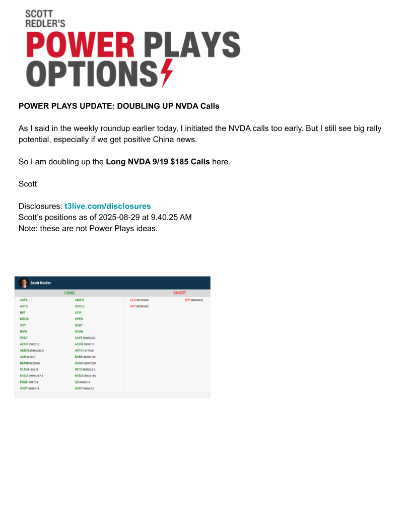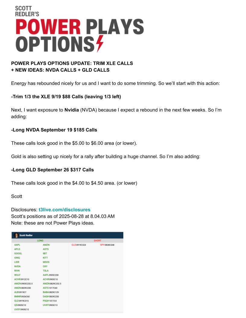 August 28 – New Ideas: NVDA & GLD Calls + Trim XLE Calls