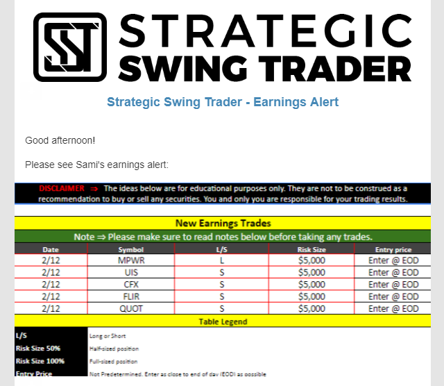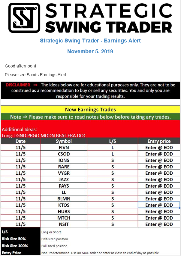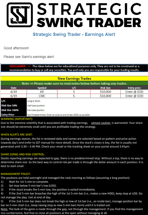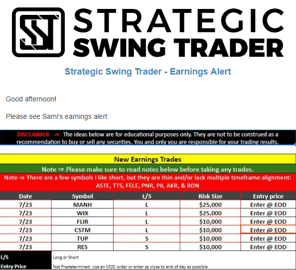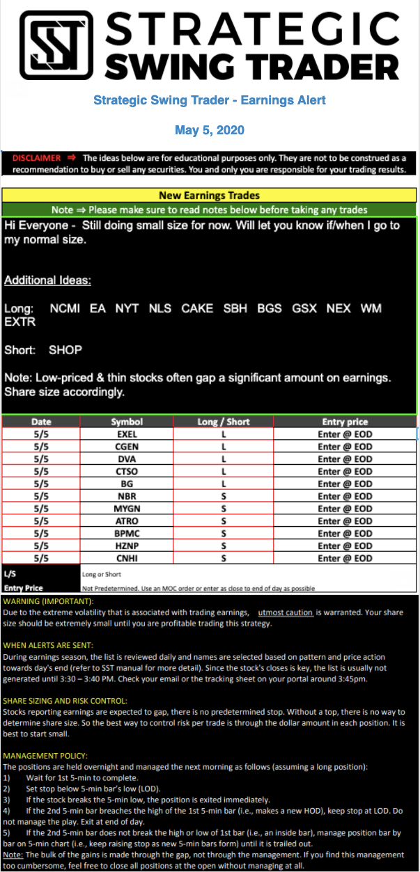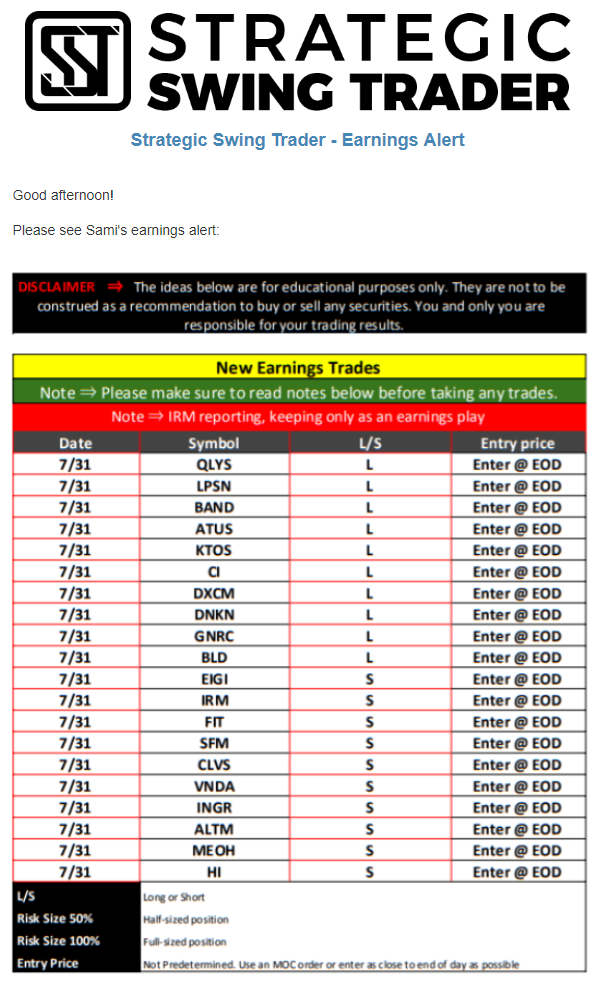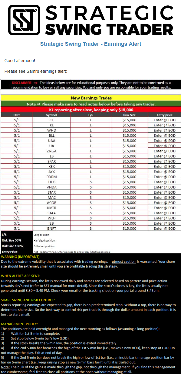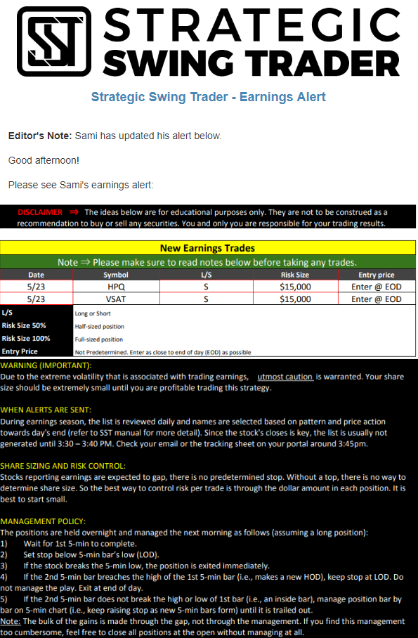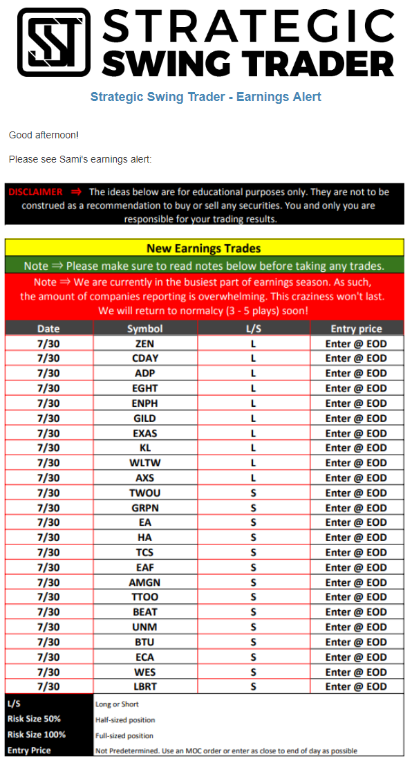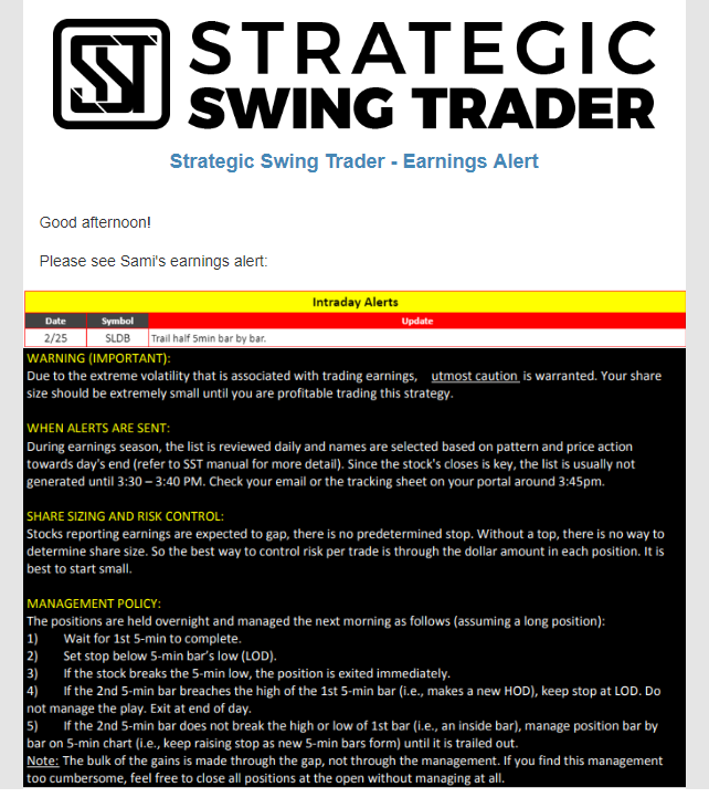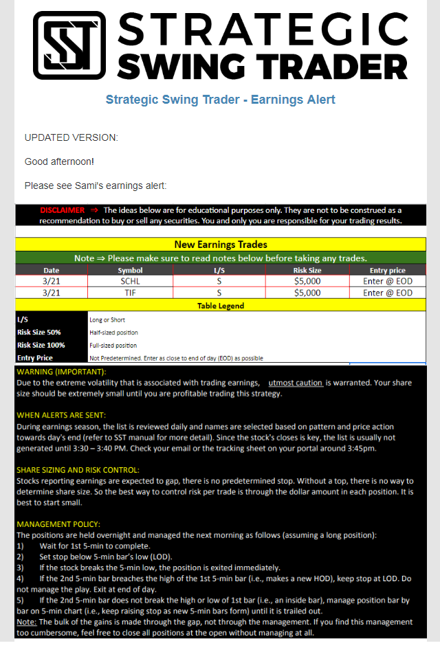 Earnings Alert Update