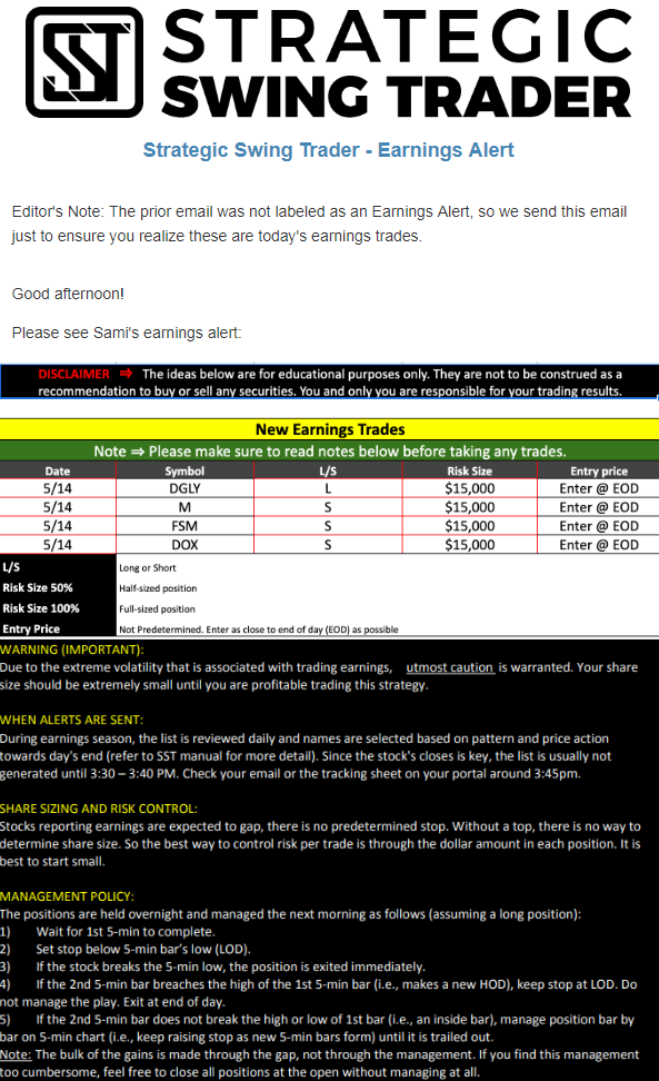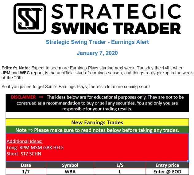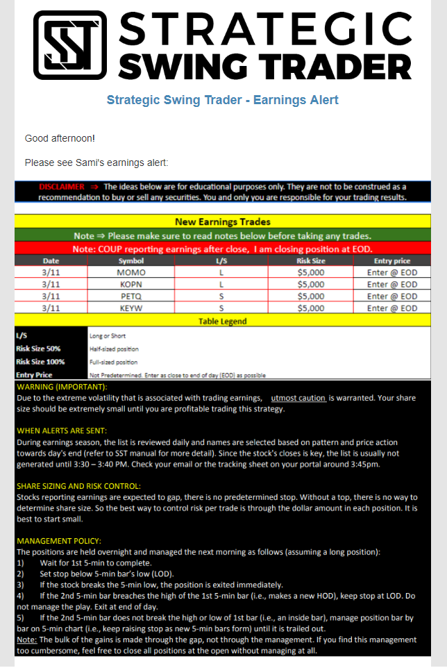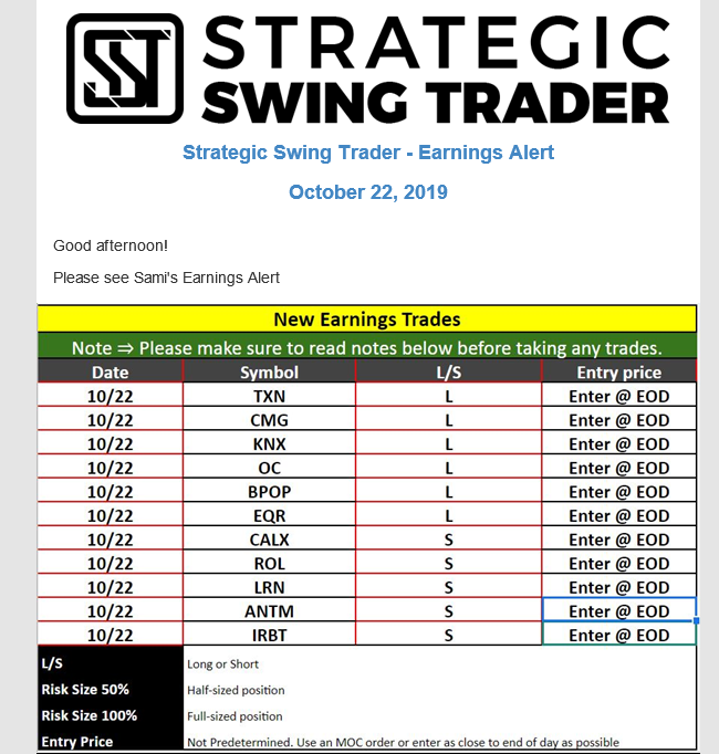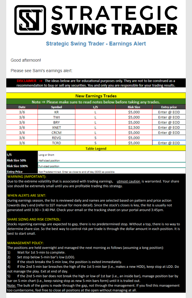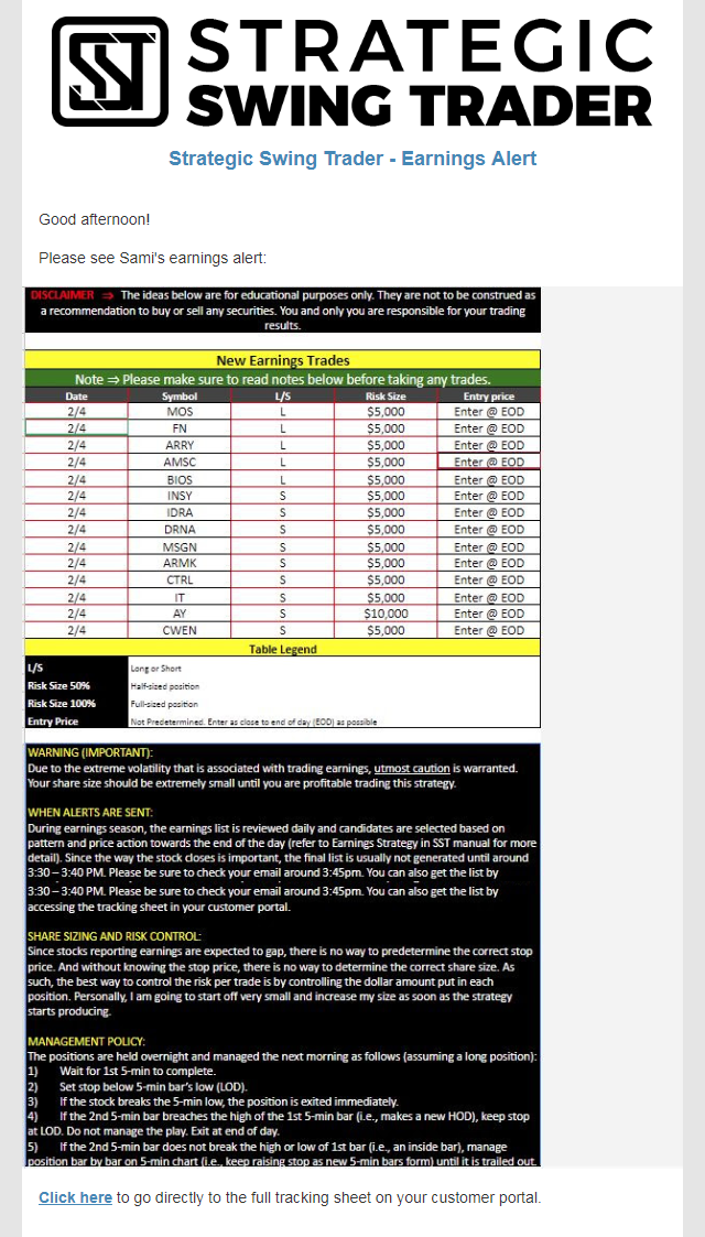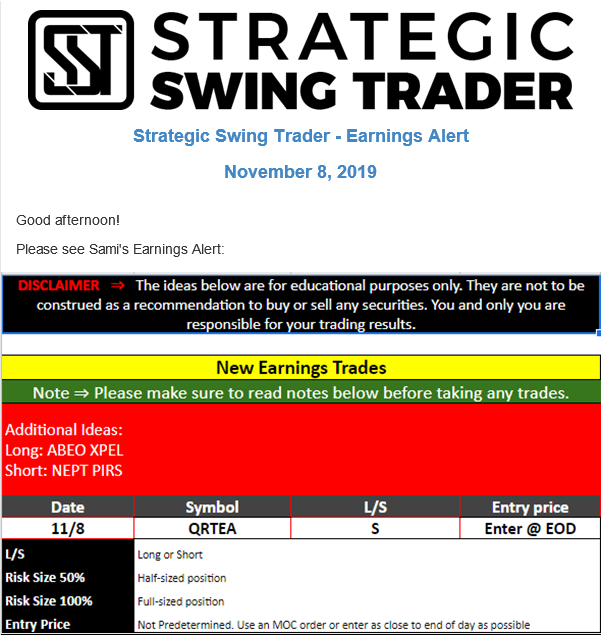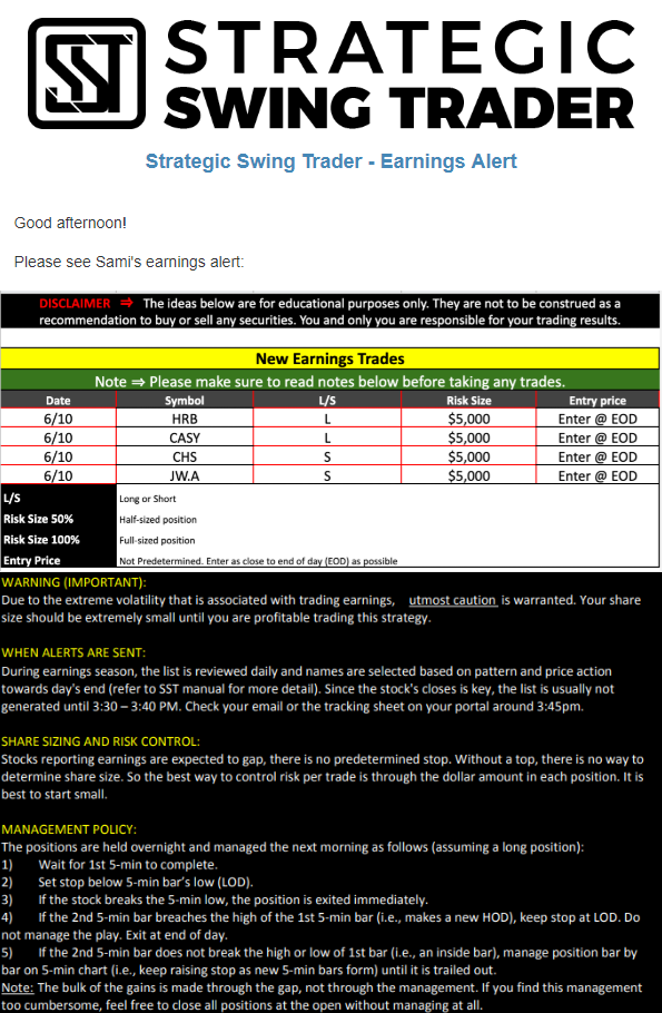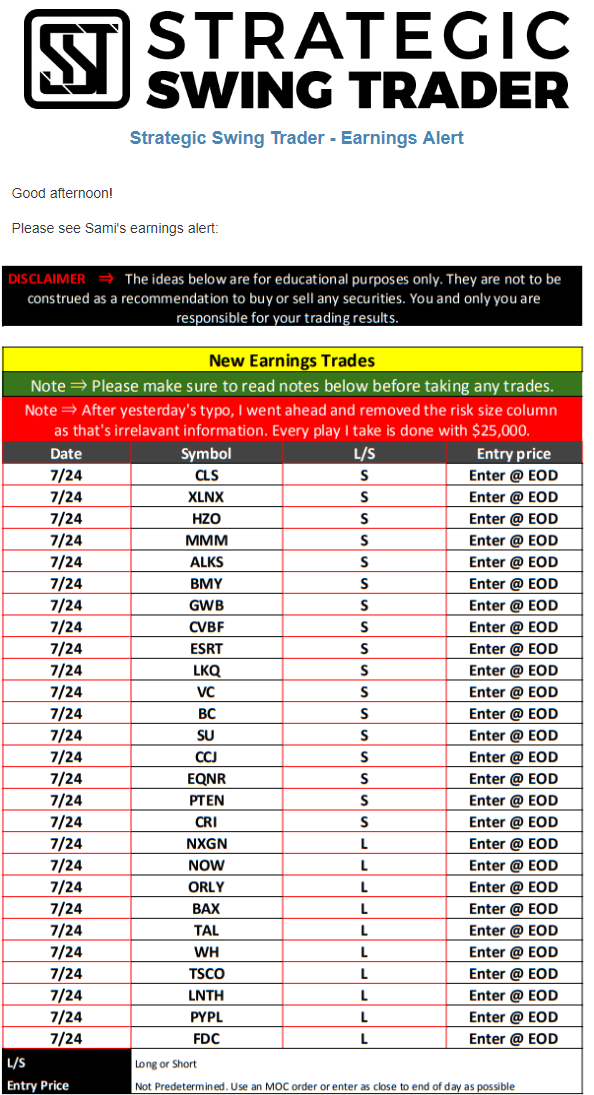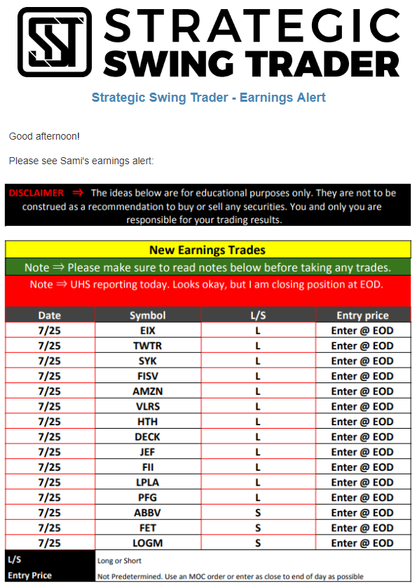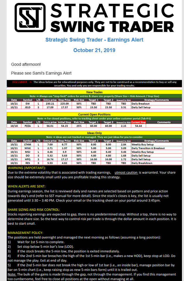 Earnings Alert Update