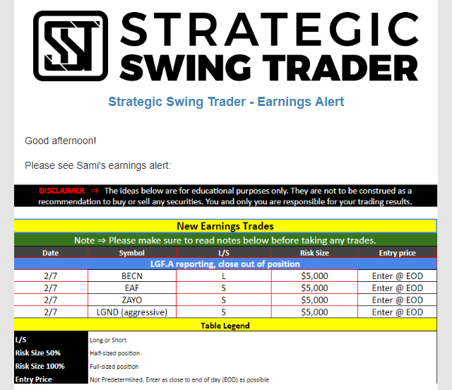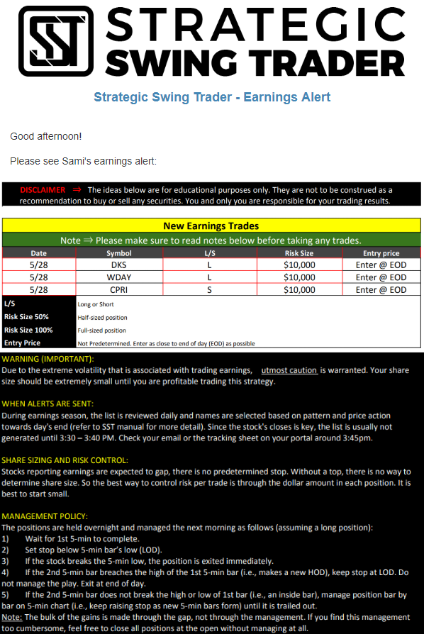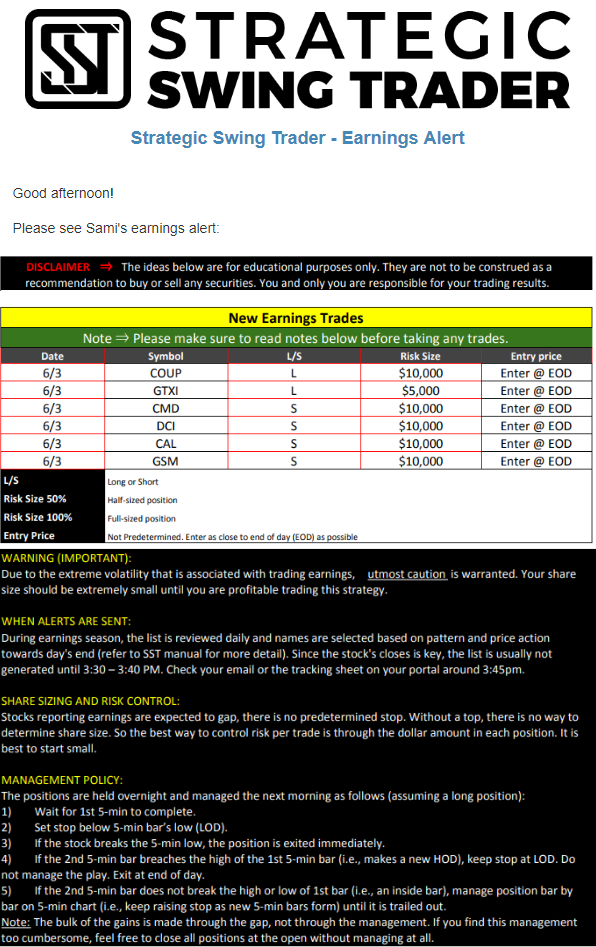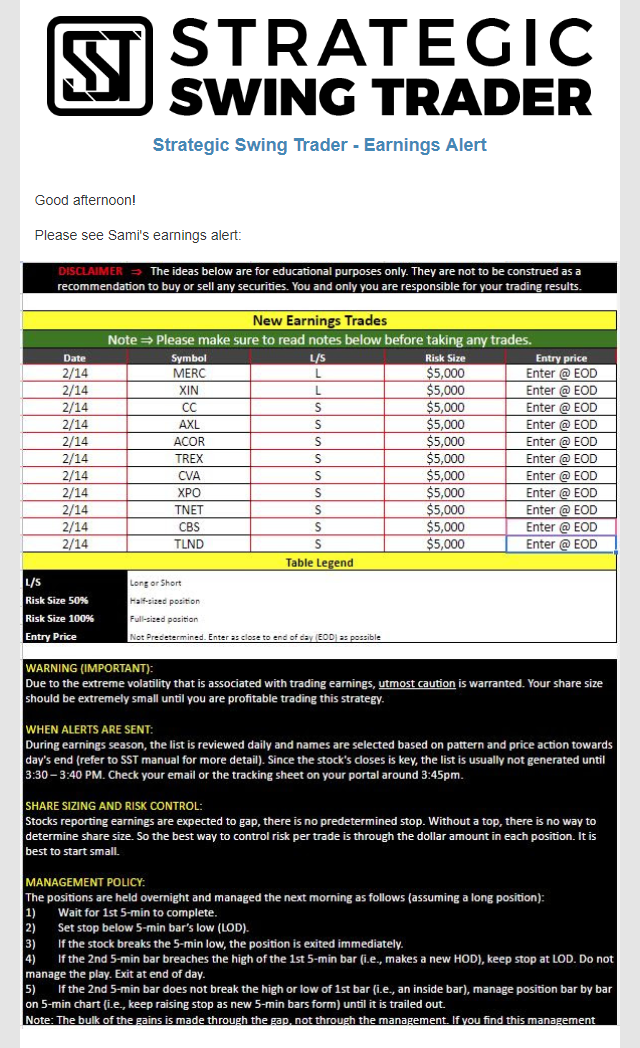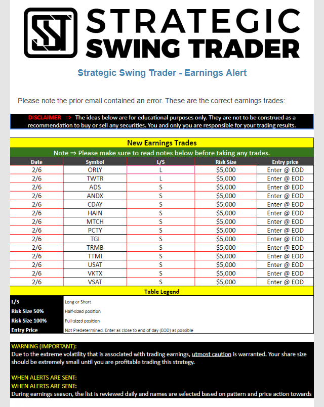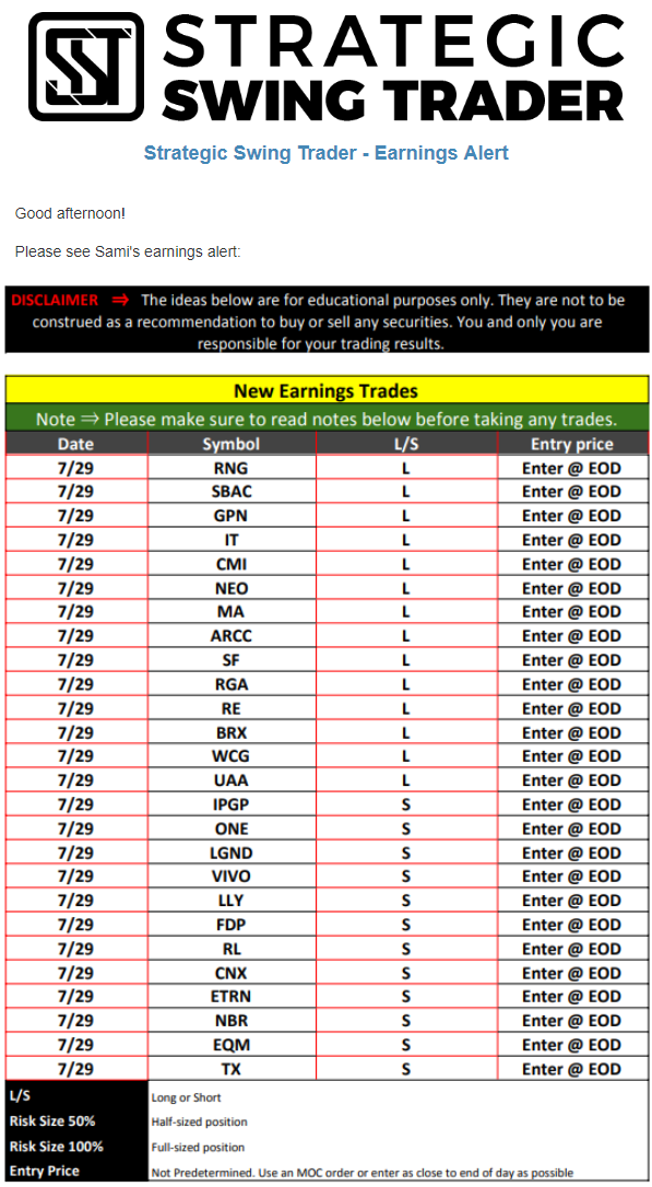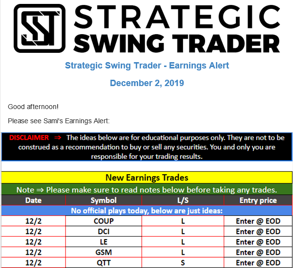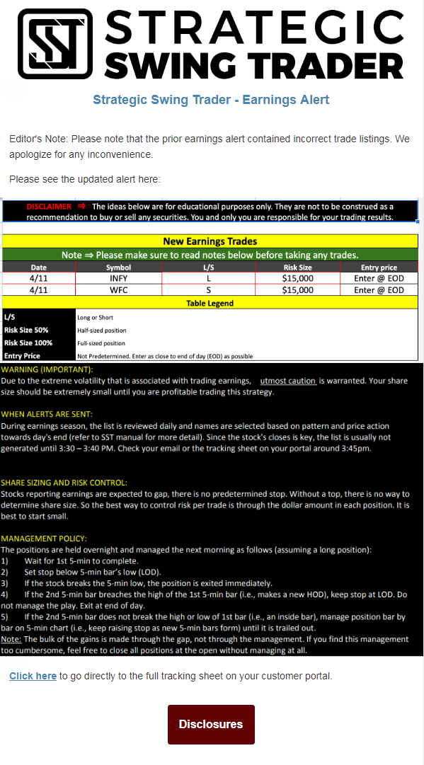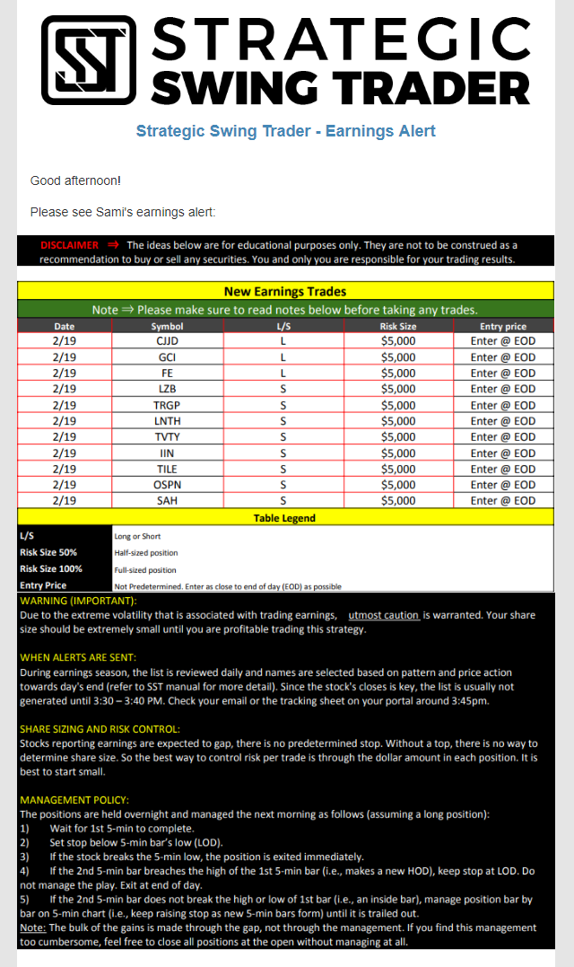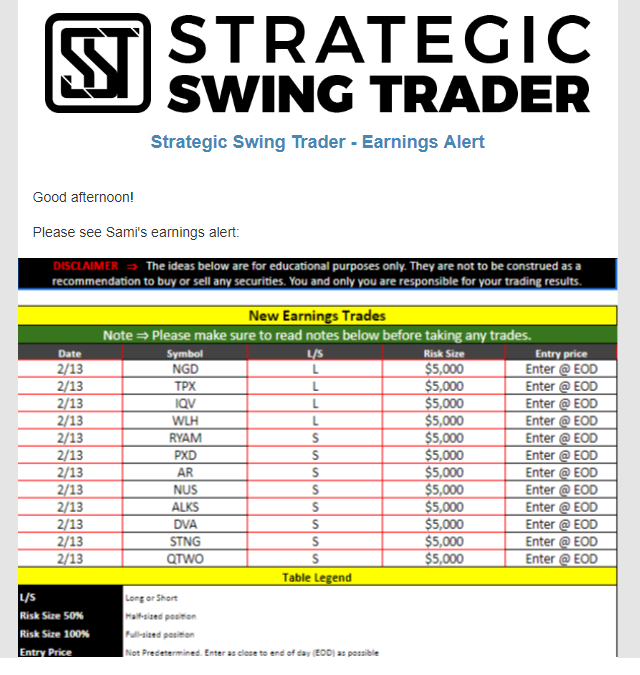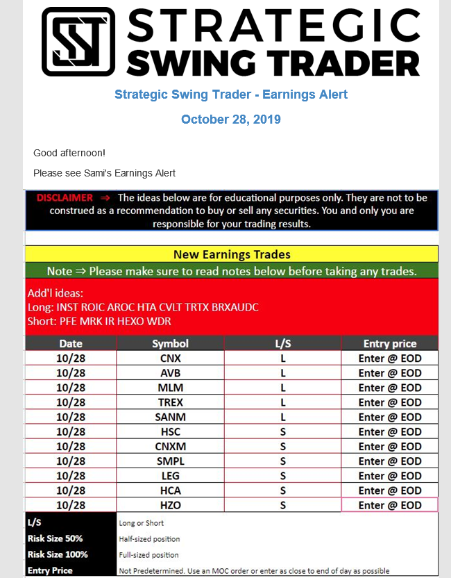 Earnings Alert Update