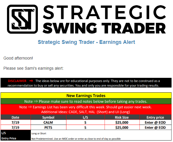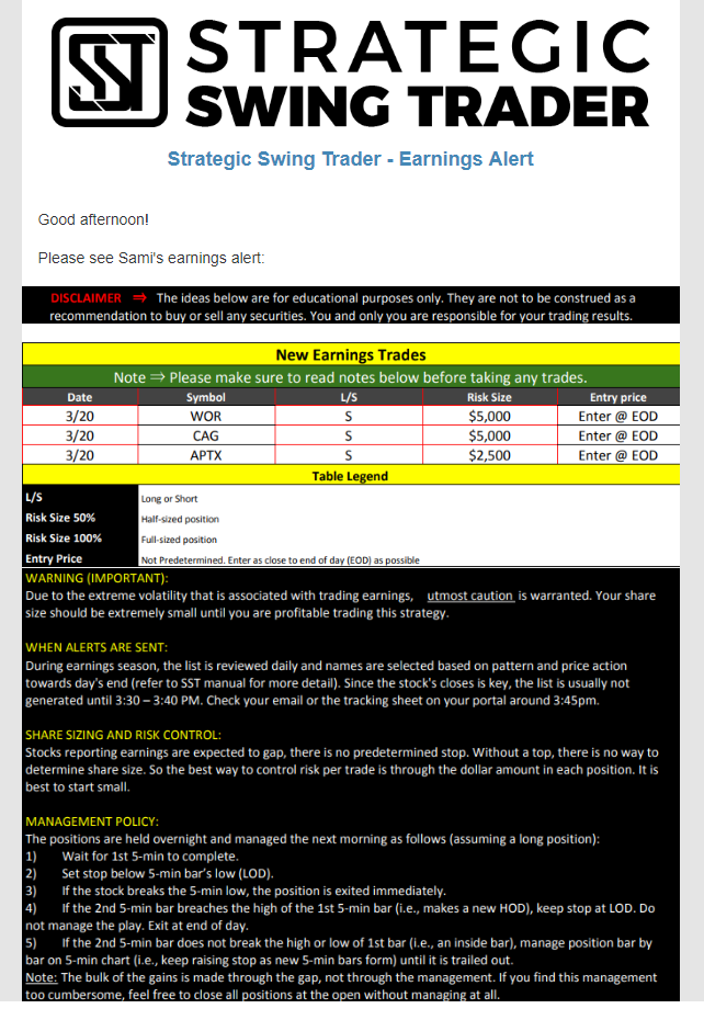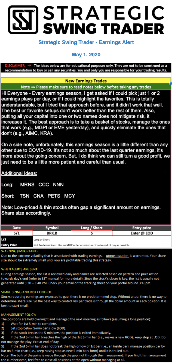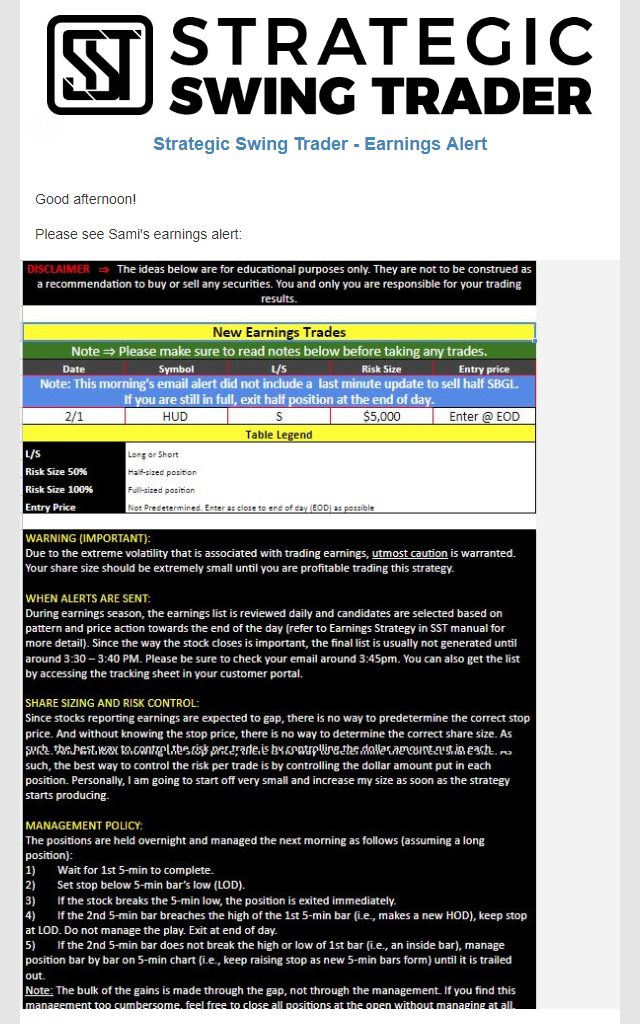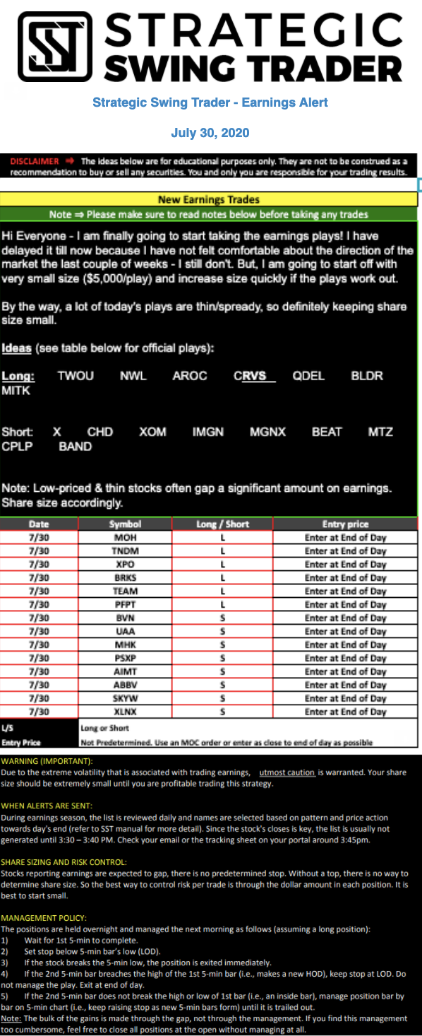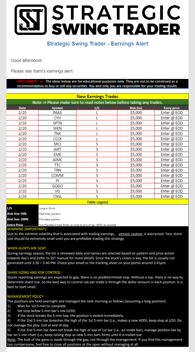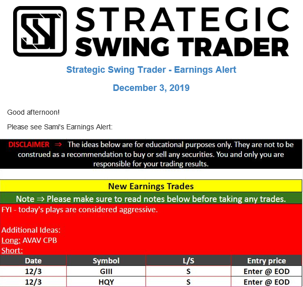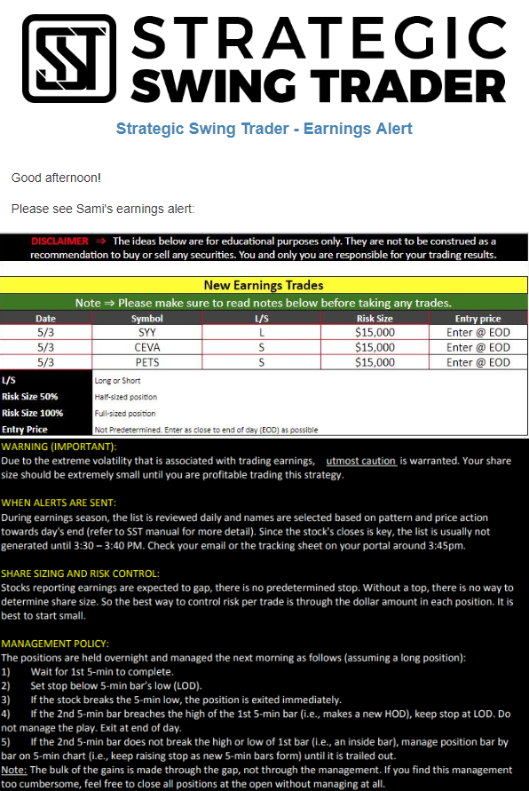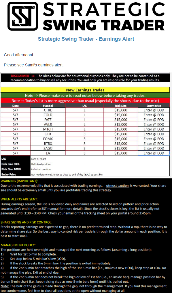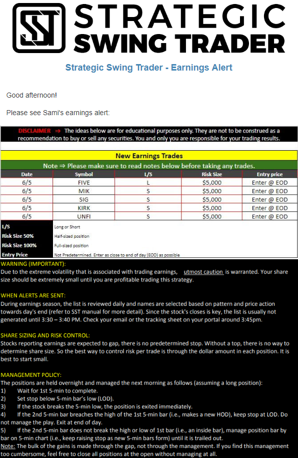 Earnings Alert Update