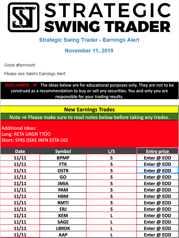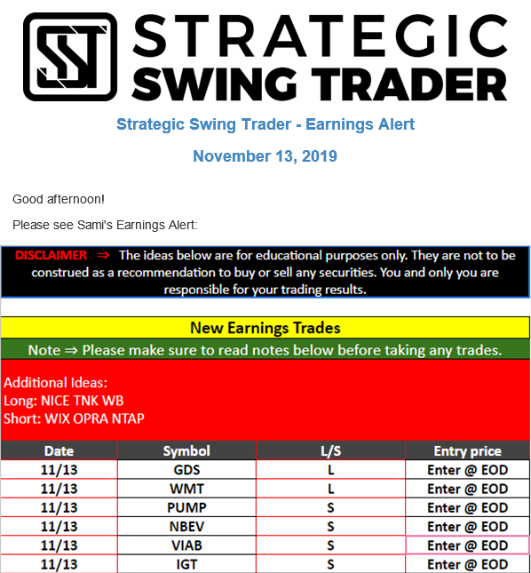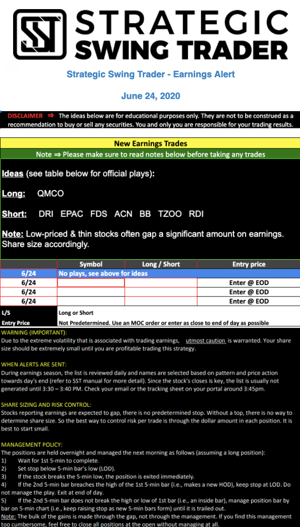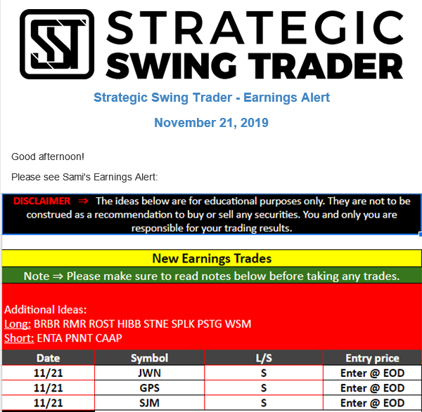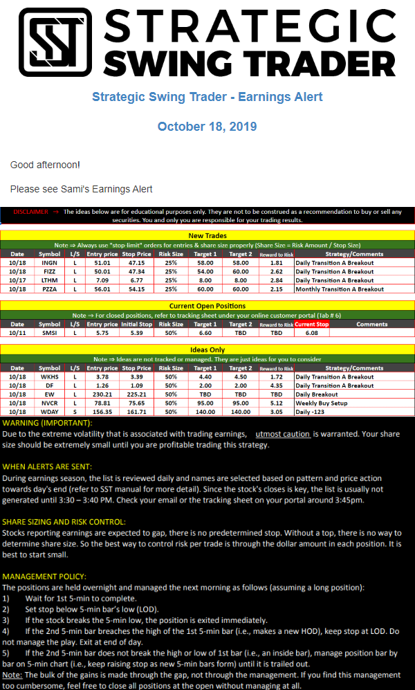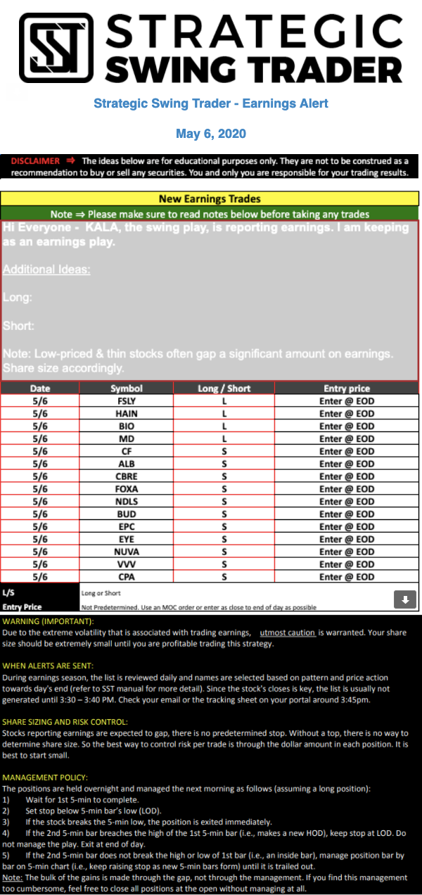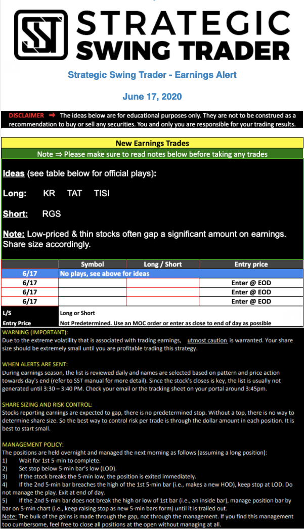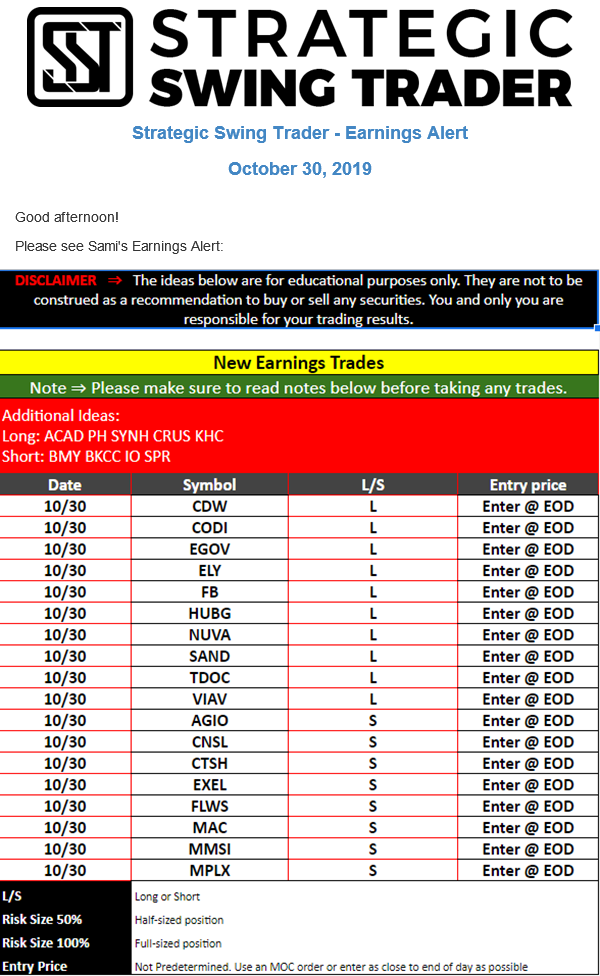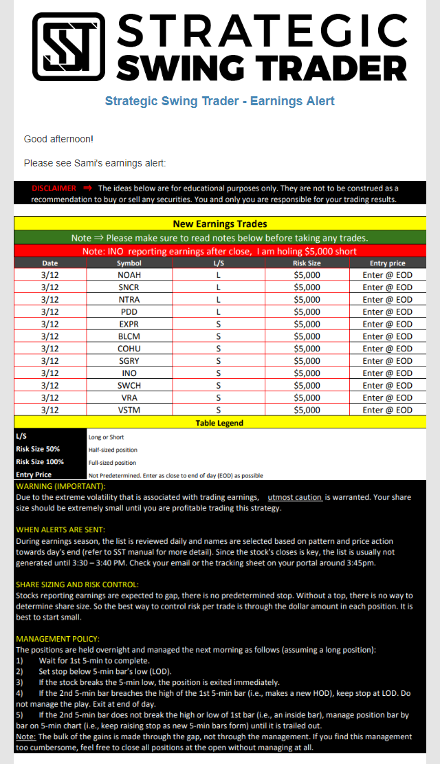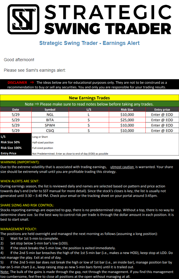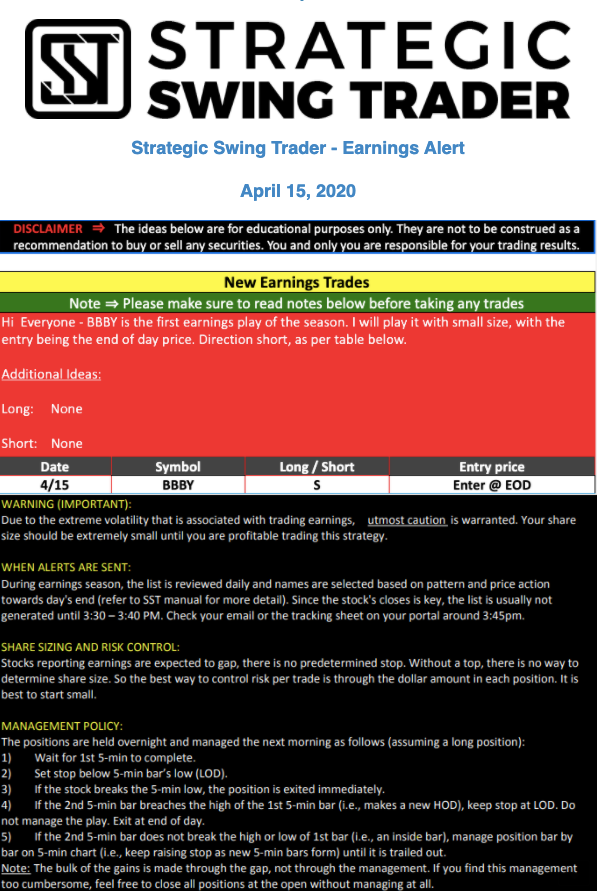 Earnings Alert Update