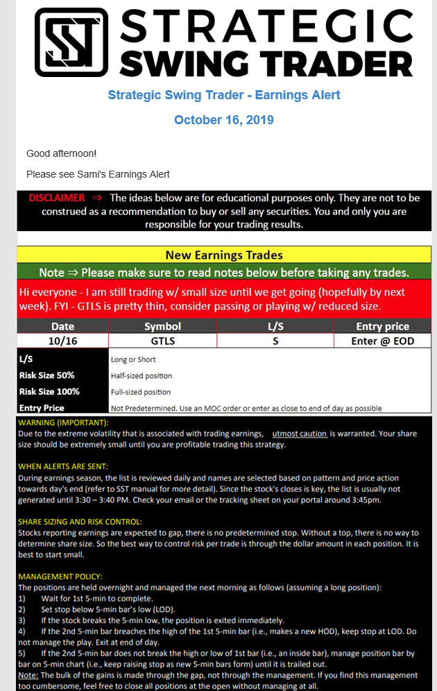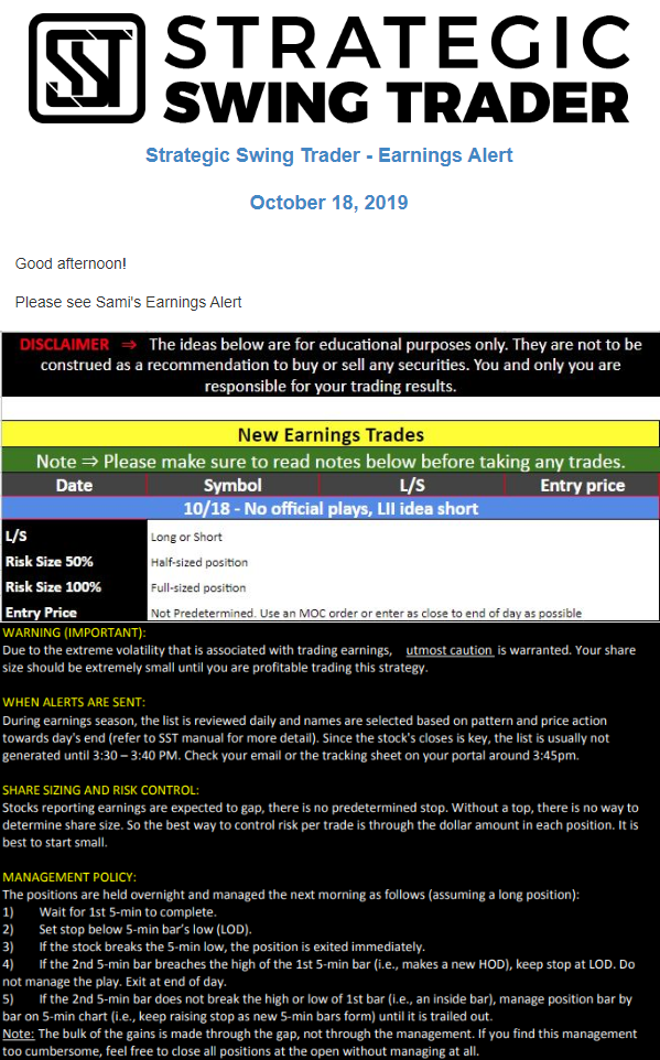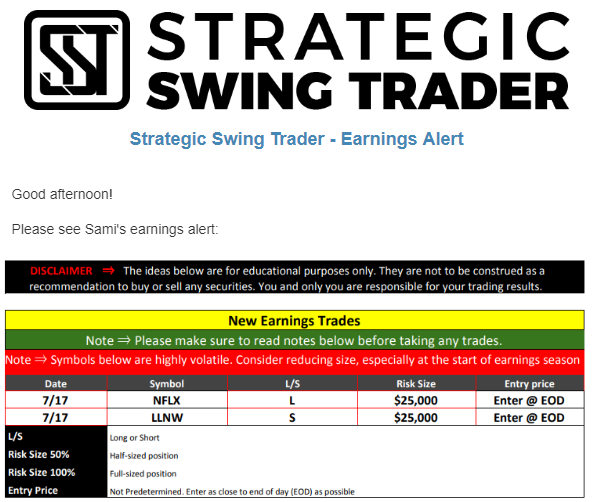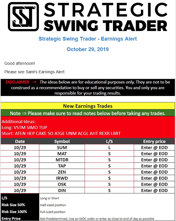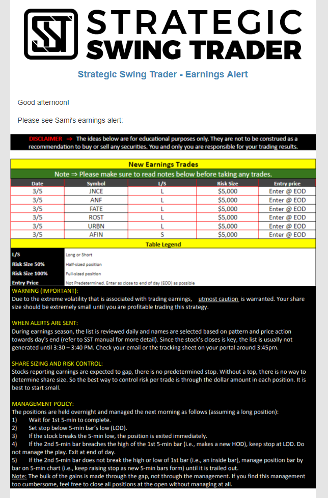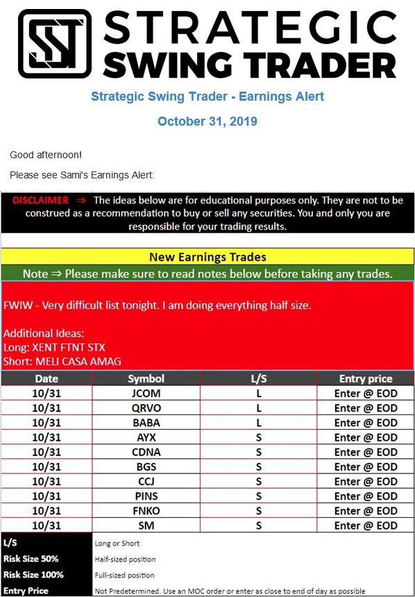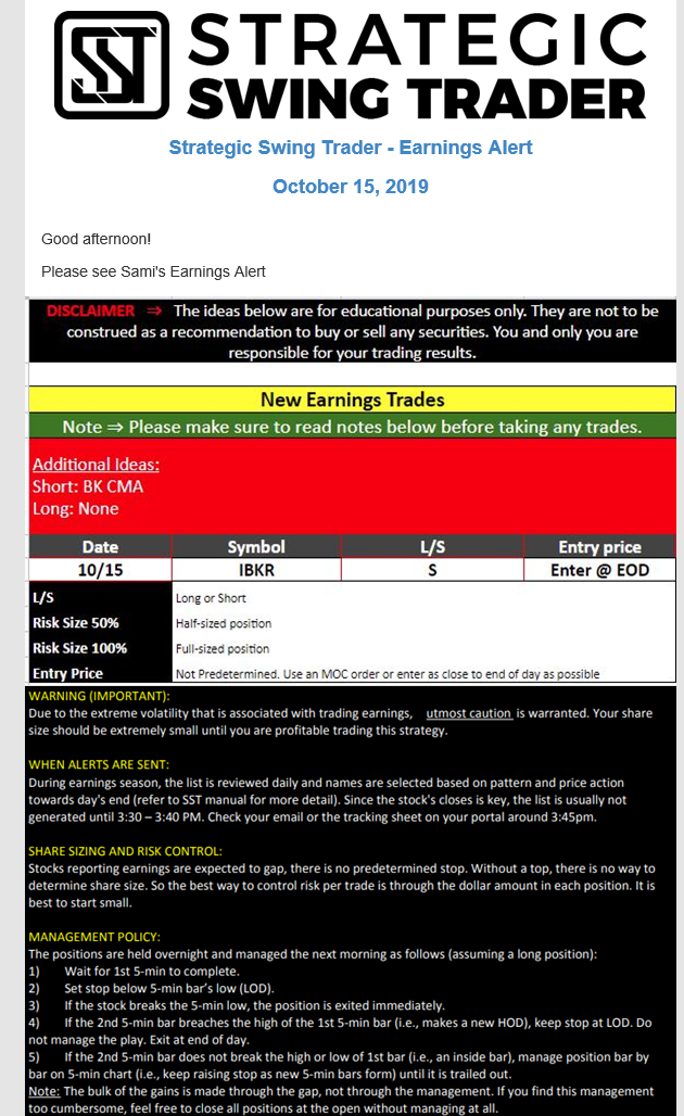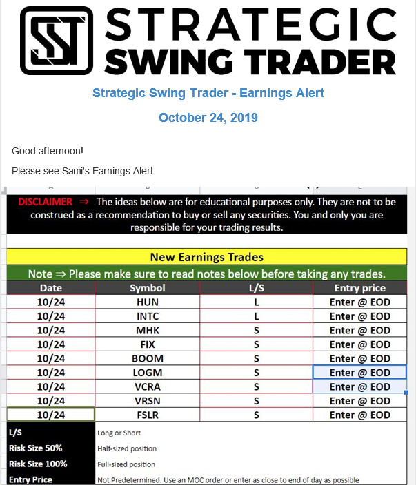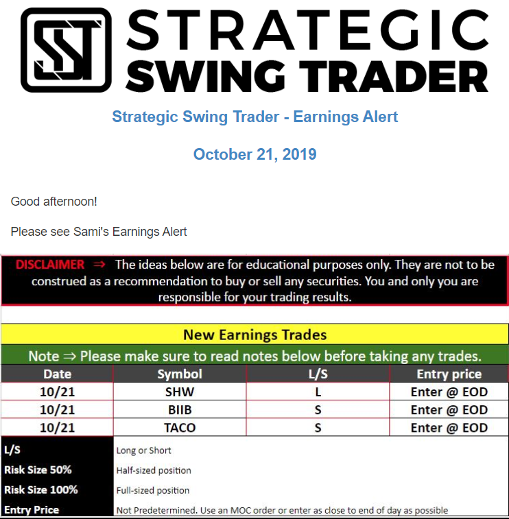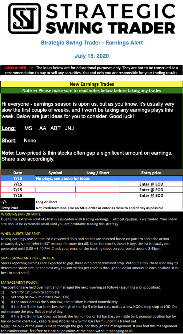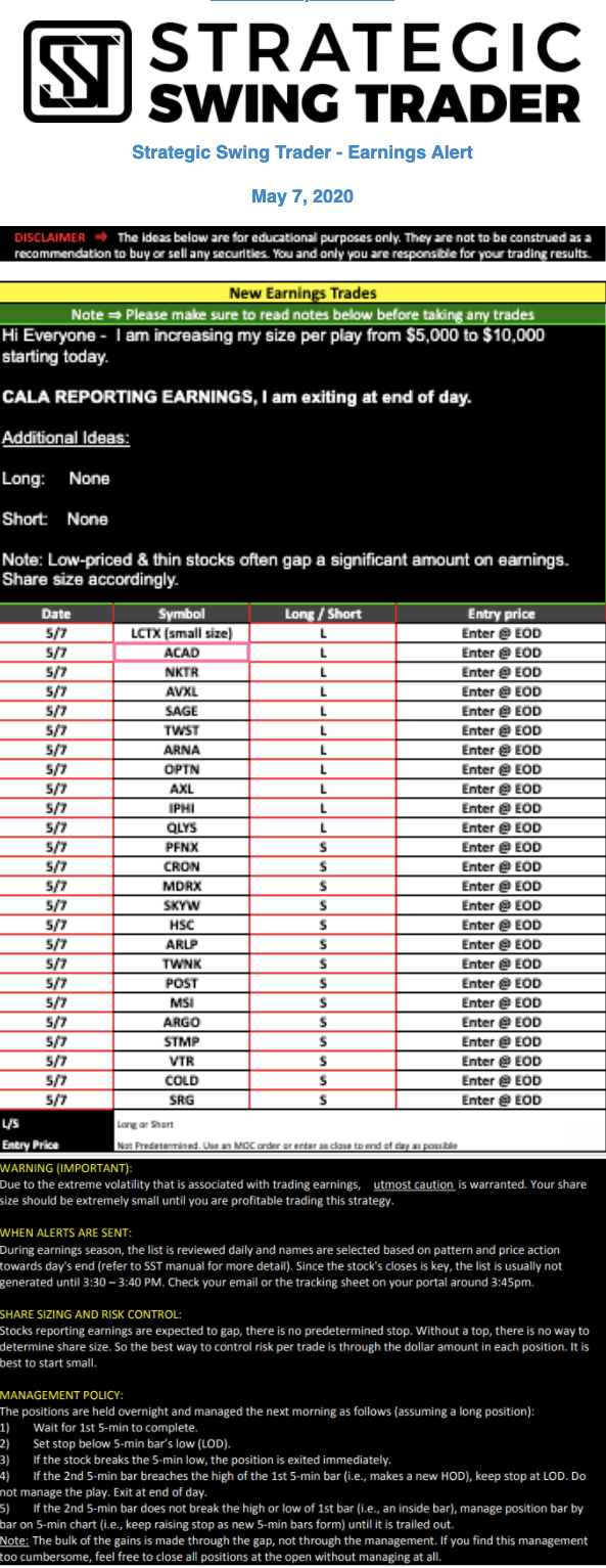 Earnings Alert Update