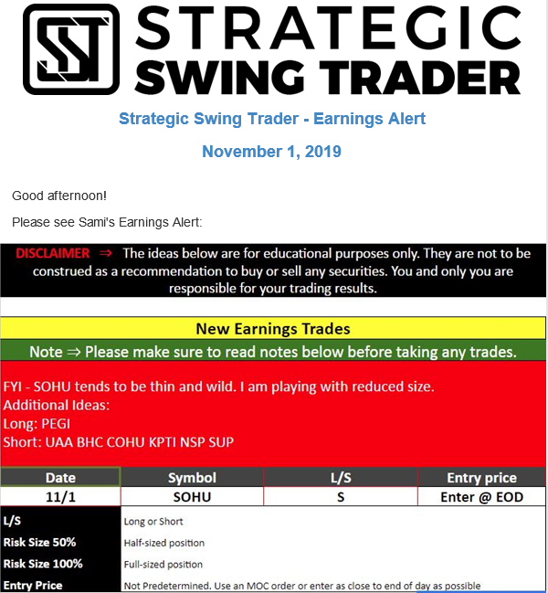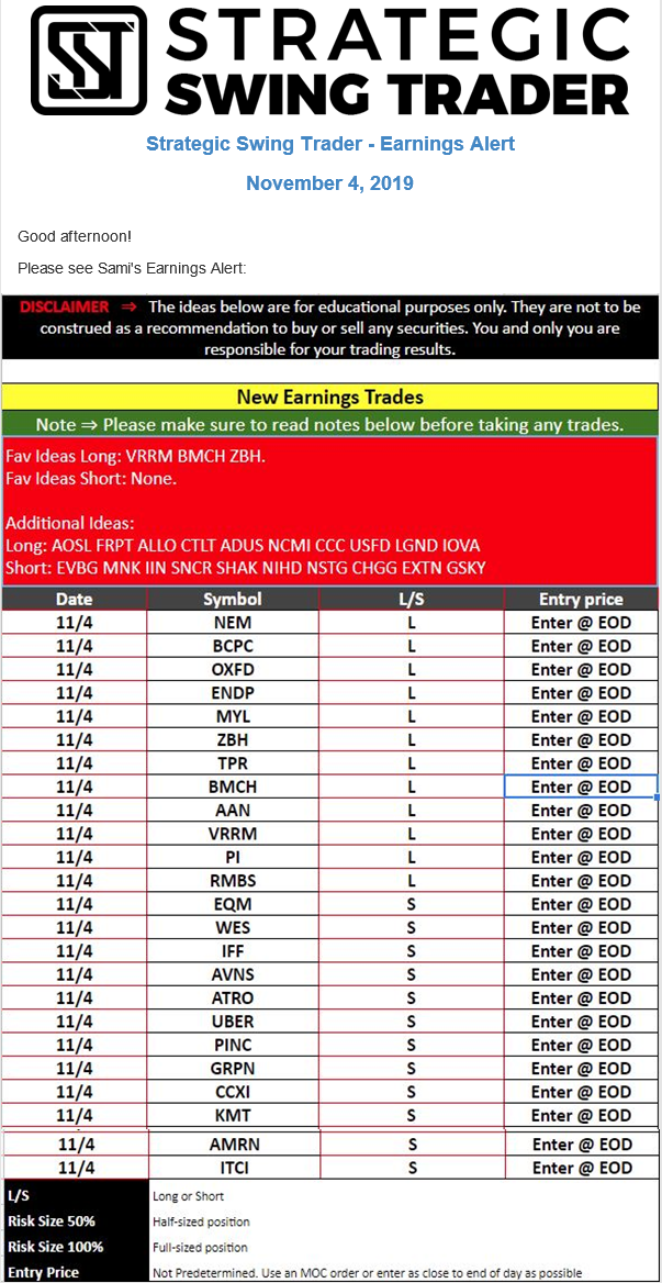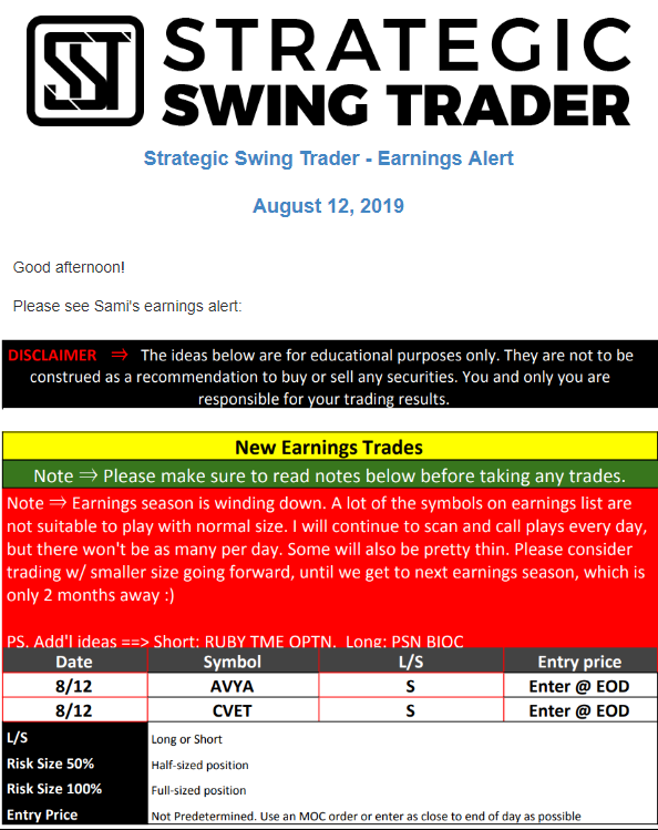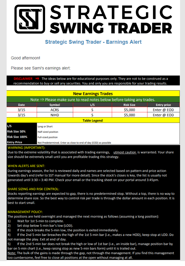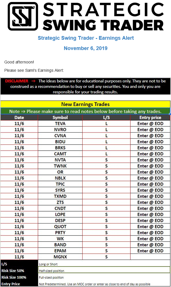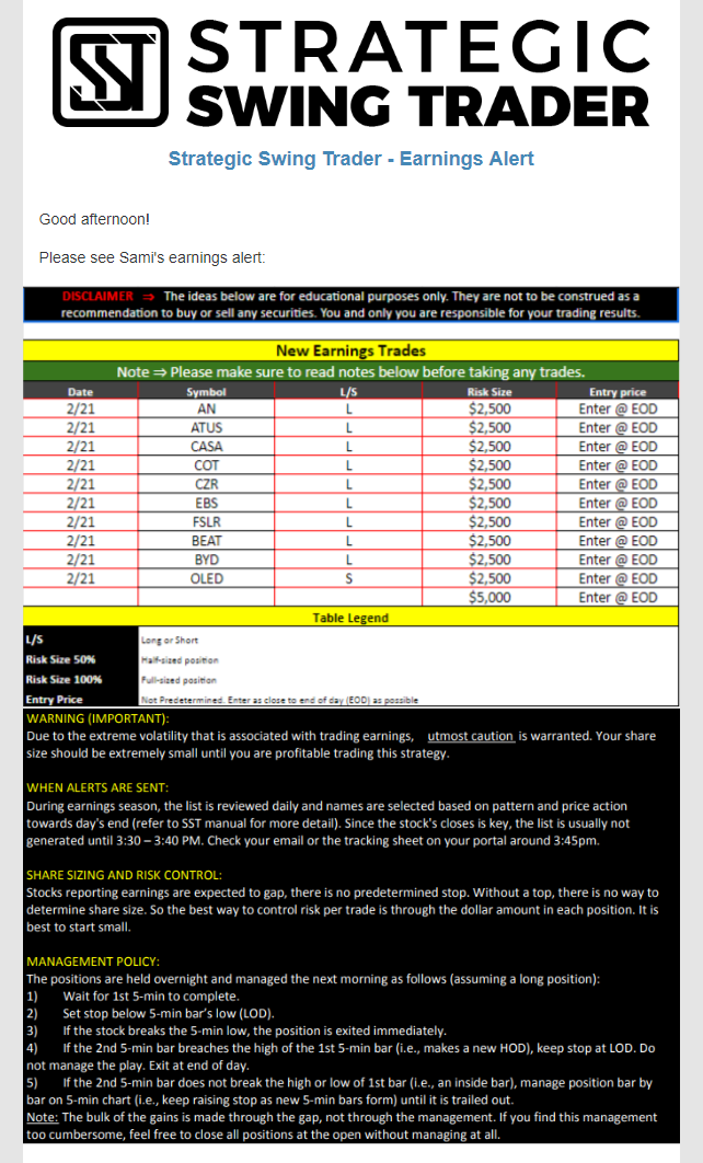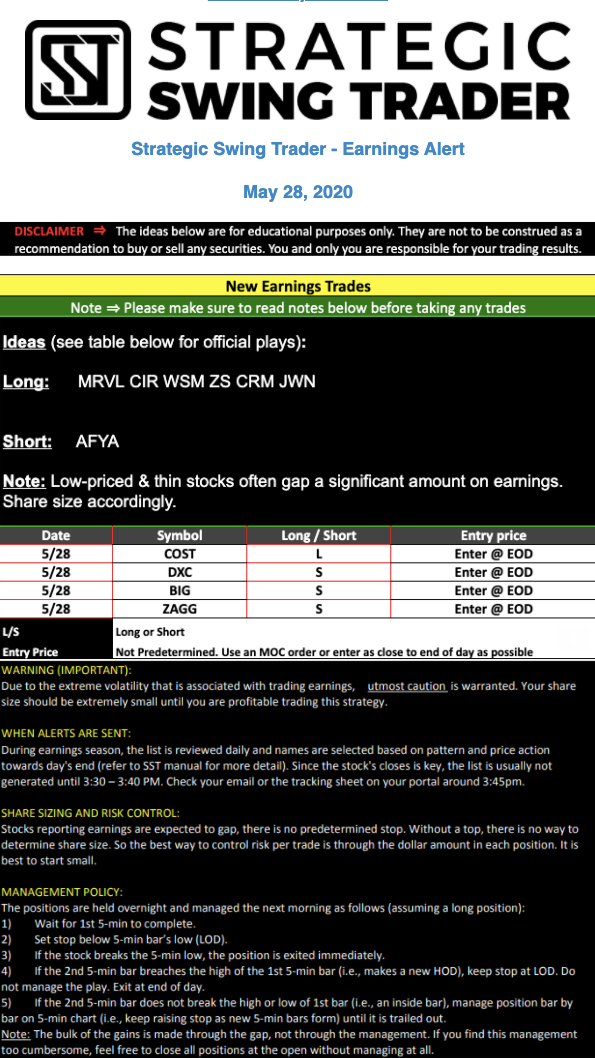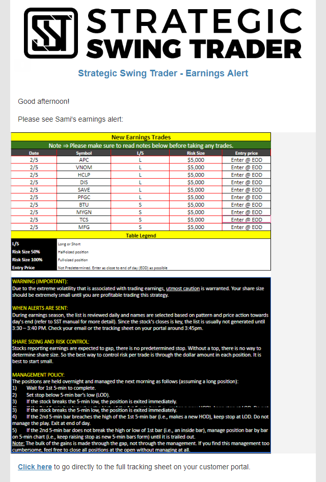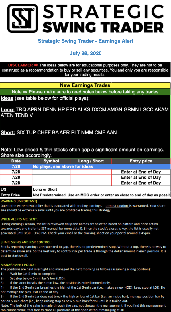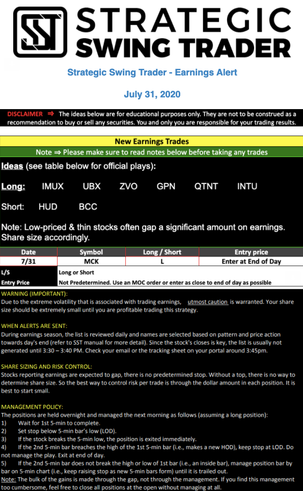 Earnings Alert Update