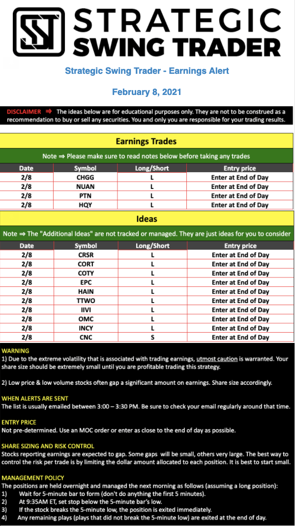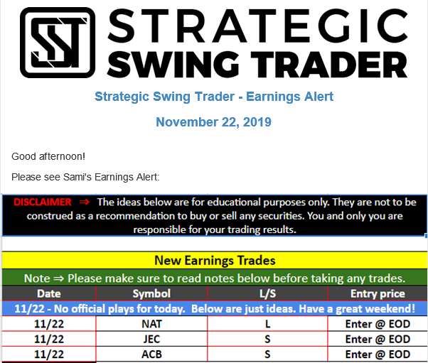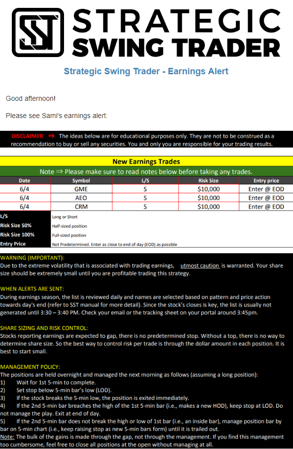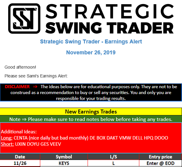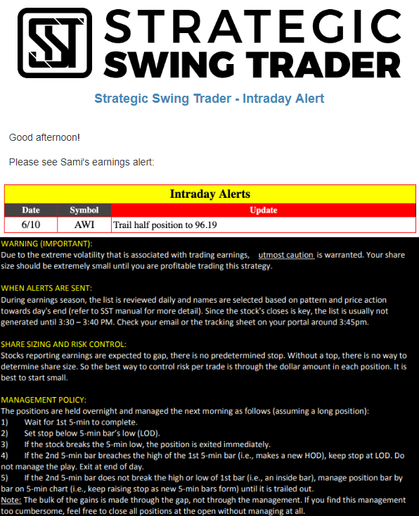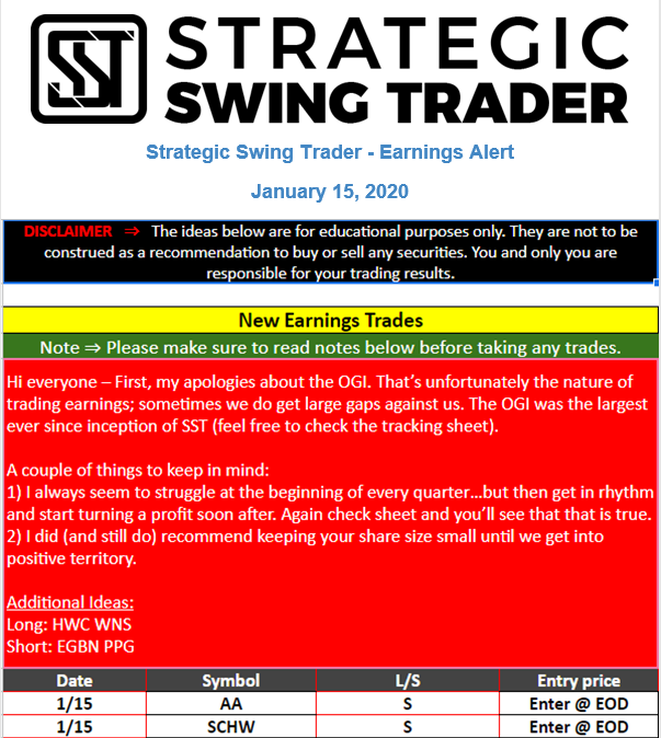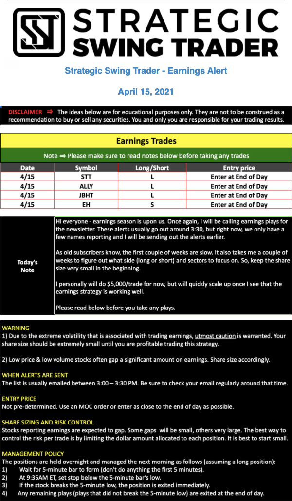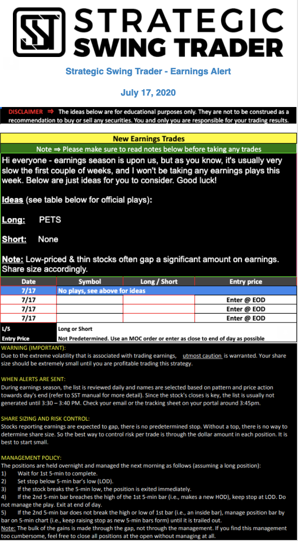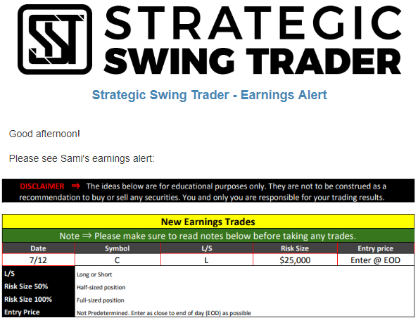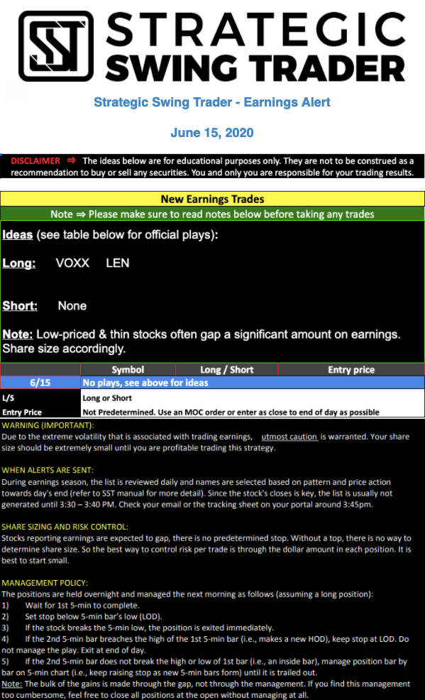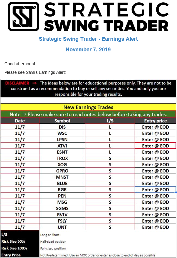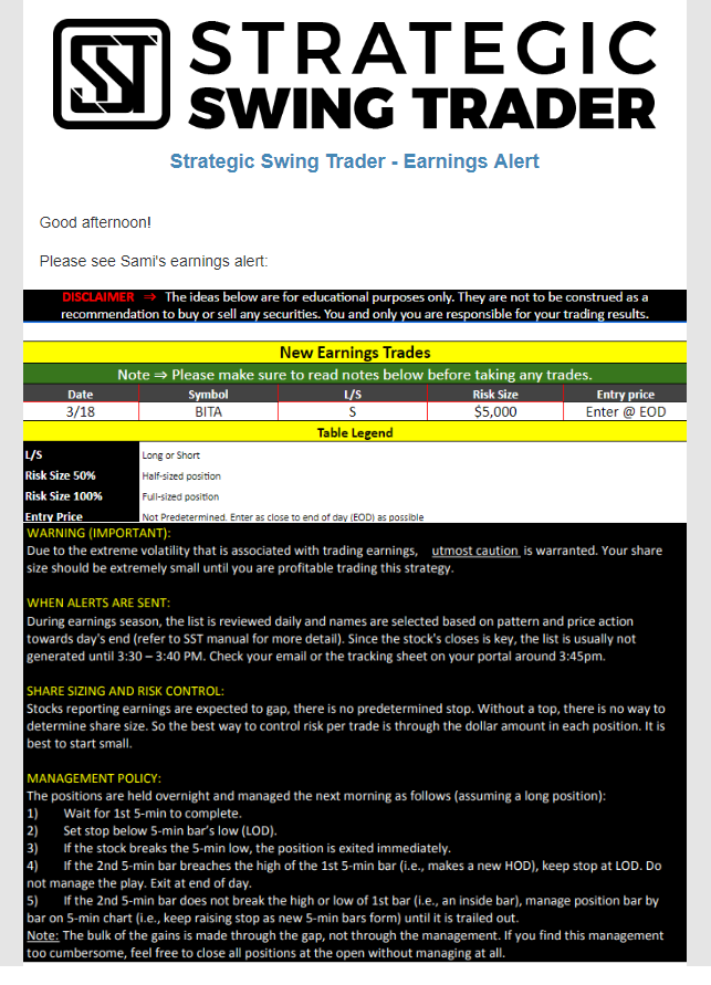 Earnings Alert Update
