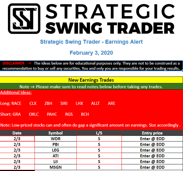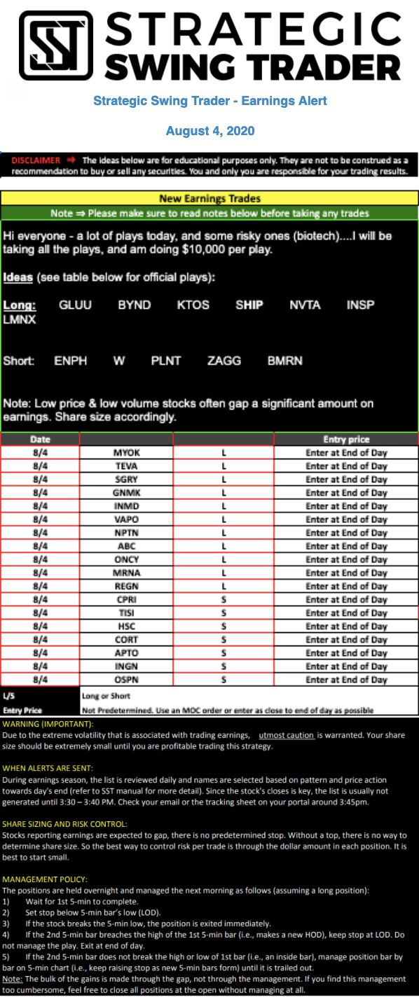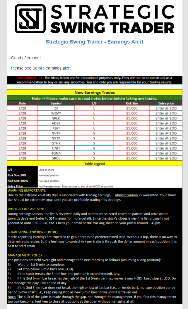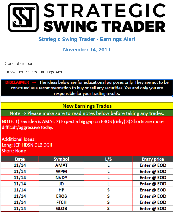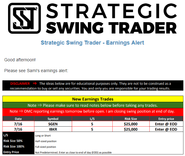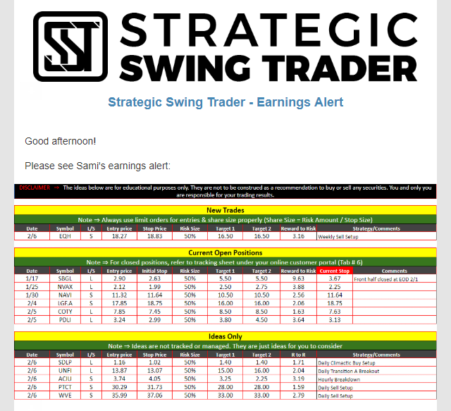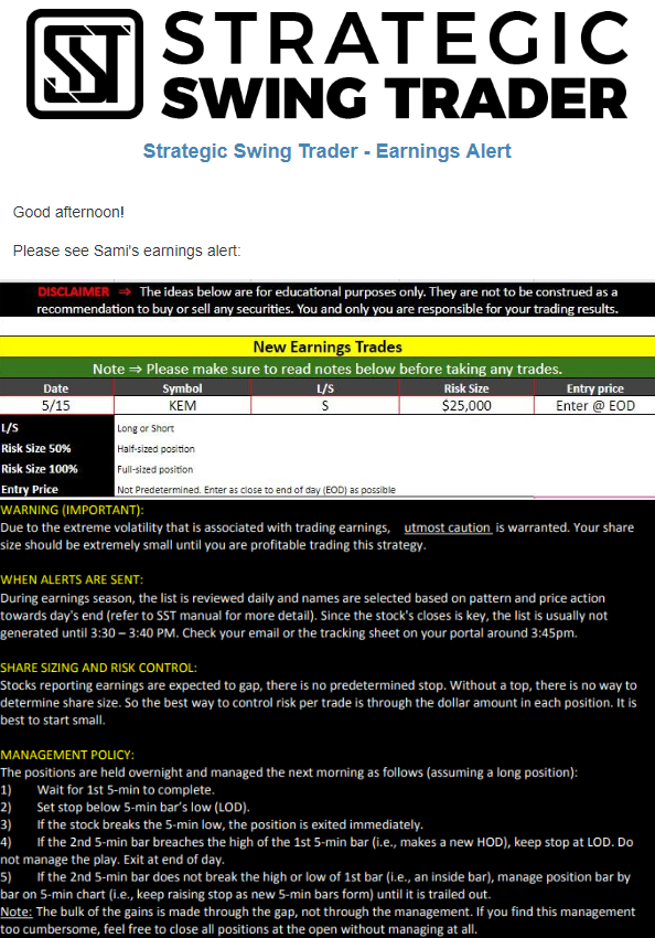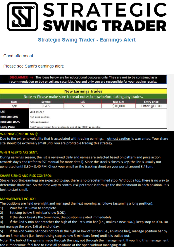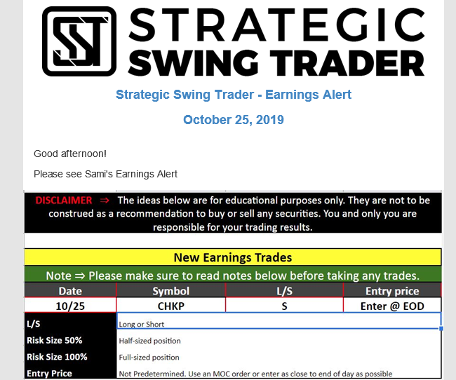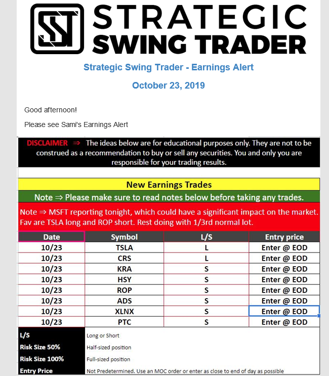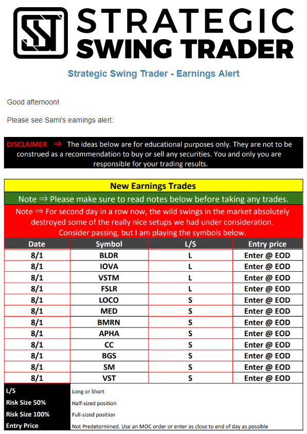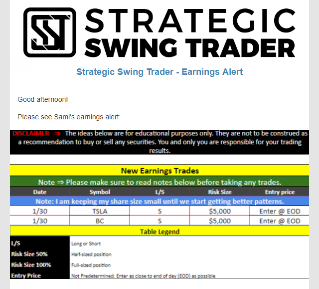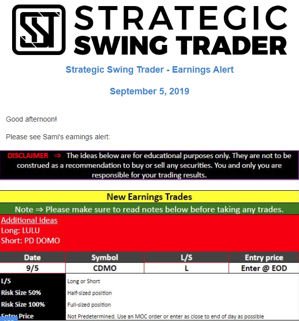 Earnings Alert Update