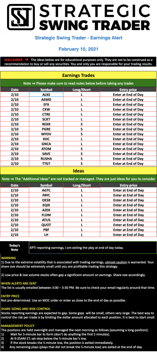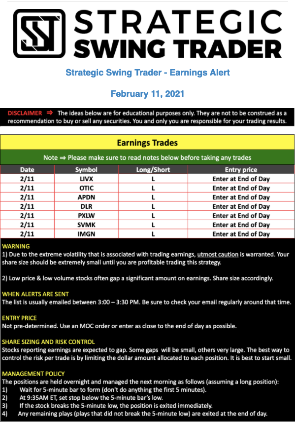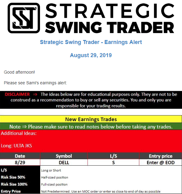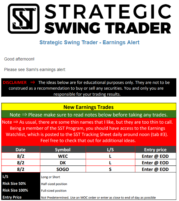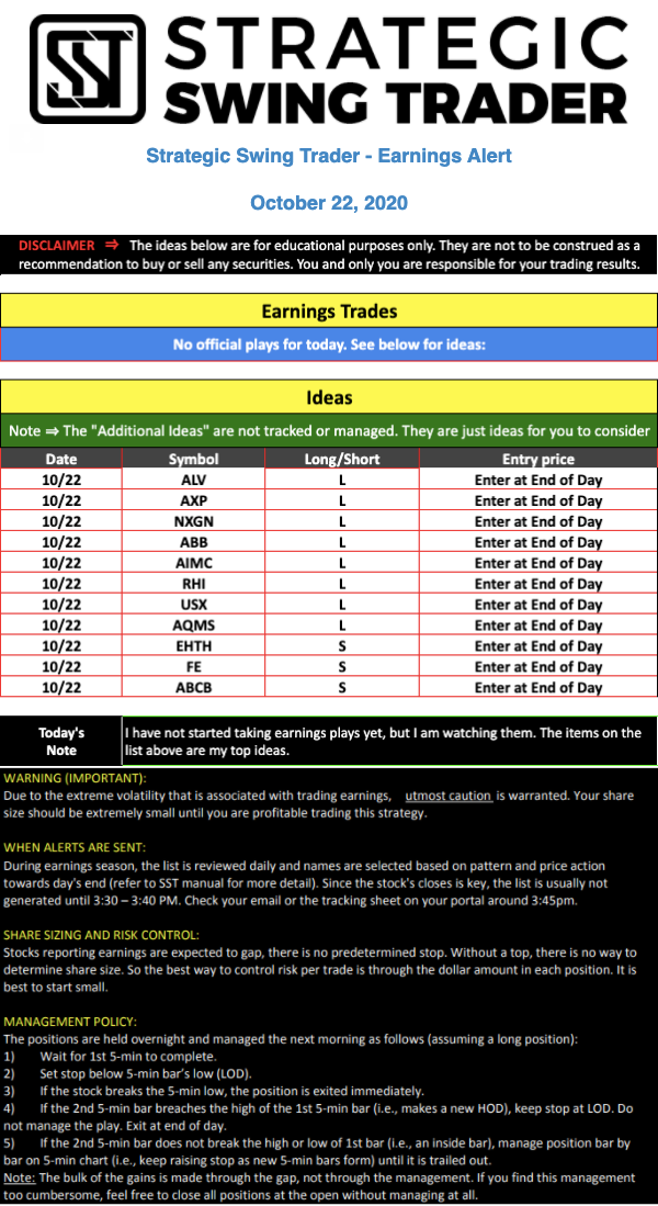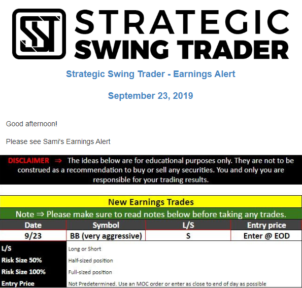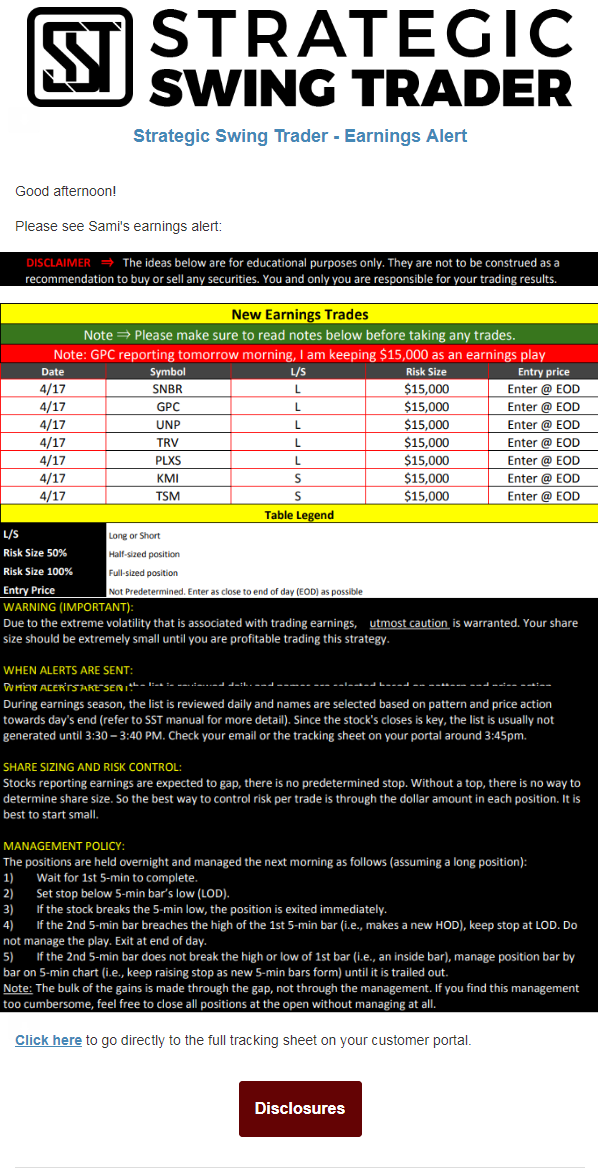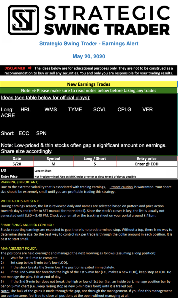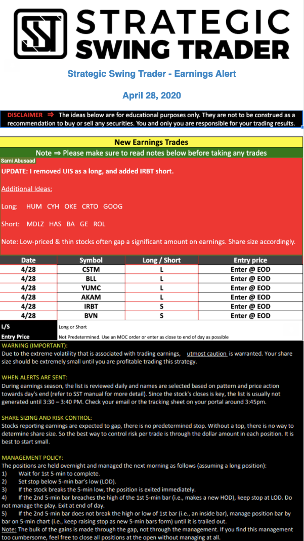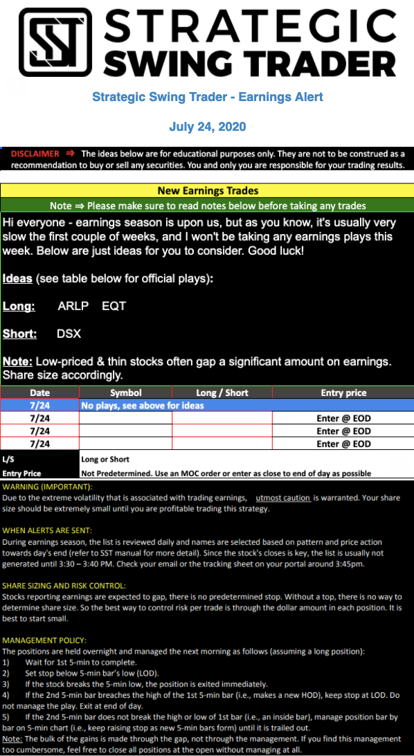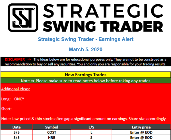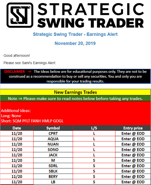 Earnings Alert Update