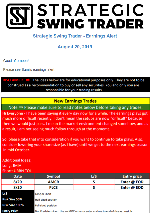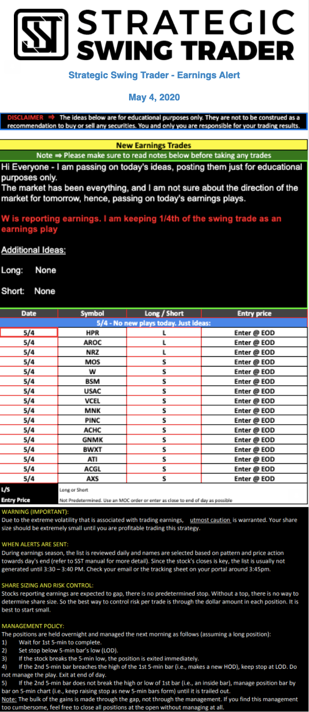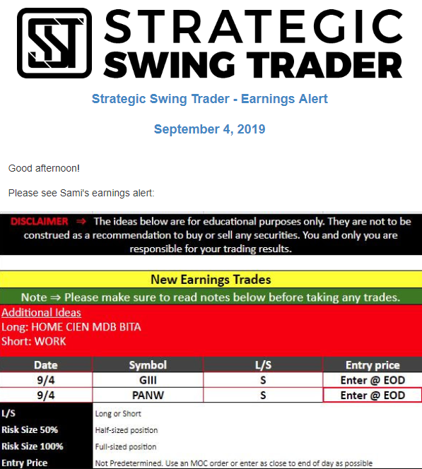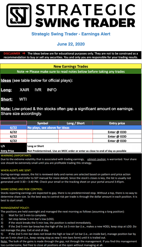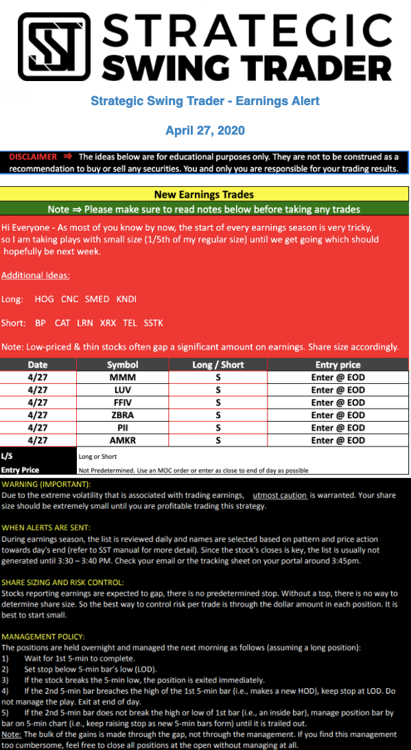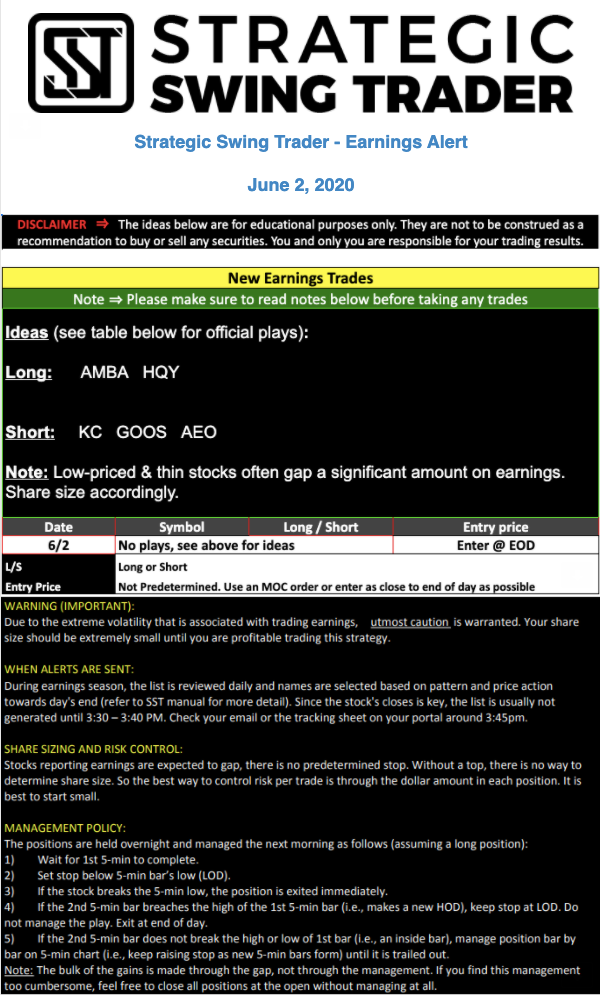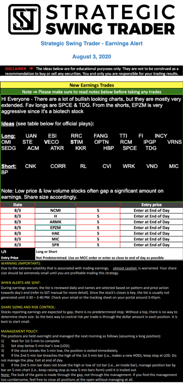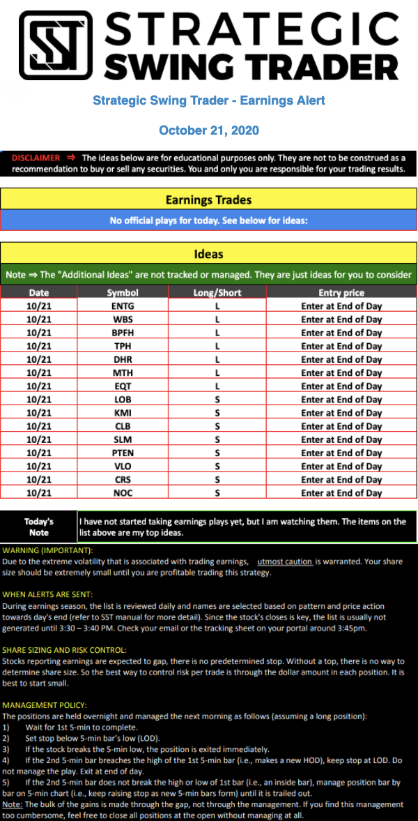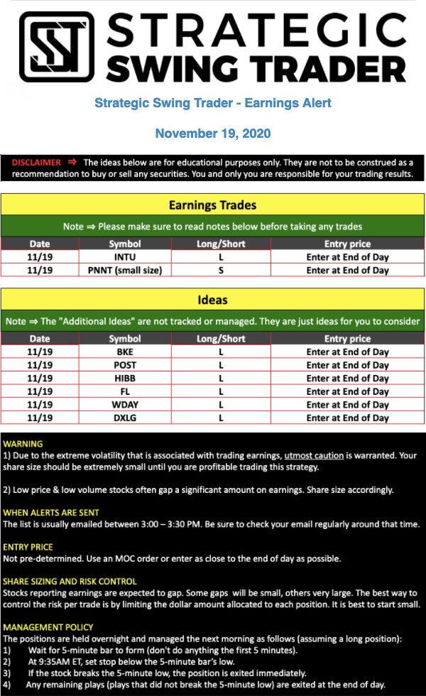 Earnings Alert Update