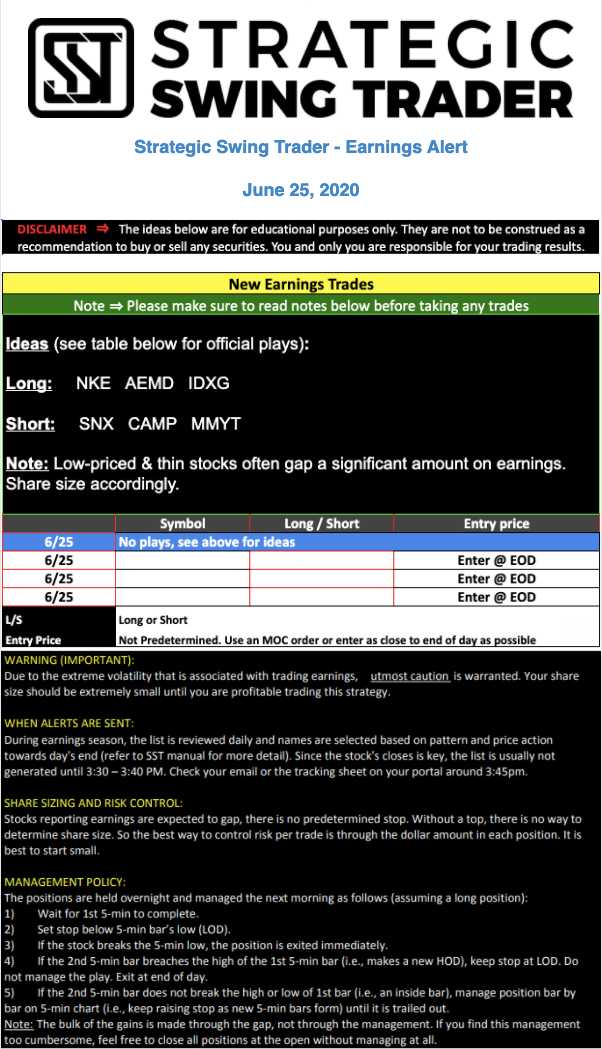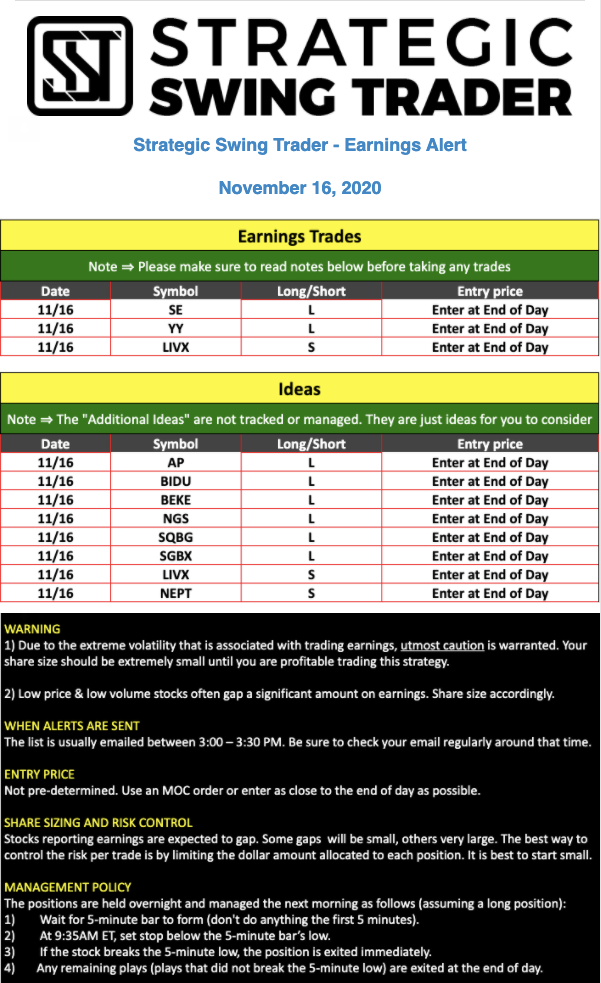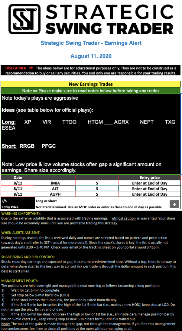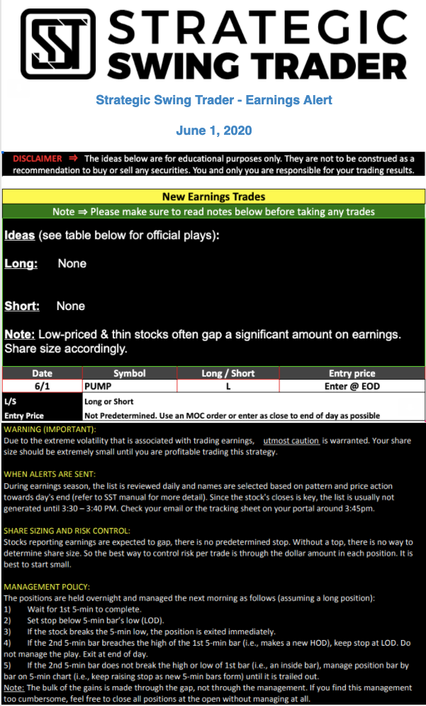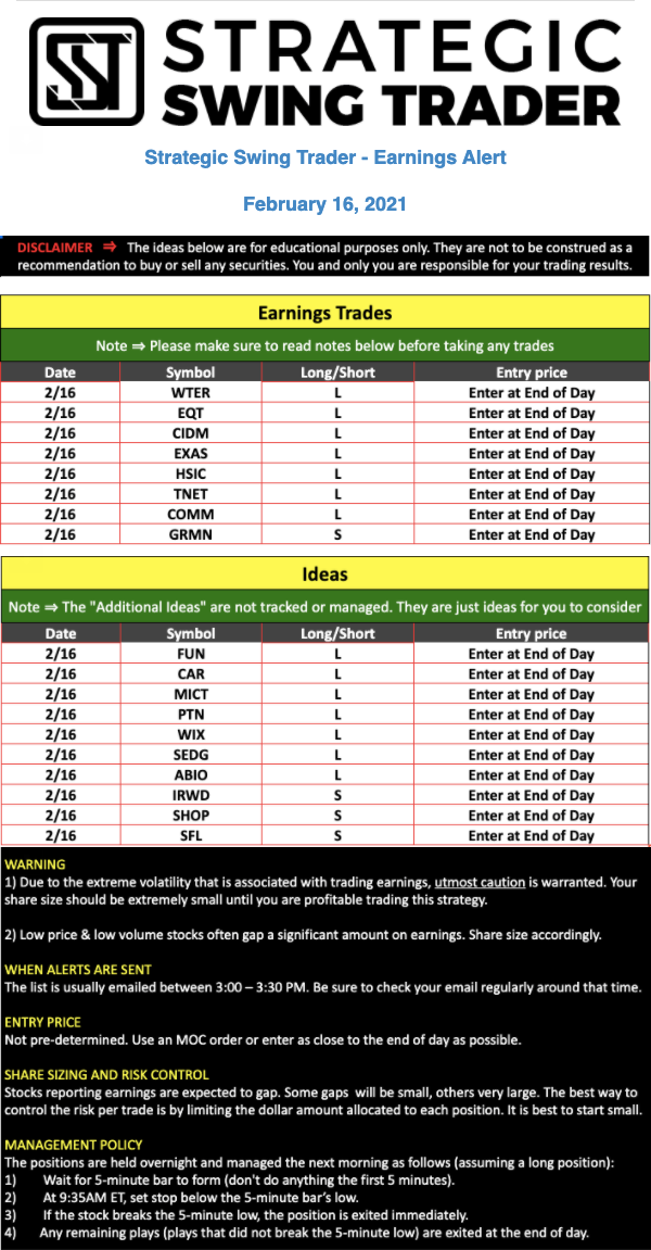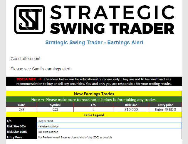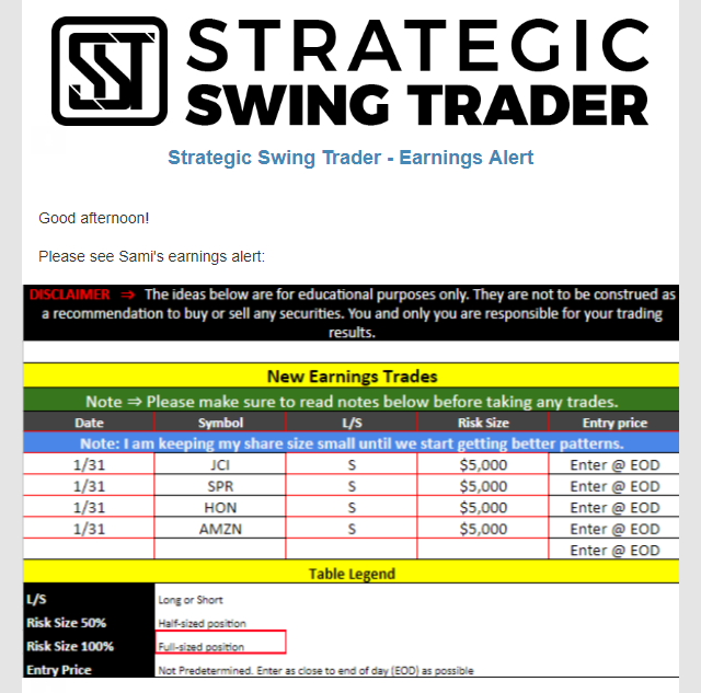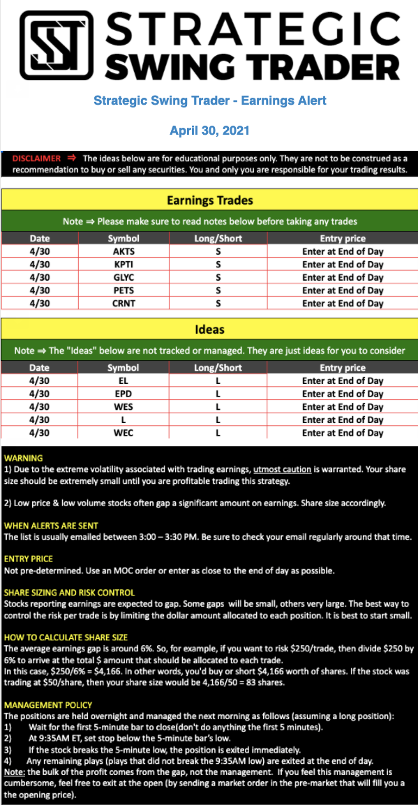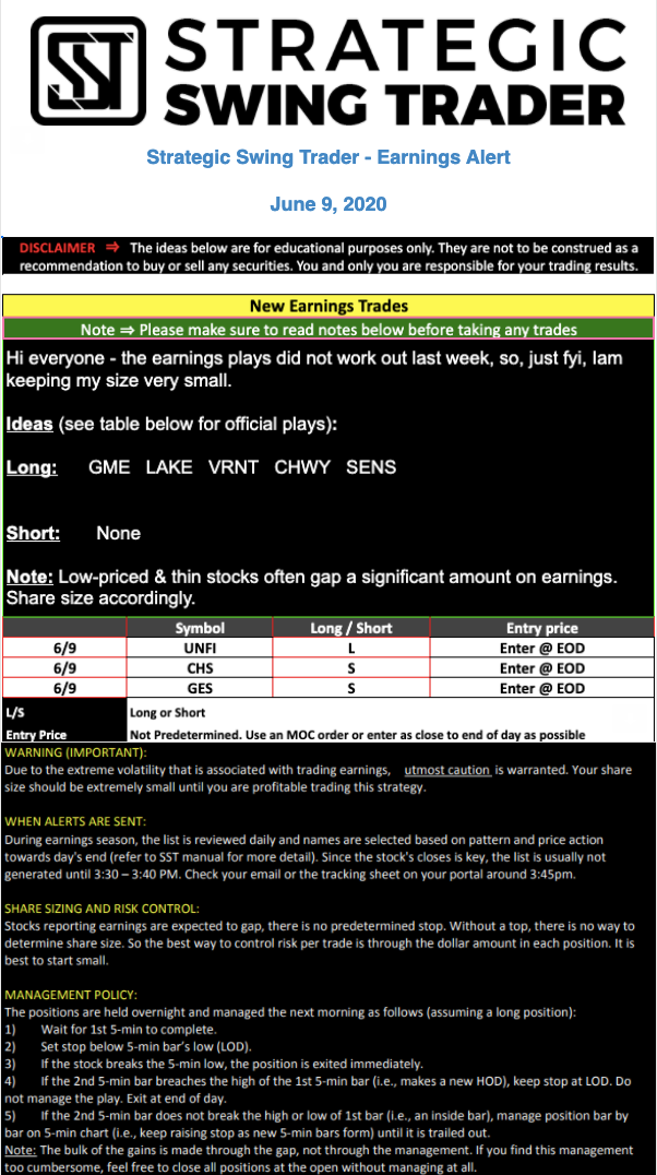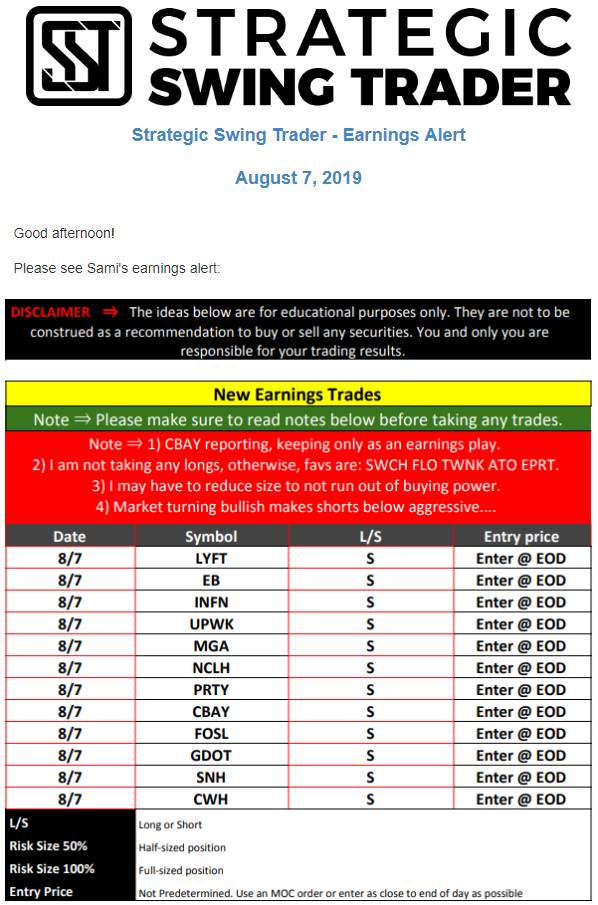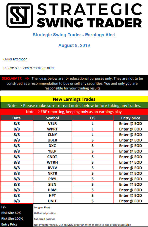 Earnings Alert Update