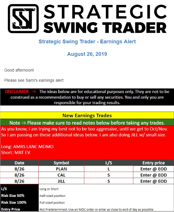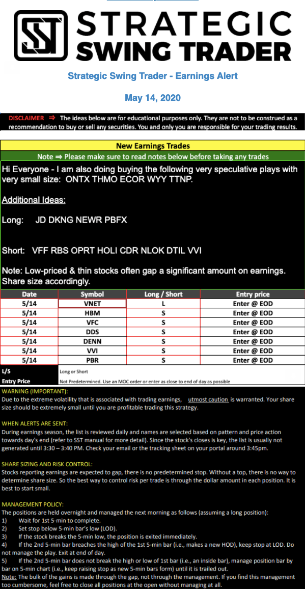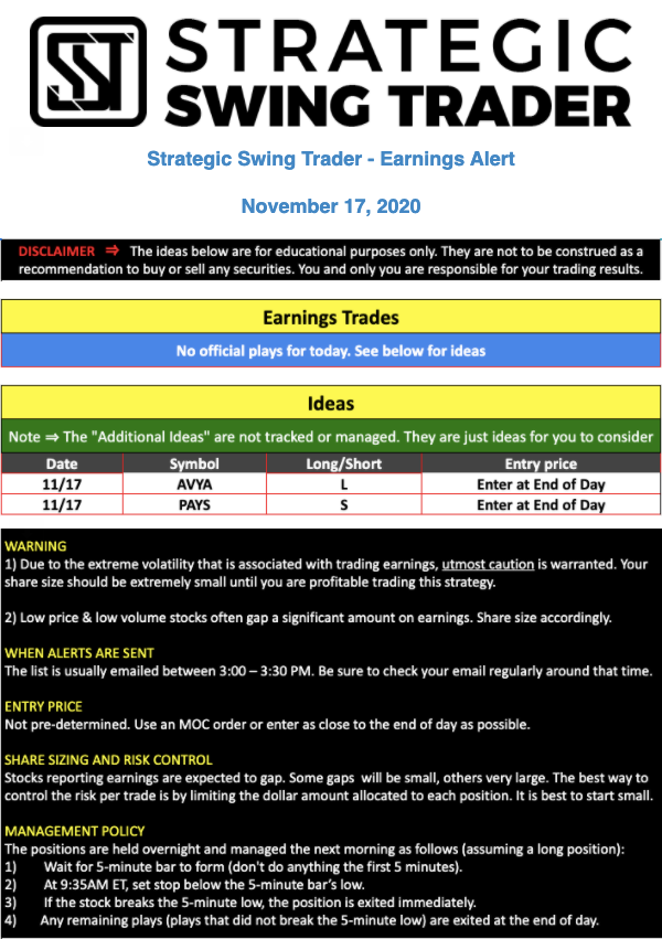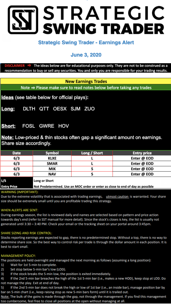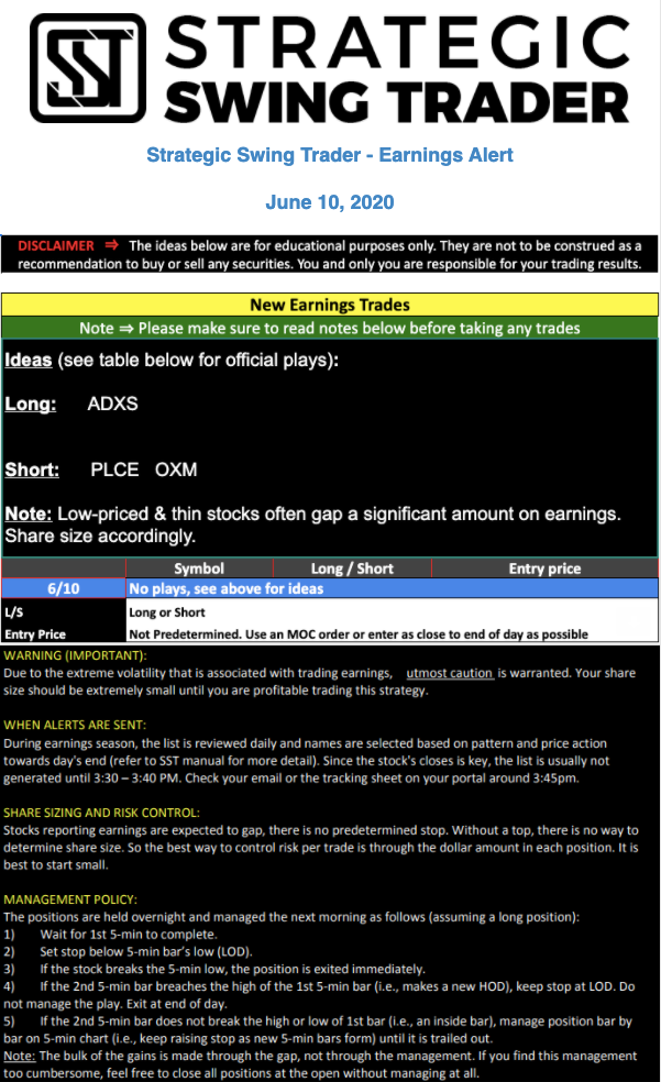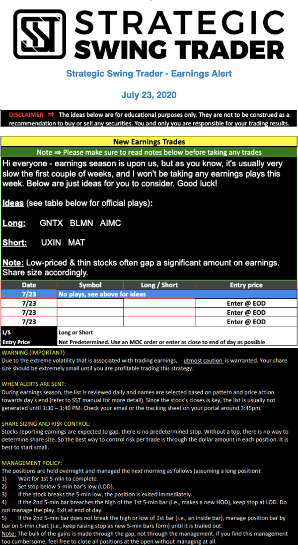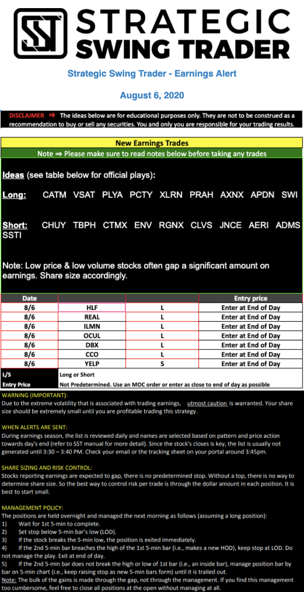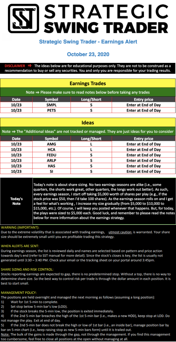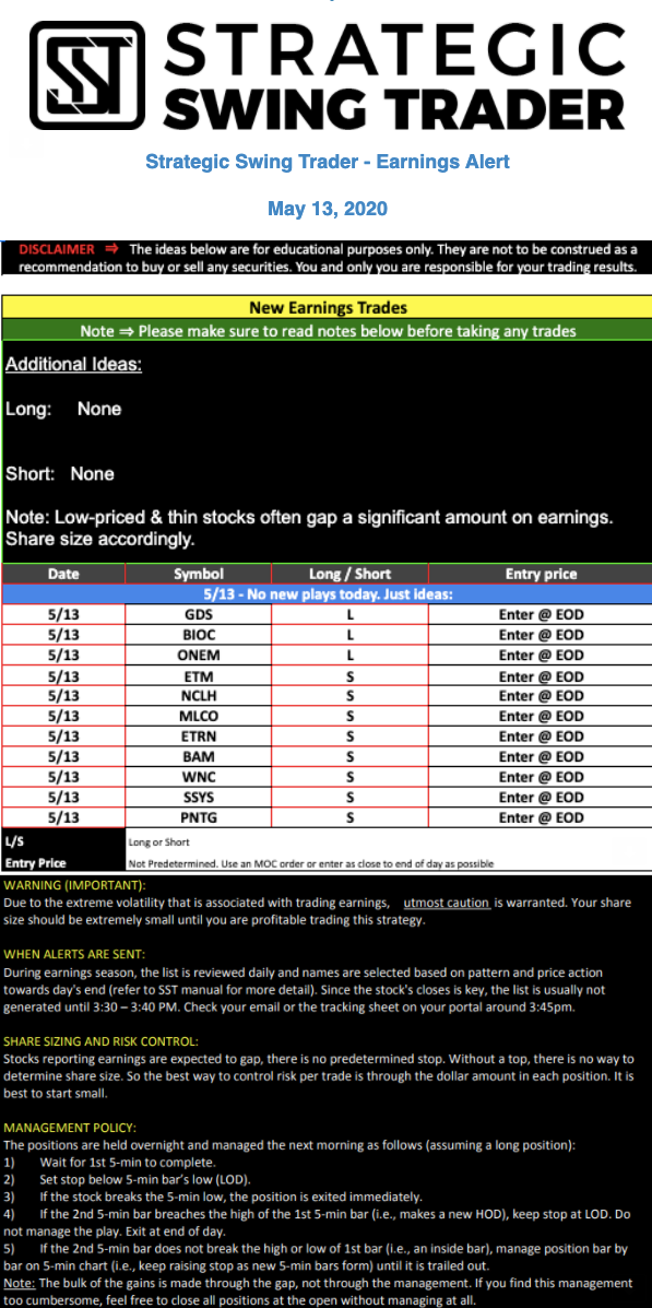 Earnings Alert Update