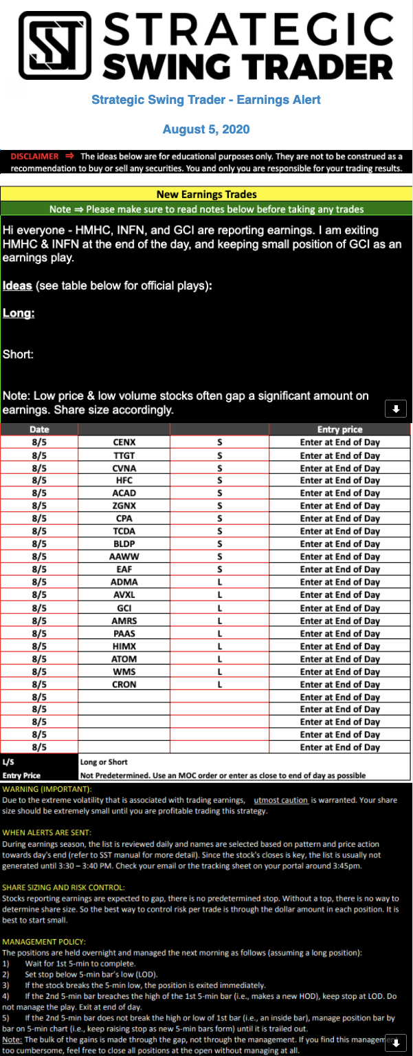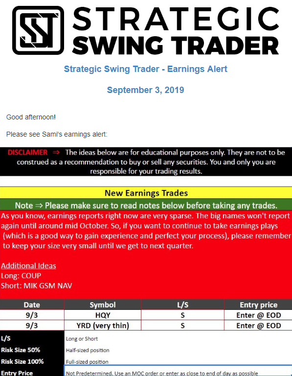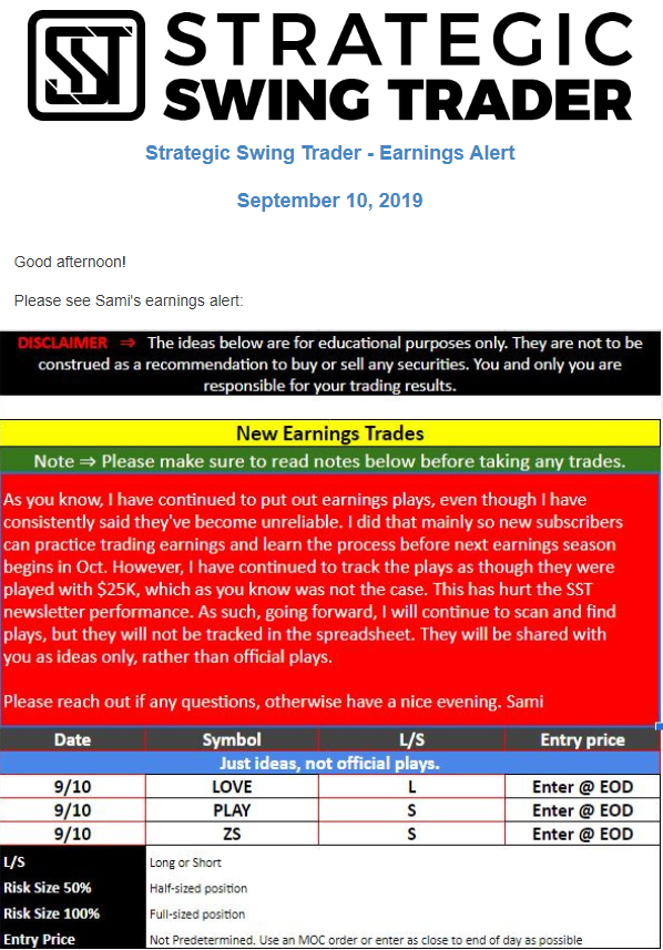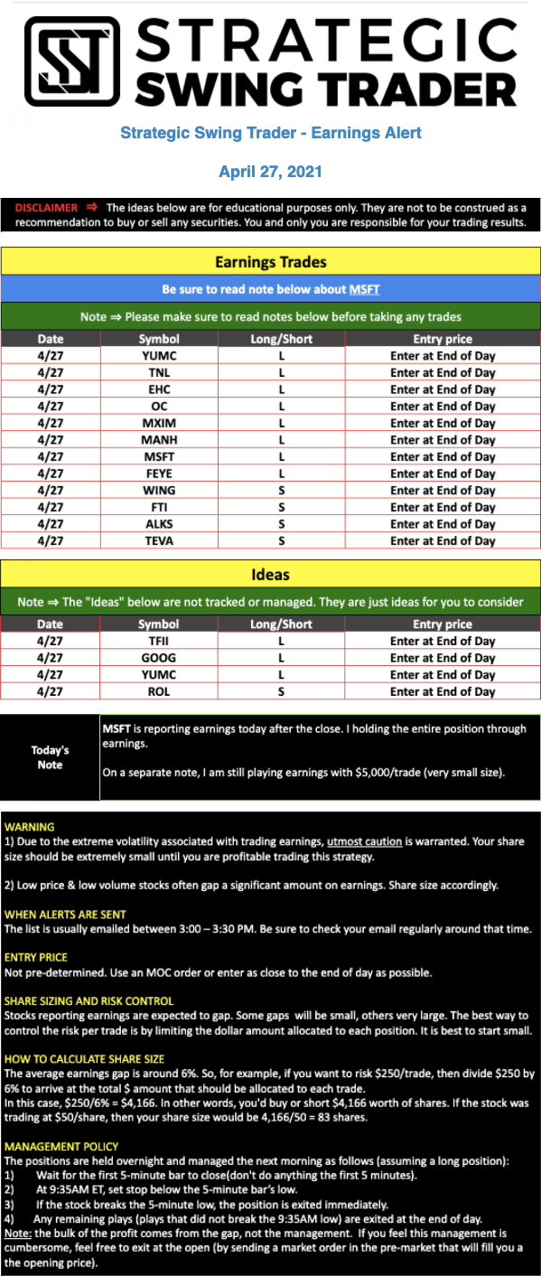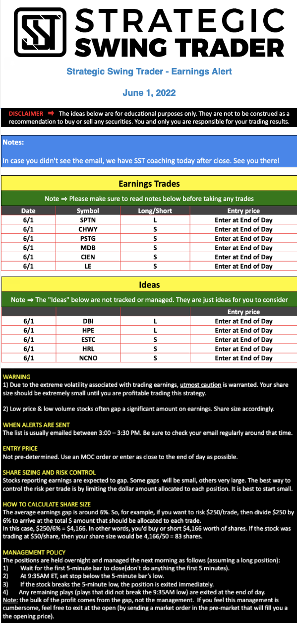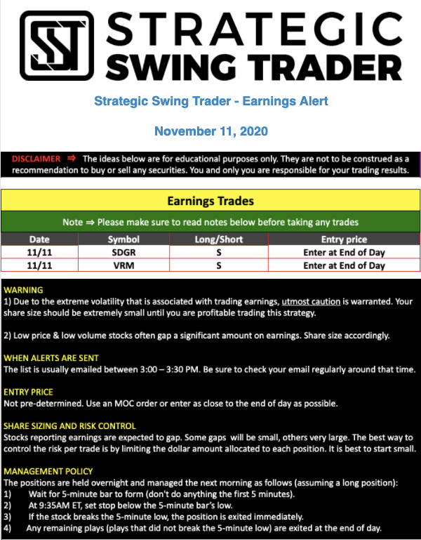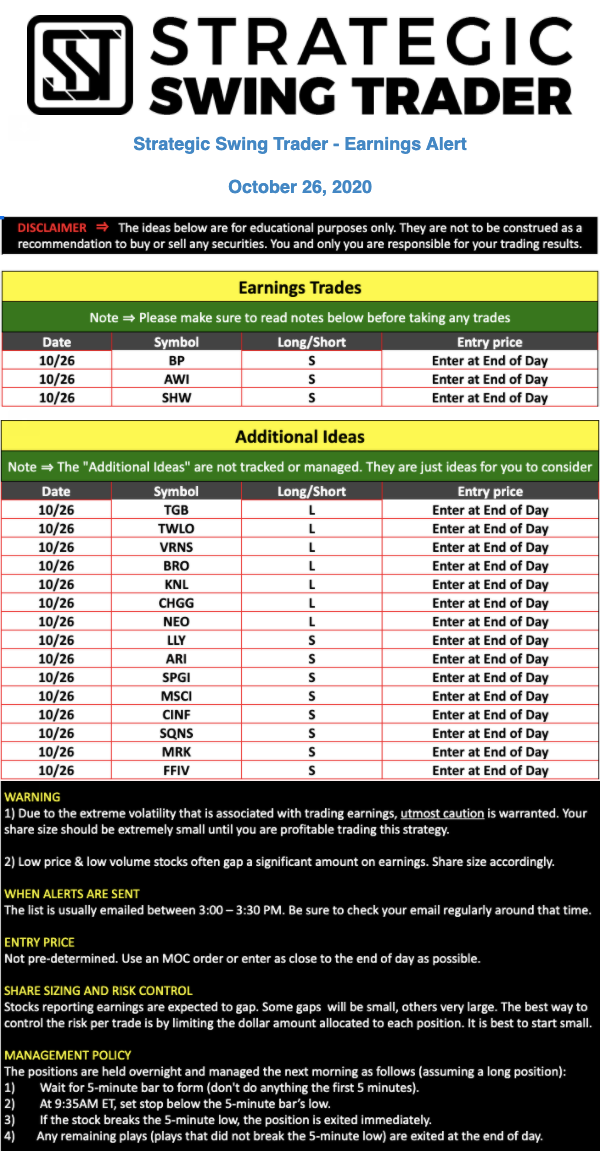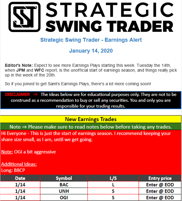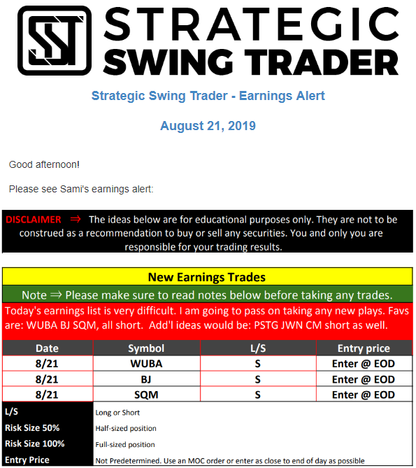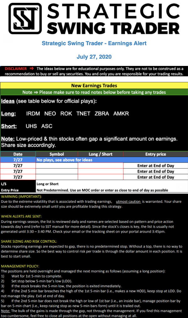 Earnings Alert Update