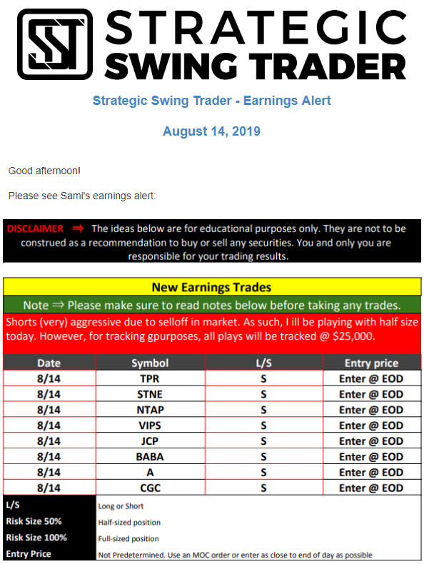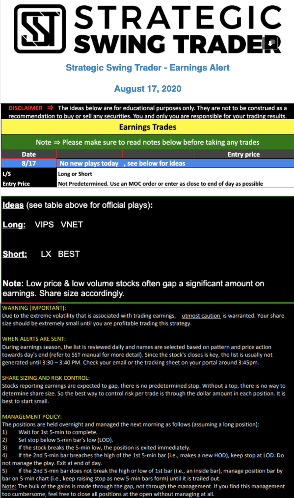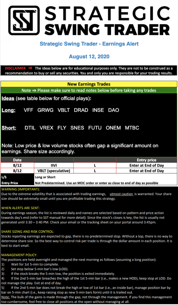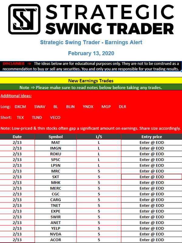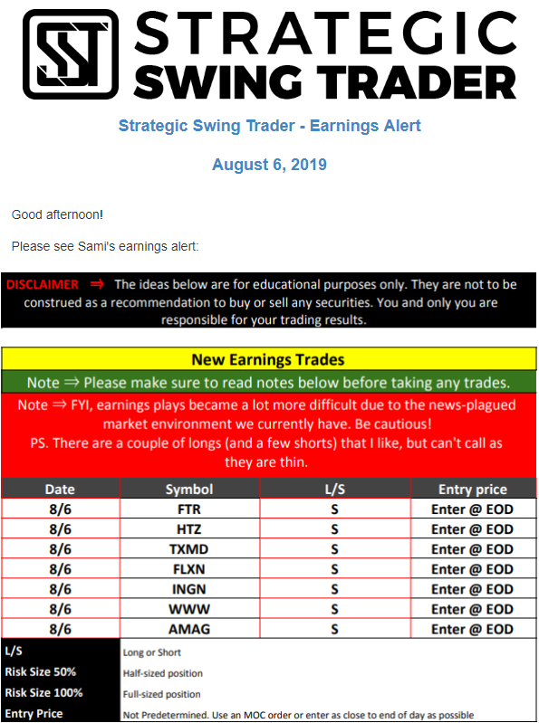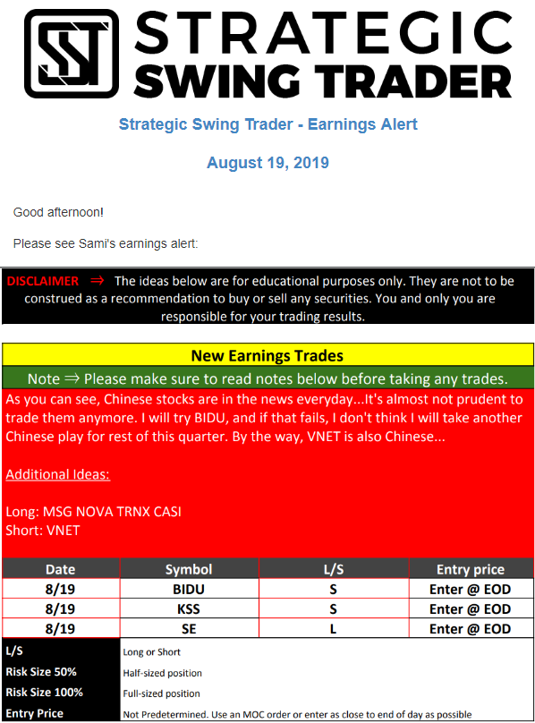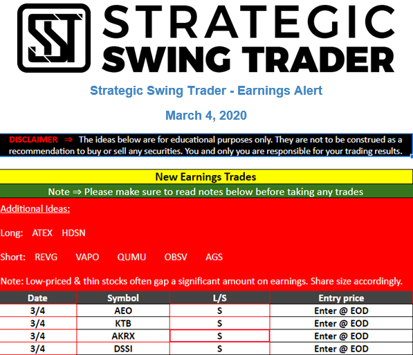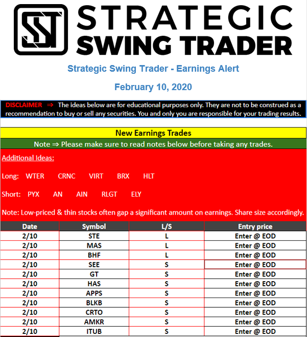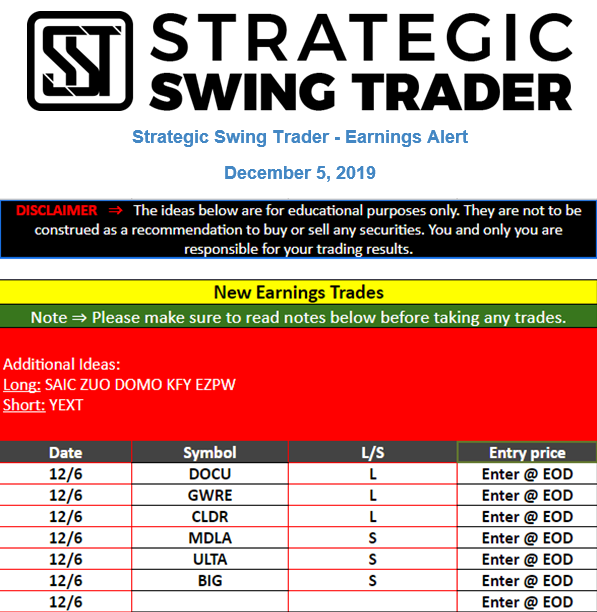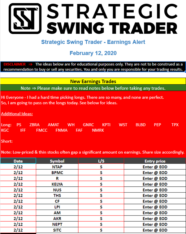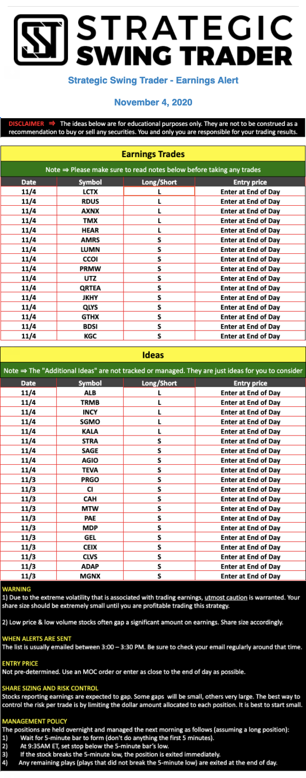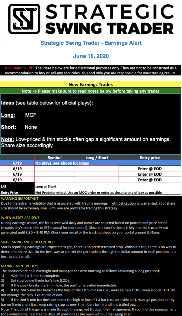 Earnings Alert Update