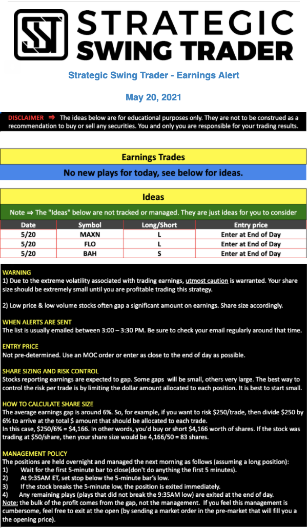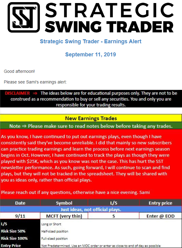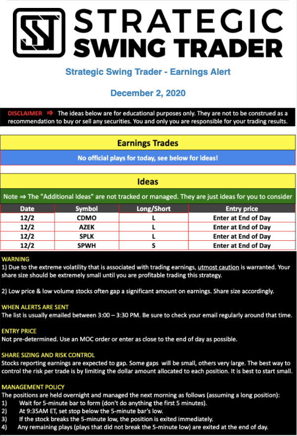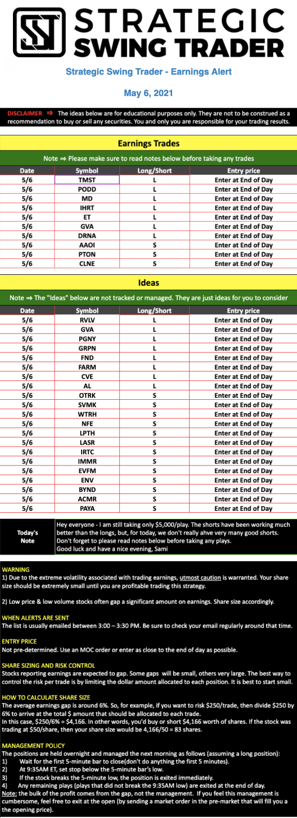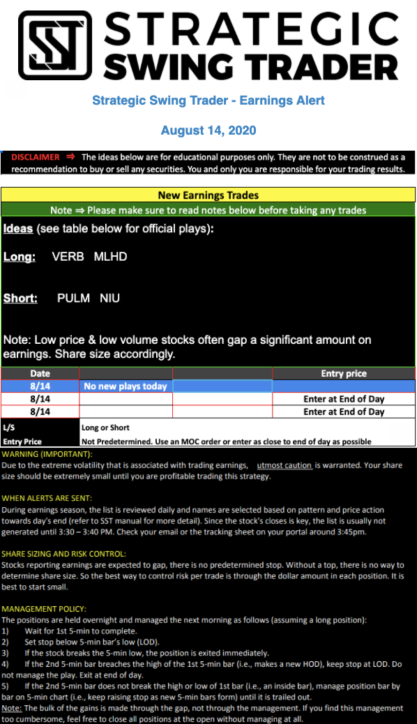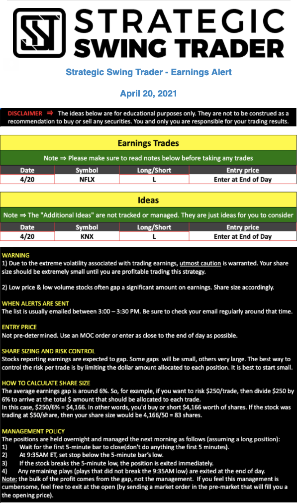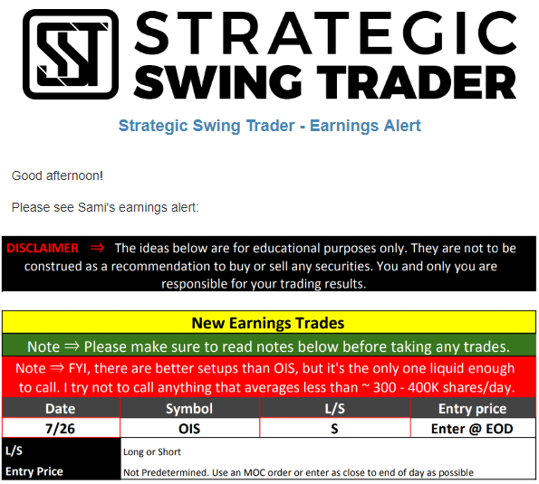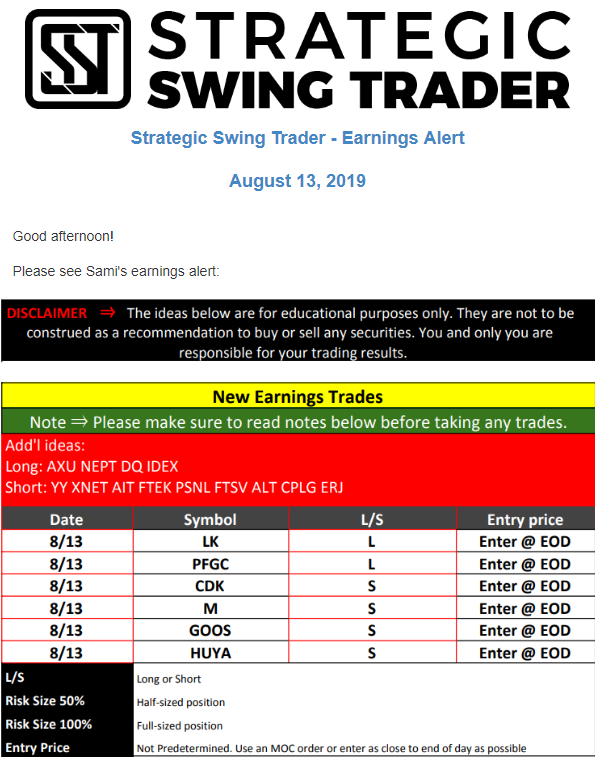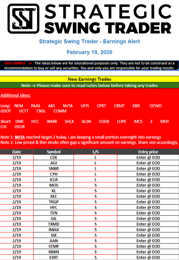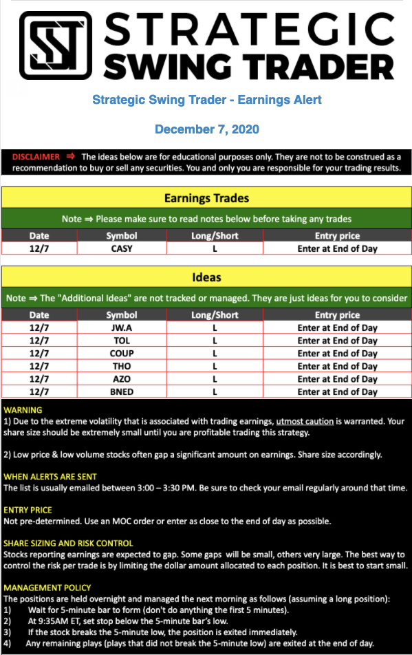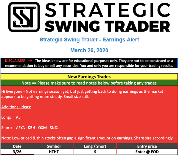 Earnings Alert Update