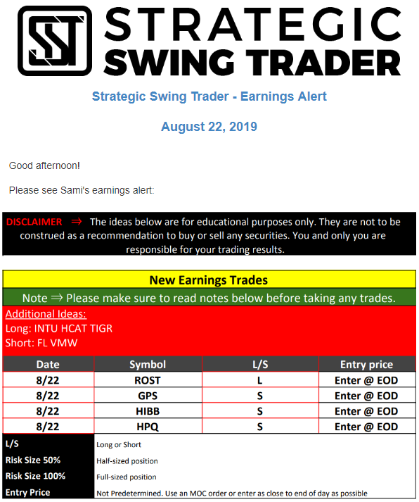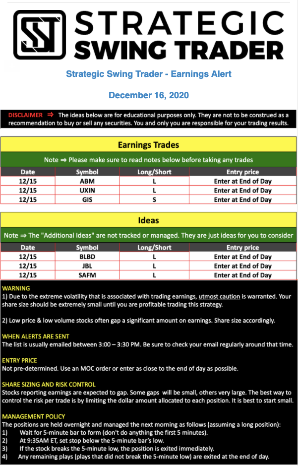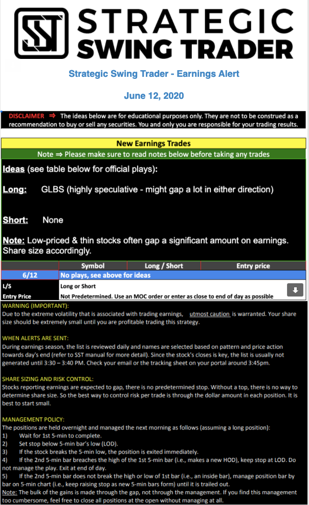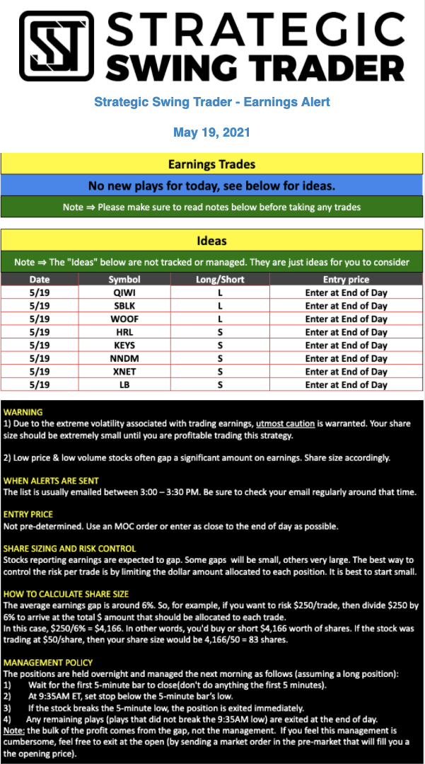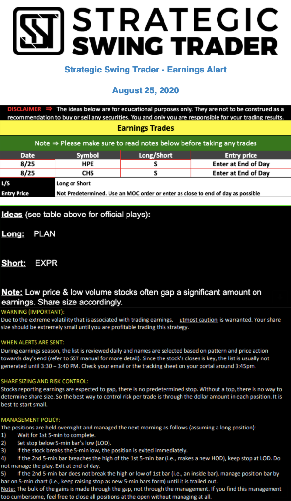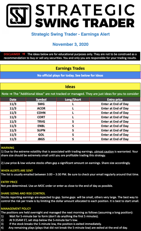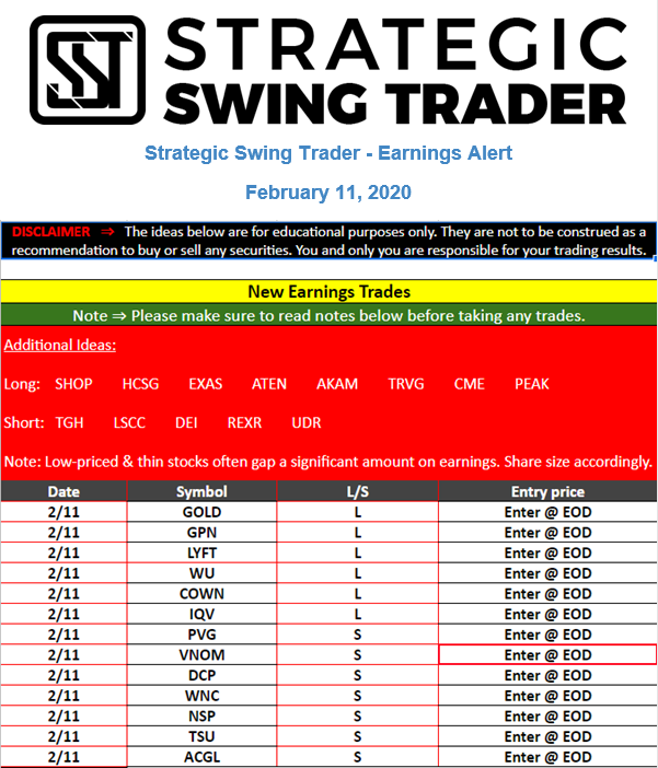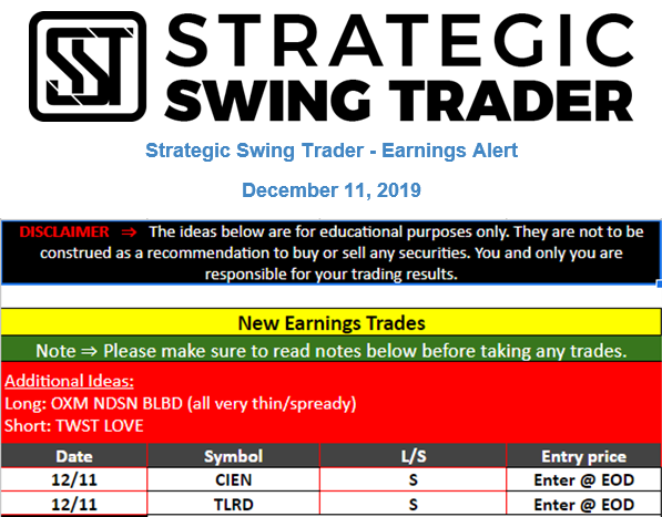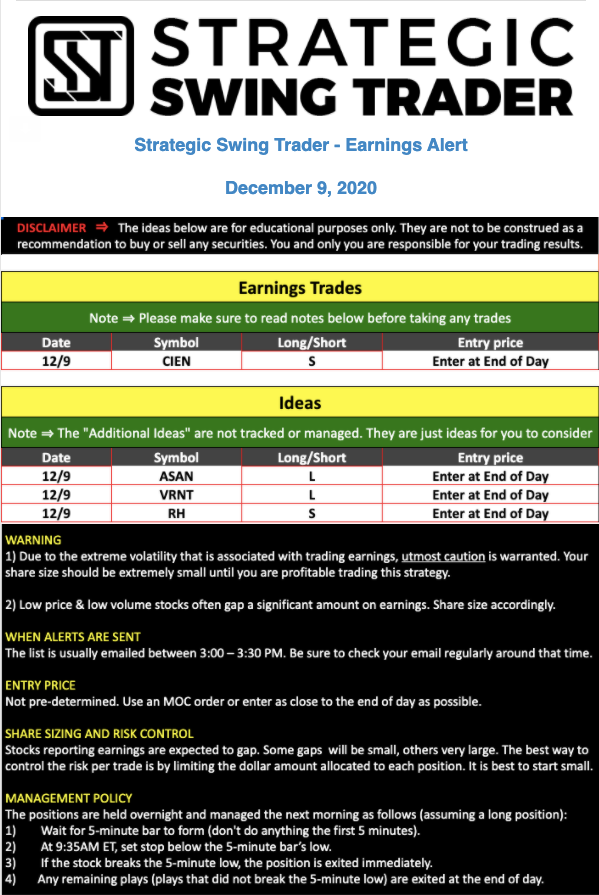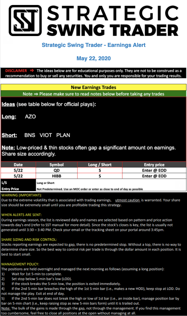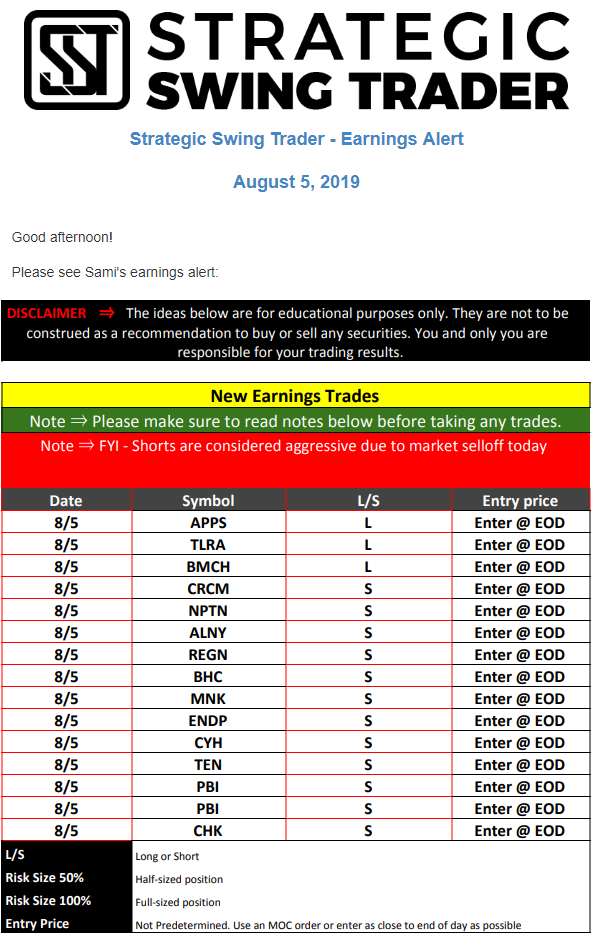 Earnings Alert Update