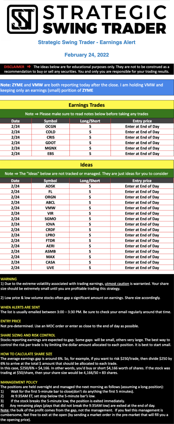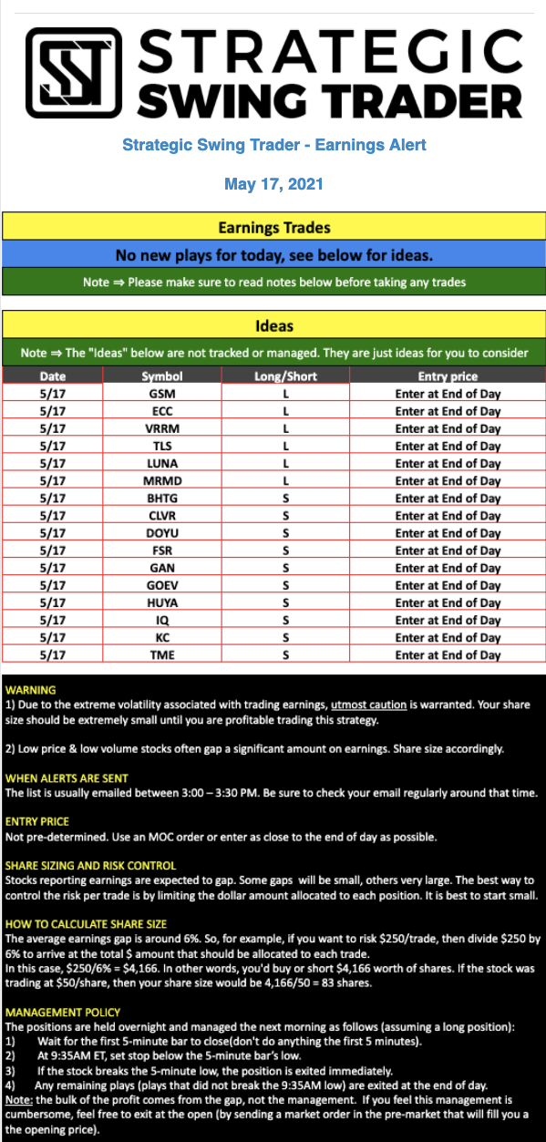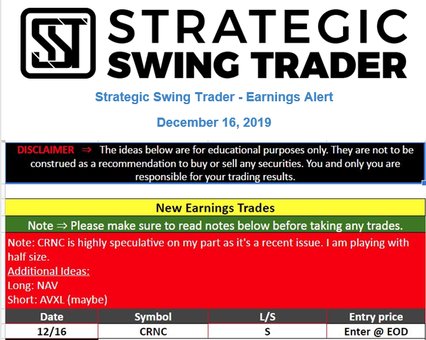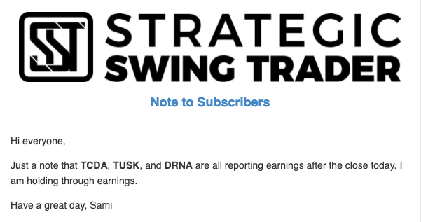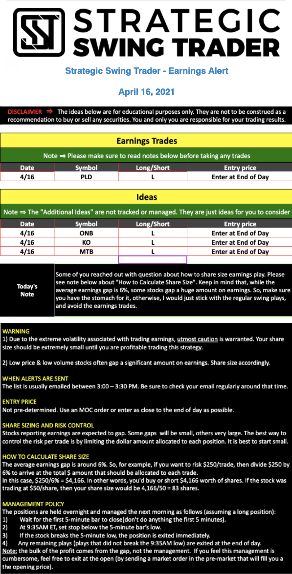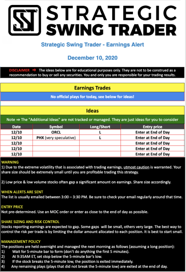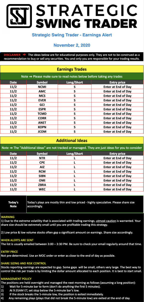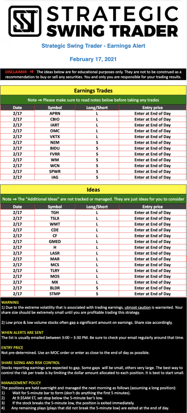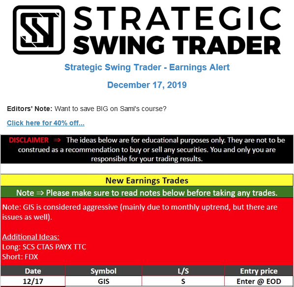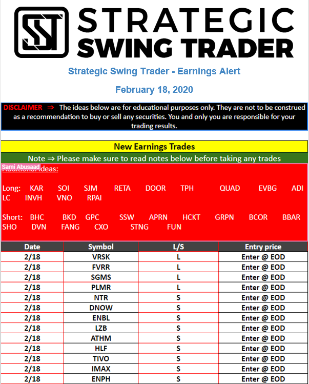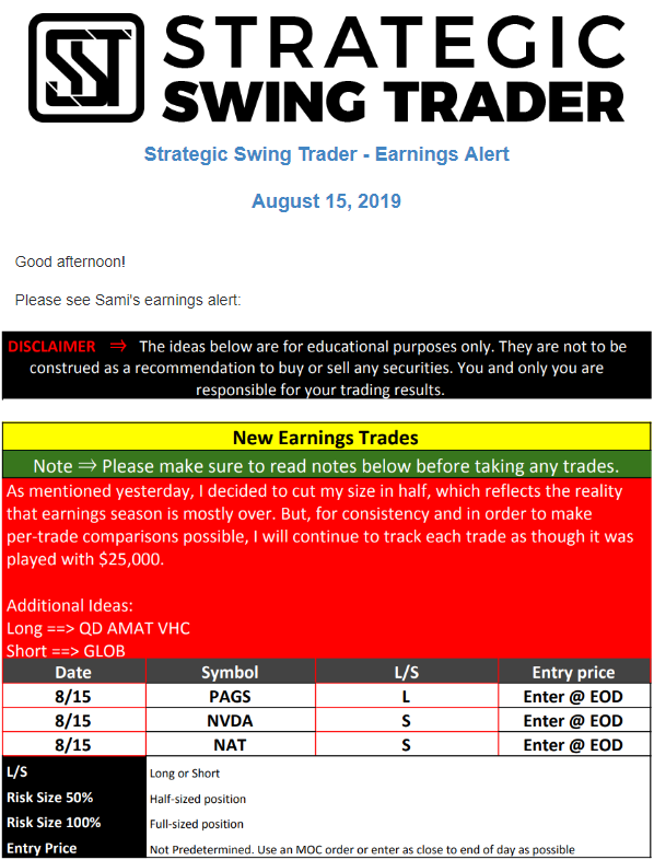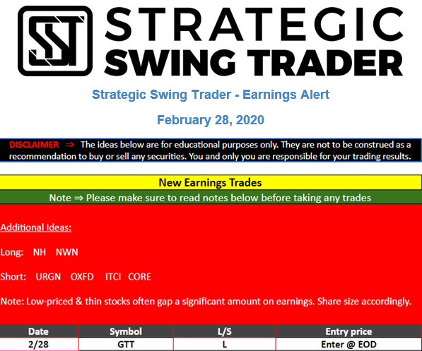 Earnings Alert Update
