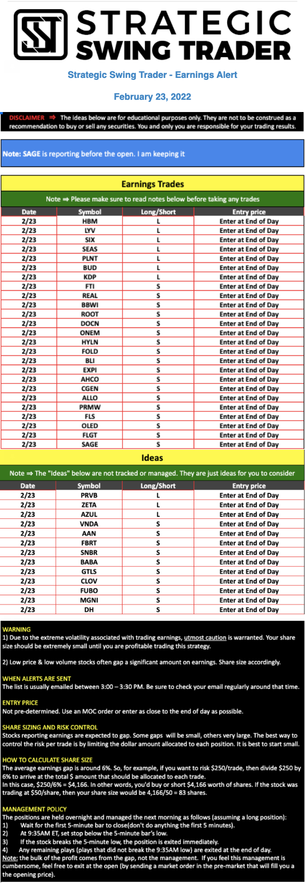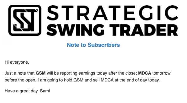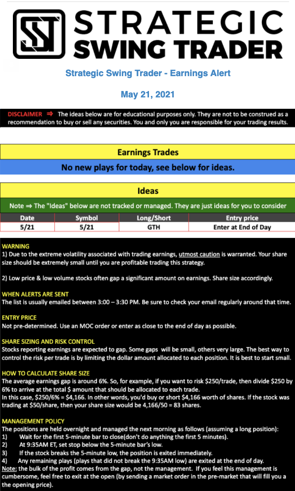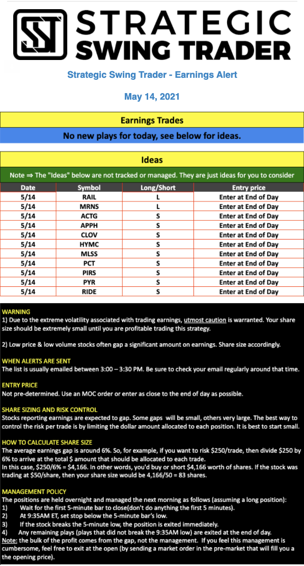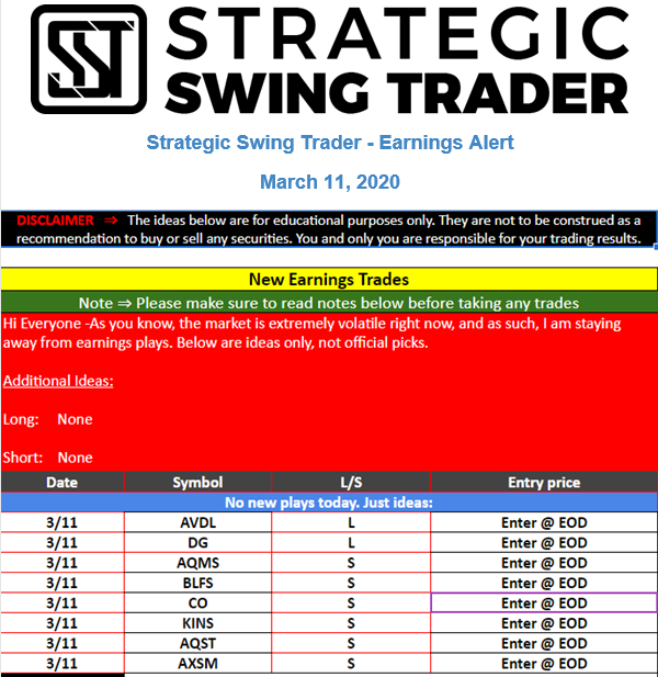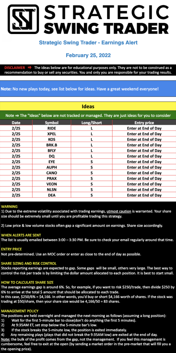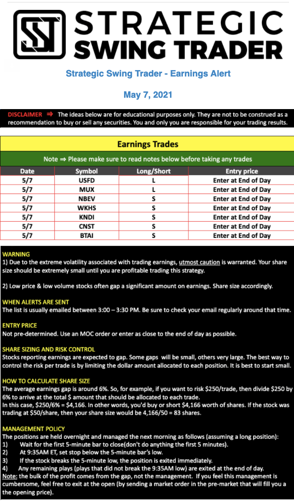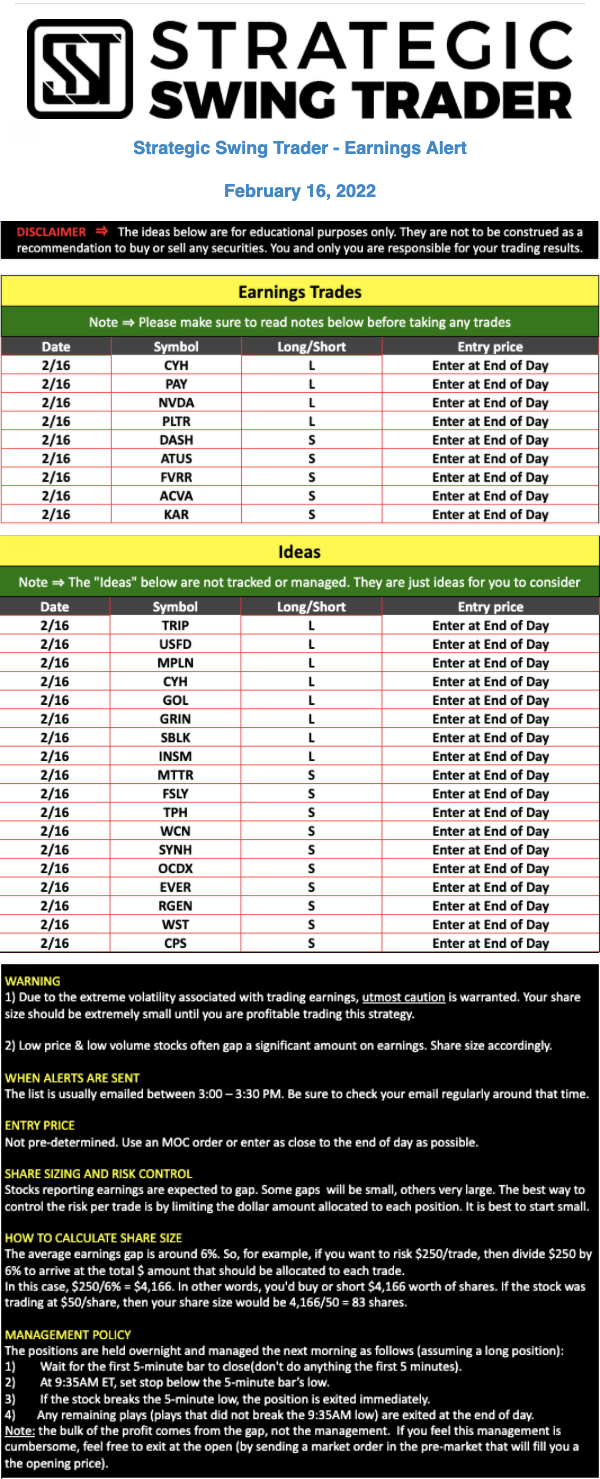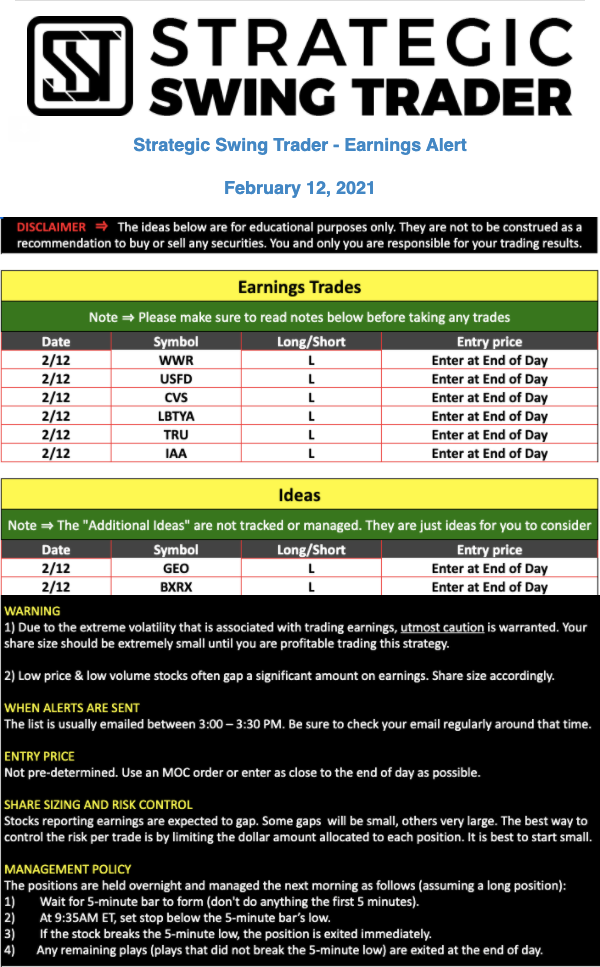 Earnings Alert Update