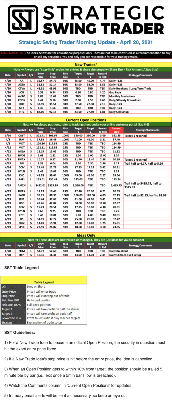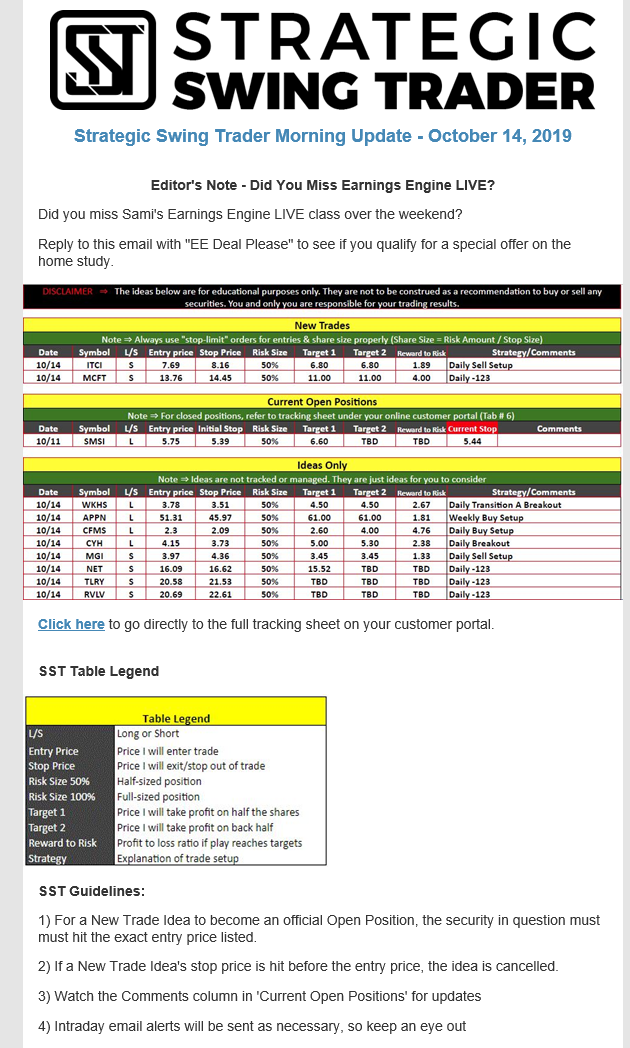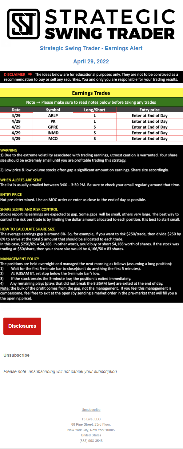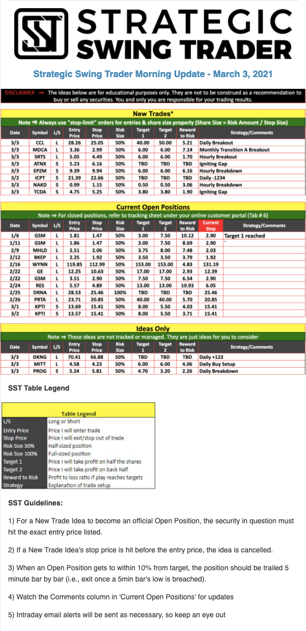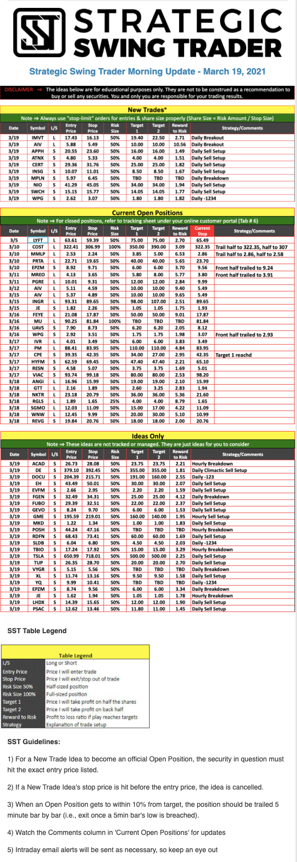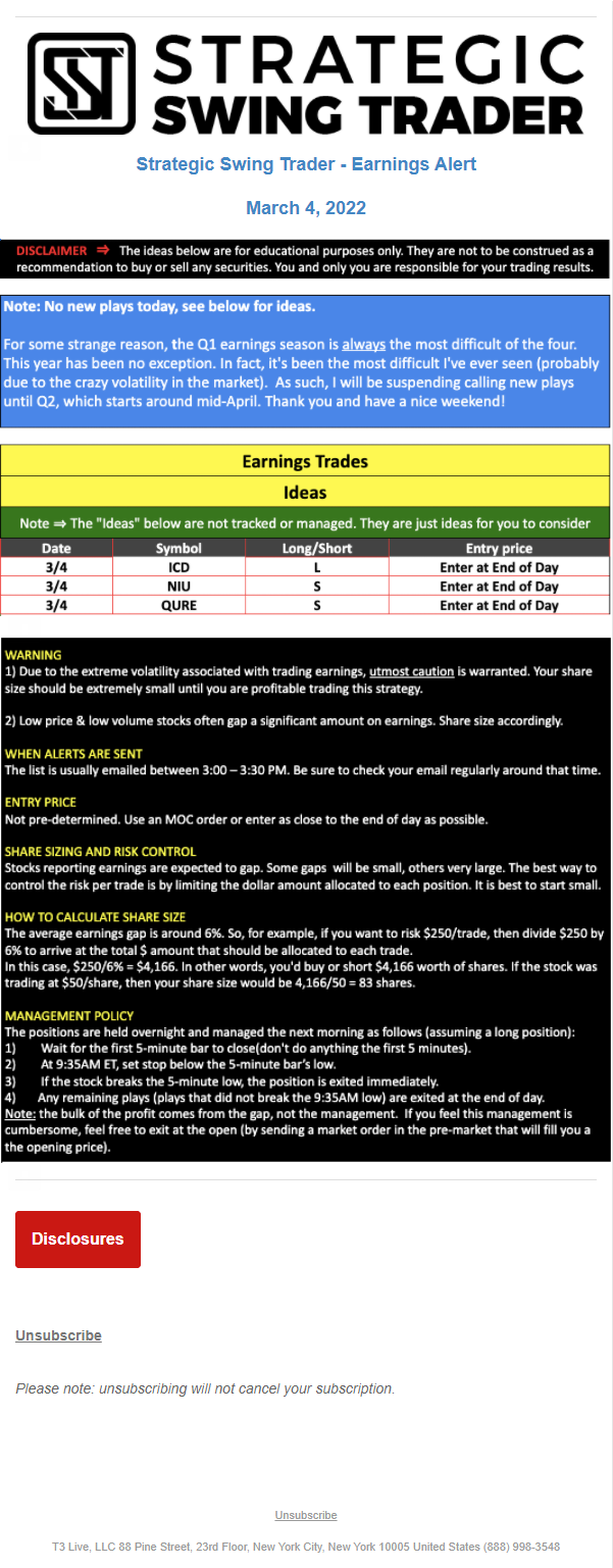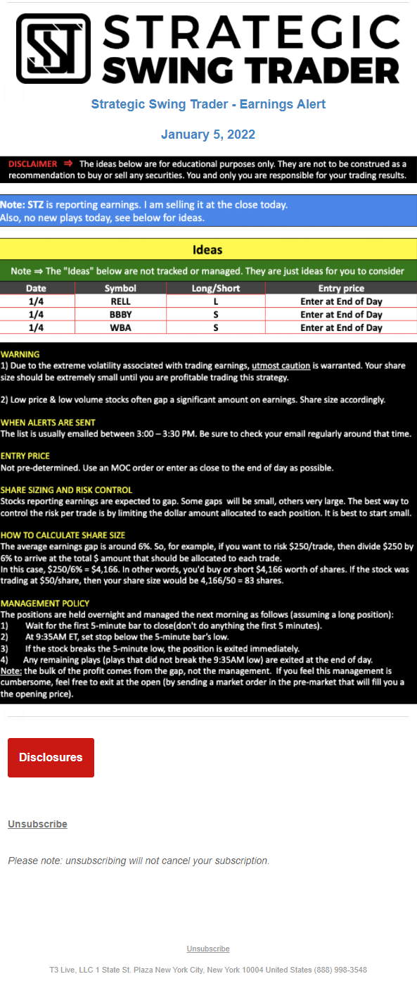 The programs that T3 Live distributes (including the “Virtual Trading Floor®,” articles, commentary, videos, blogs and social media postings) are for informational and educational purposes only. No one should consider the information disseminated by T3 Live to be personalized investment advice, a recommendation to buy, sell or hold any investment, an offer (or a solicitation of an offer) to buy or sell any investment, or the provision of any other kind of advice that would require T3 Live to register as a broker-dealer, investment adviser or similar entity. No one associated with T3 Live is authorized to make any representation to the contrary.