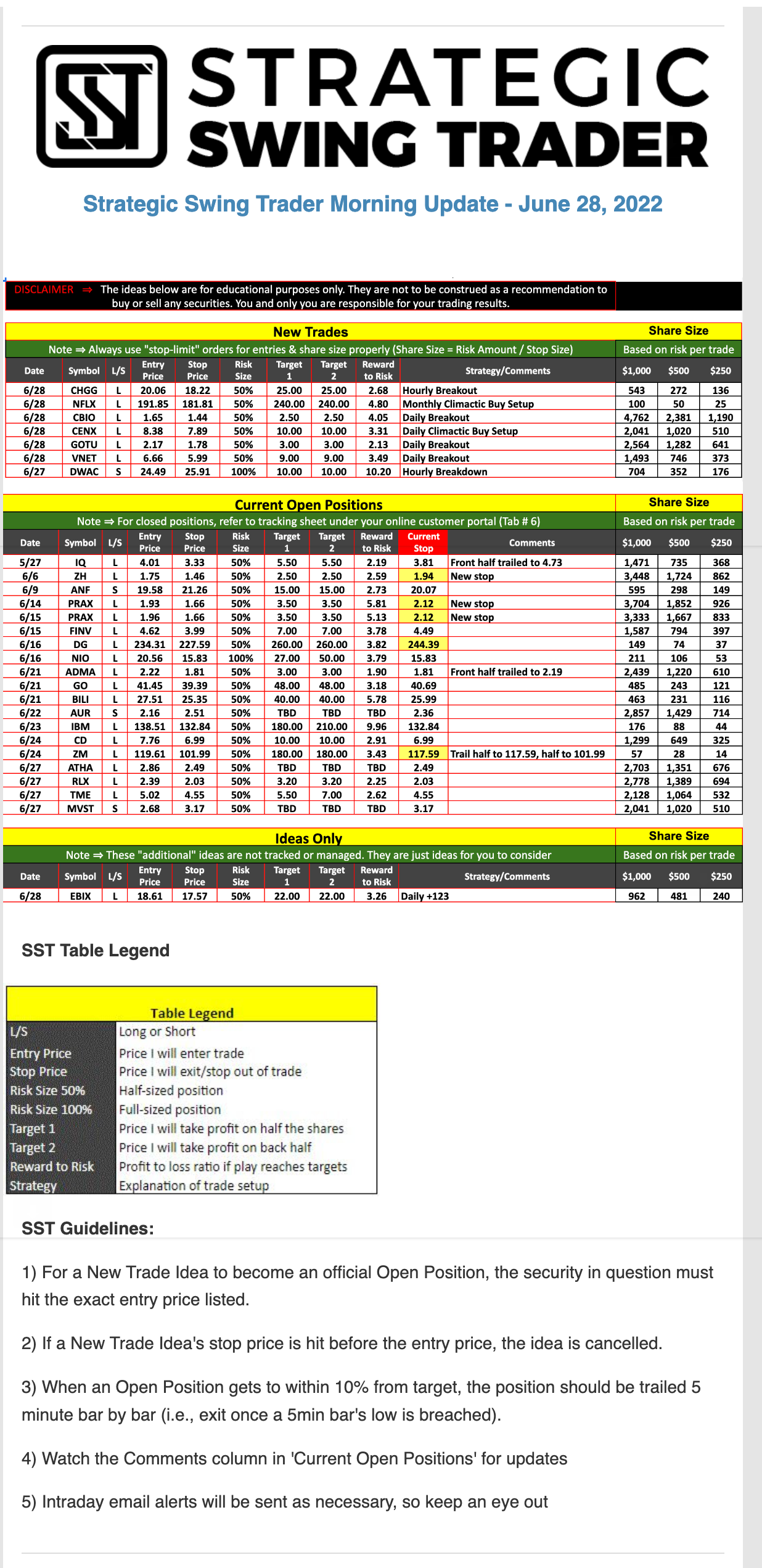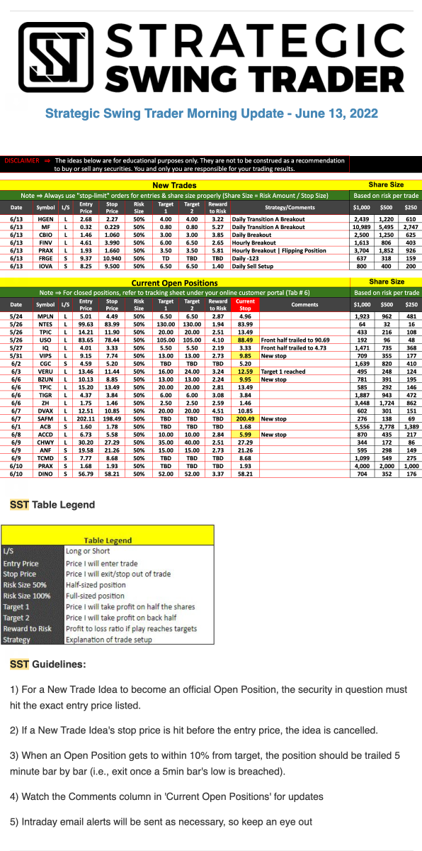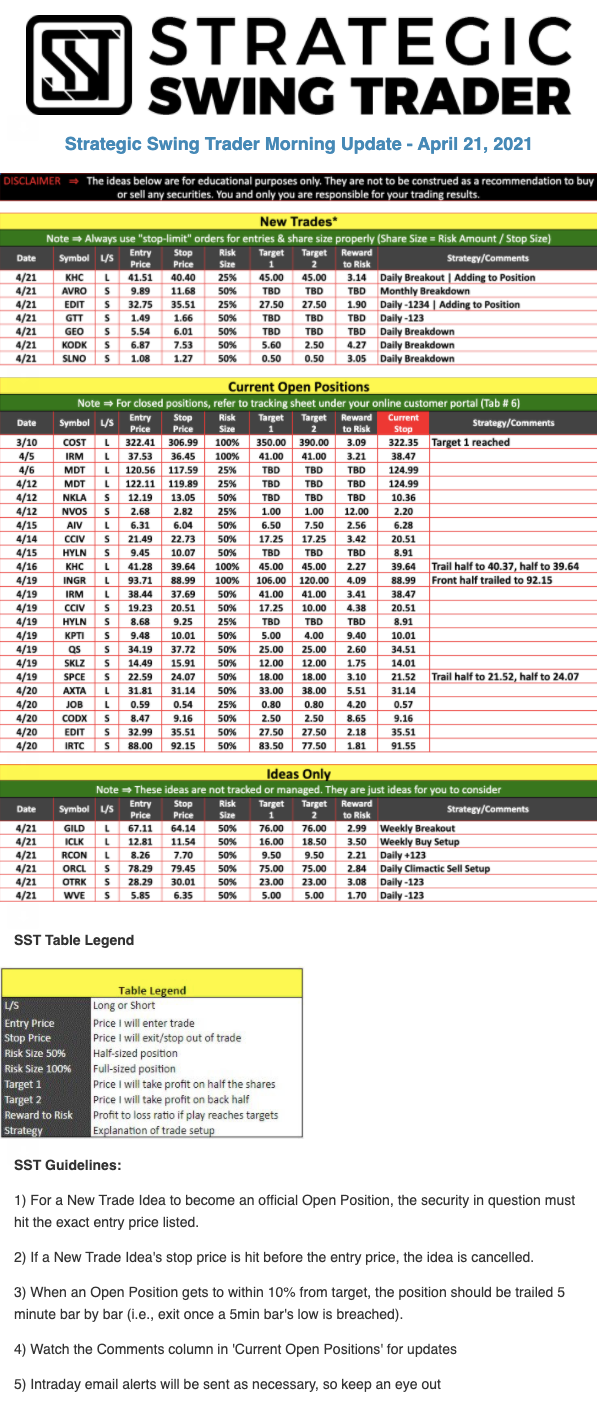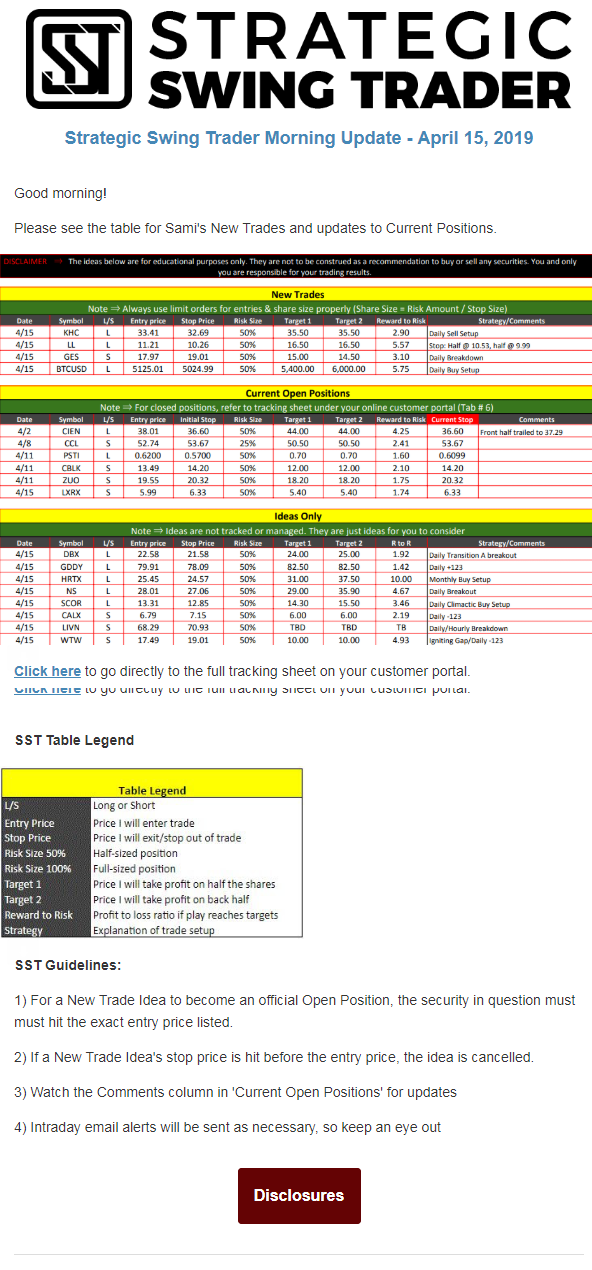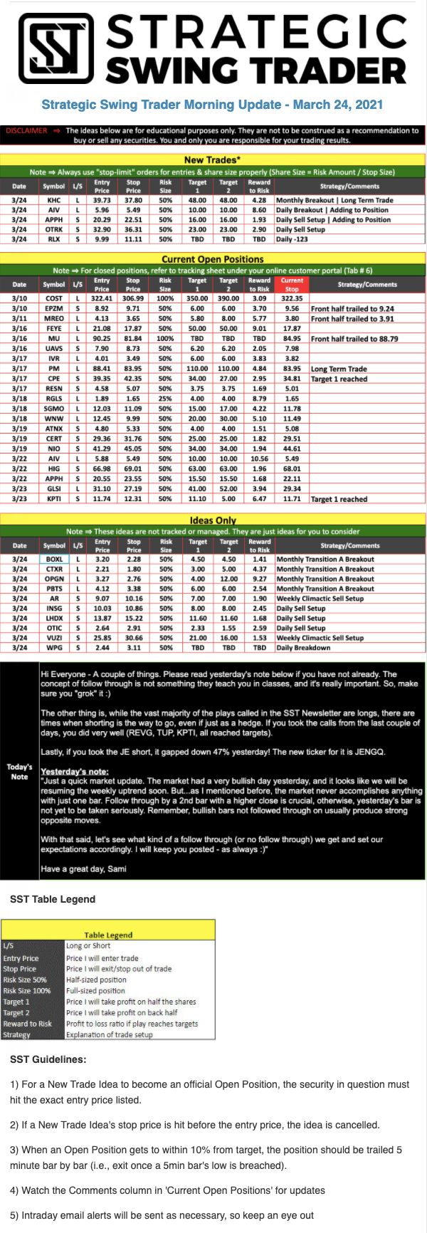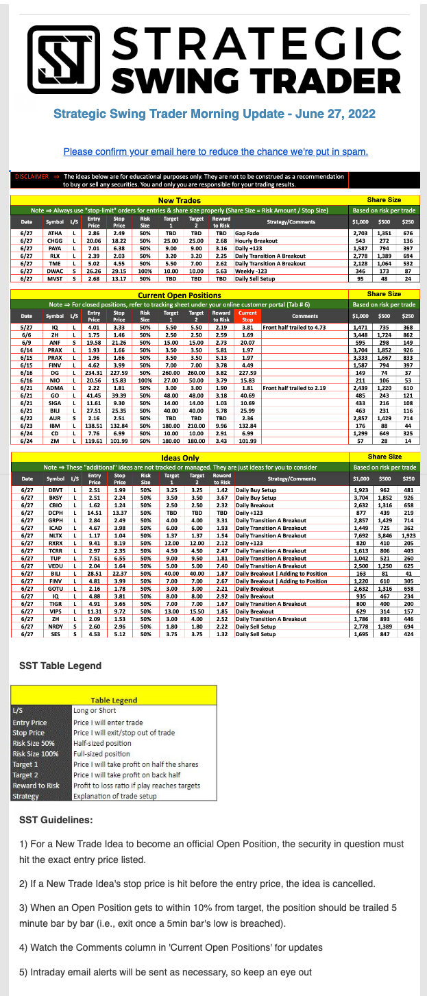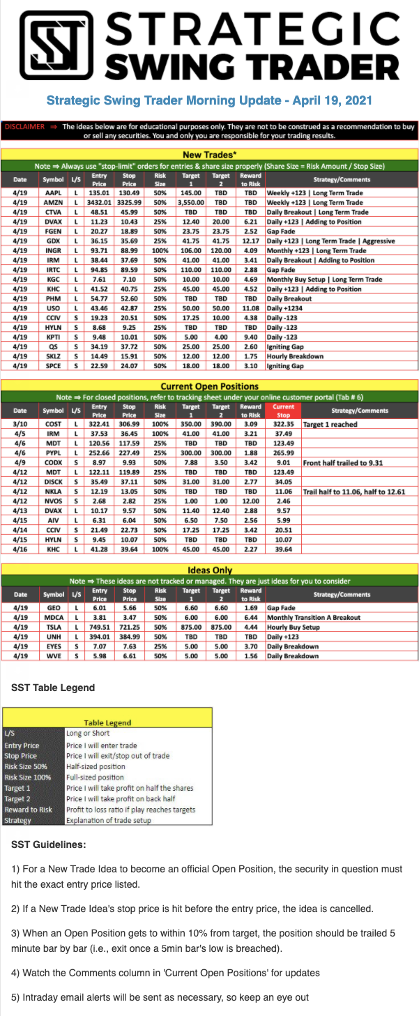 The programs that T3 Live distributes (including the “Virtual Trading Floor®,” articles, commentary, videos, blogs and social media postings) are for informational and educational purposes only. No one should consider the information disseminated by T3 Live to be personalized investment advice, a recommendation to buy, sell or hold any investment, an offer (or a solicitation of an offer) to buy or sell any investment, or the provision of any other kind of advice that would require T3 Live to register as a broker-dealer, investment adviser or similar entity. No one associated with T3 Live is authorized to make any representation to the contrary.