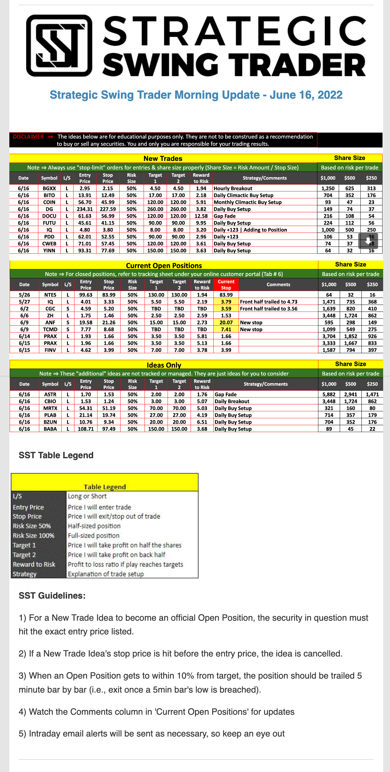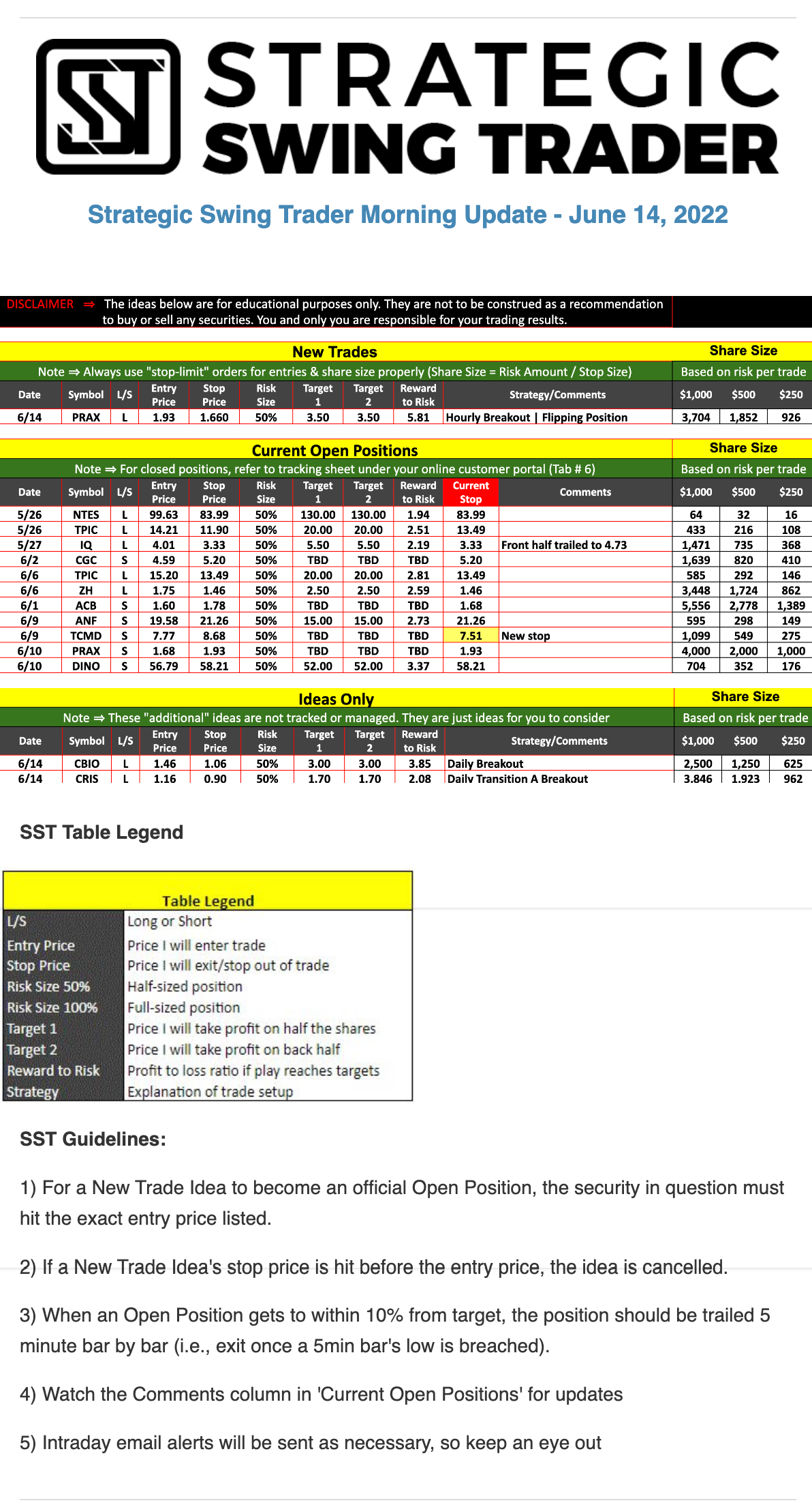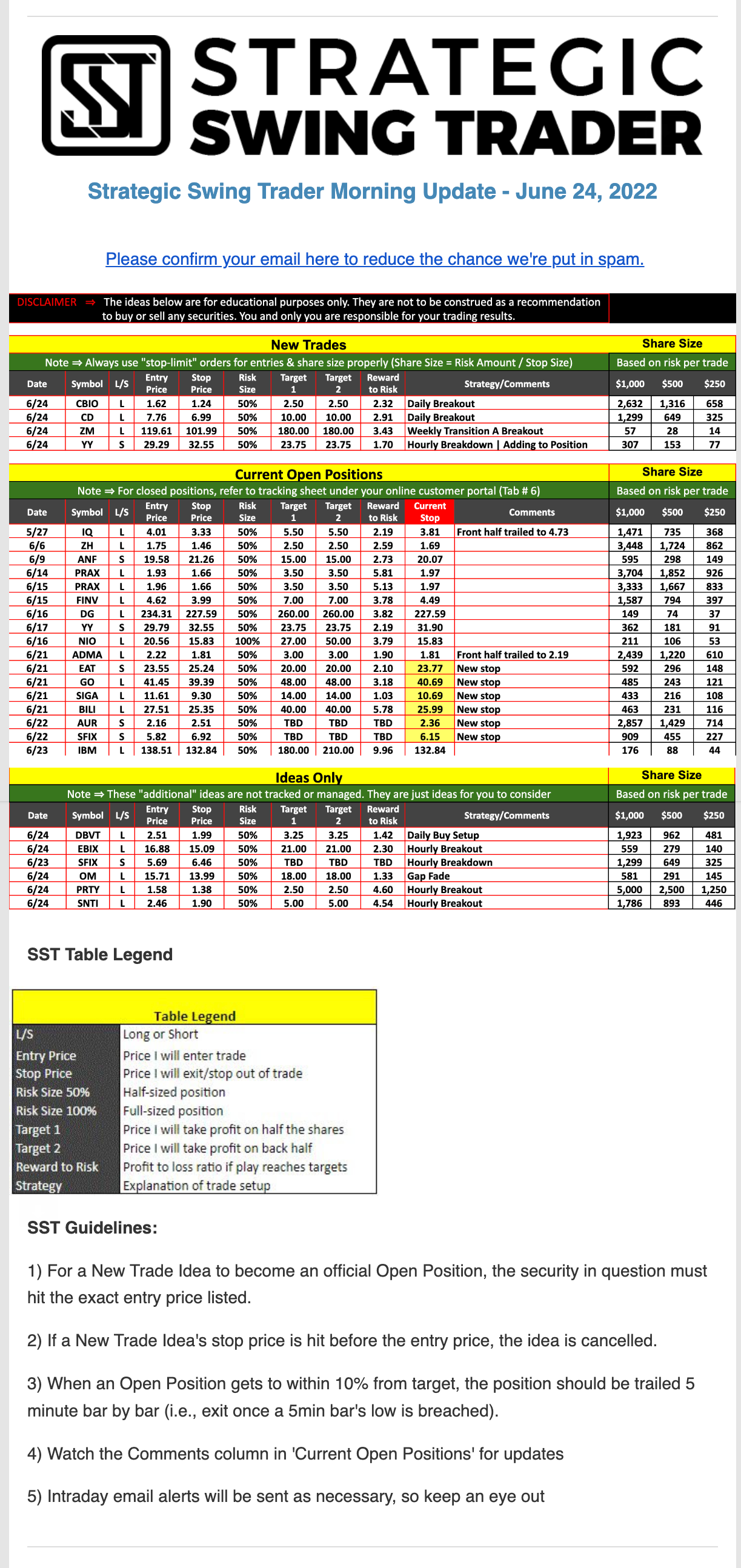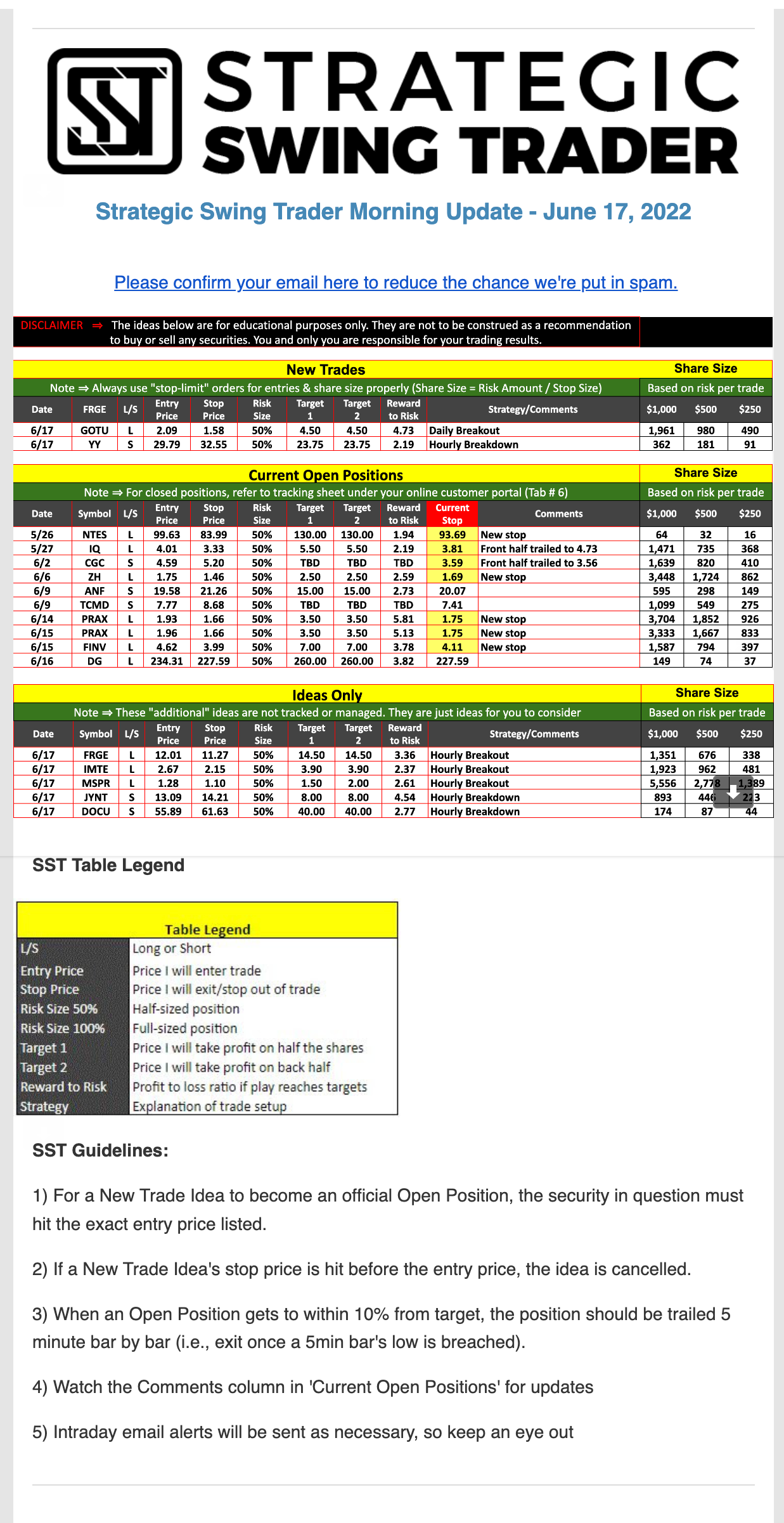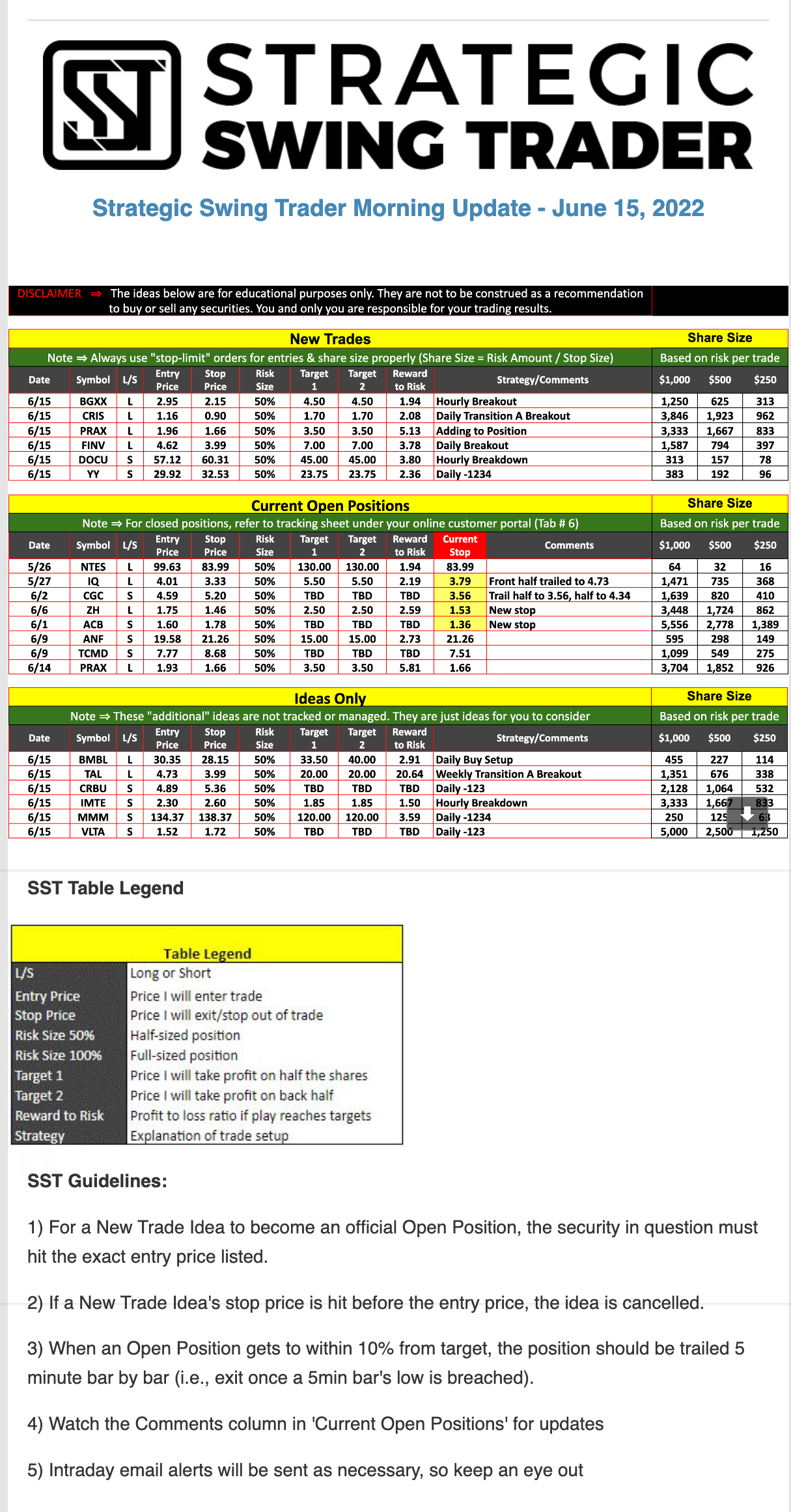 The programs that T3 Live distributes (including the “Virtual Trading Floor®,” articles, commentary, videos, blogs and social media postings) are for informational and educational purposes only. No one should consider the information disseminated by T3 Live to be personalized investment advice, a recommendation to buy, sell or hold any investment, an offer (or a solicitation of an offer) to buy or sell any investment, or the provision of any other kind of advice that would require T3 Live to register as a broker-dealer, investment adviser or similar entity. No one associated with T3 Live is authorized to make any representation to the contrary.