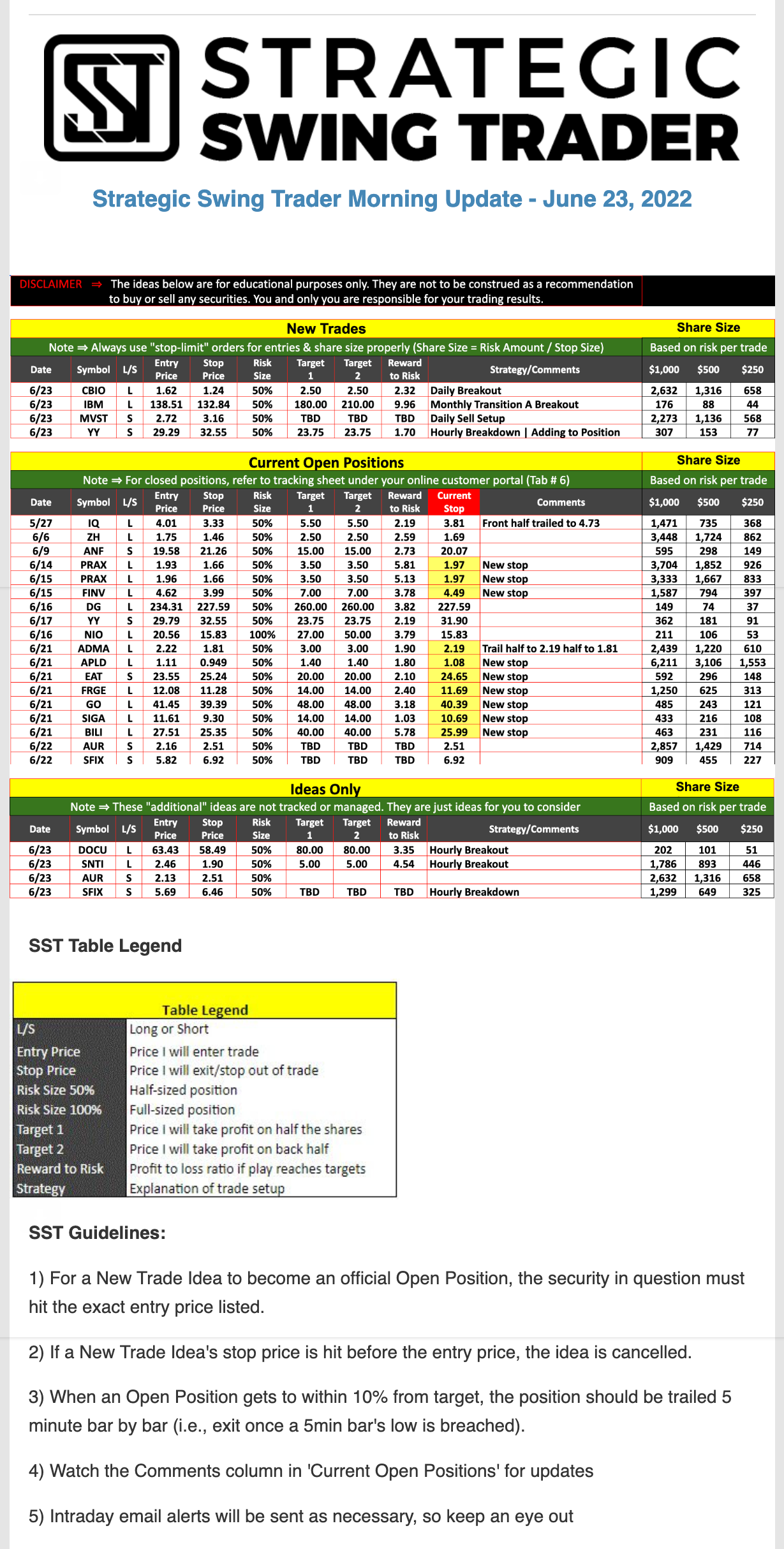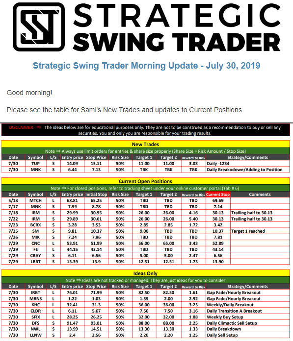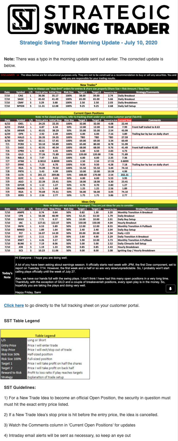 Morning Update – CORRECTION
