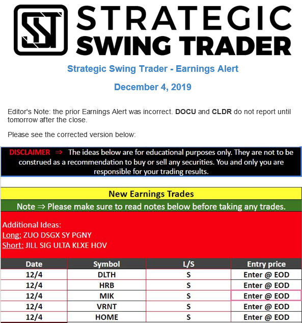 Earnings Alert (Correction)