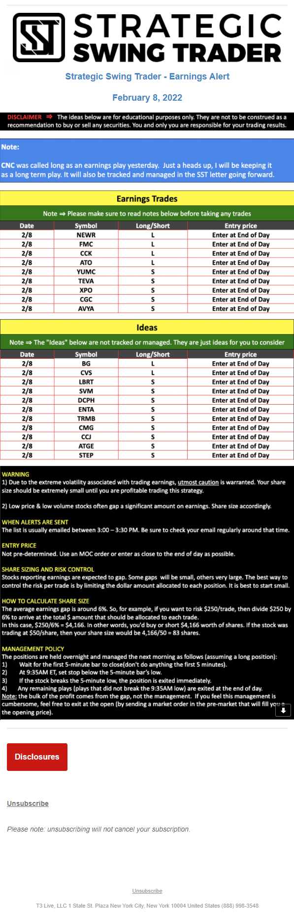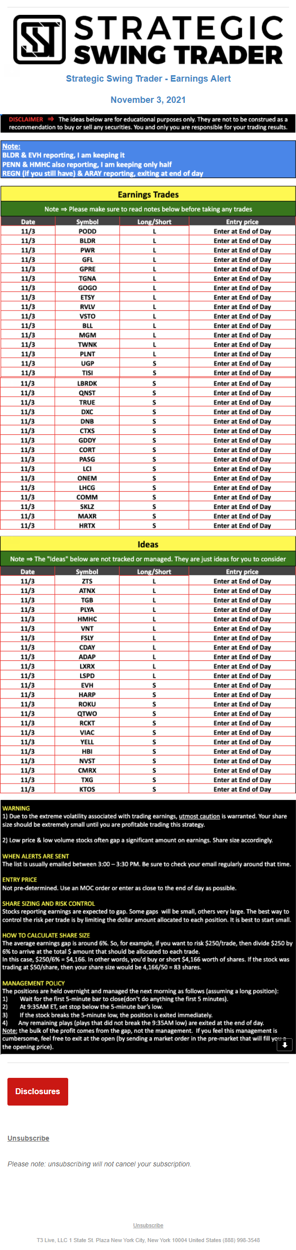 Statements by any person (whether identified as associated with T3 Live, T3 Trading Group, or any other entity) represent the opinions of that person only and do not necessarily reflect the opinions of T3 Live or any other person associated with T3 Live.
